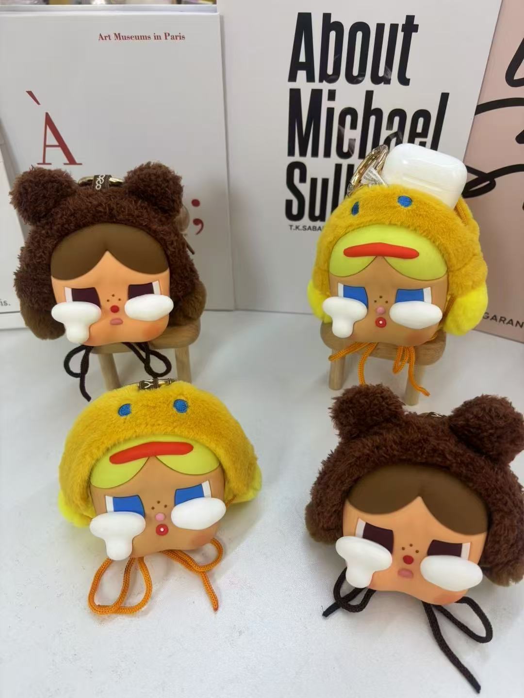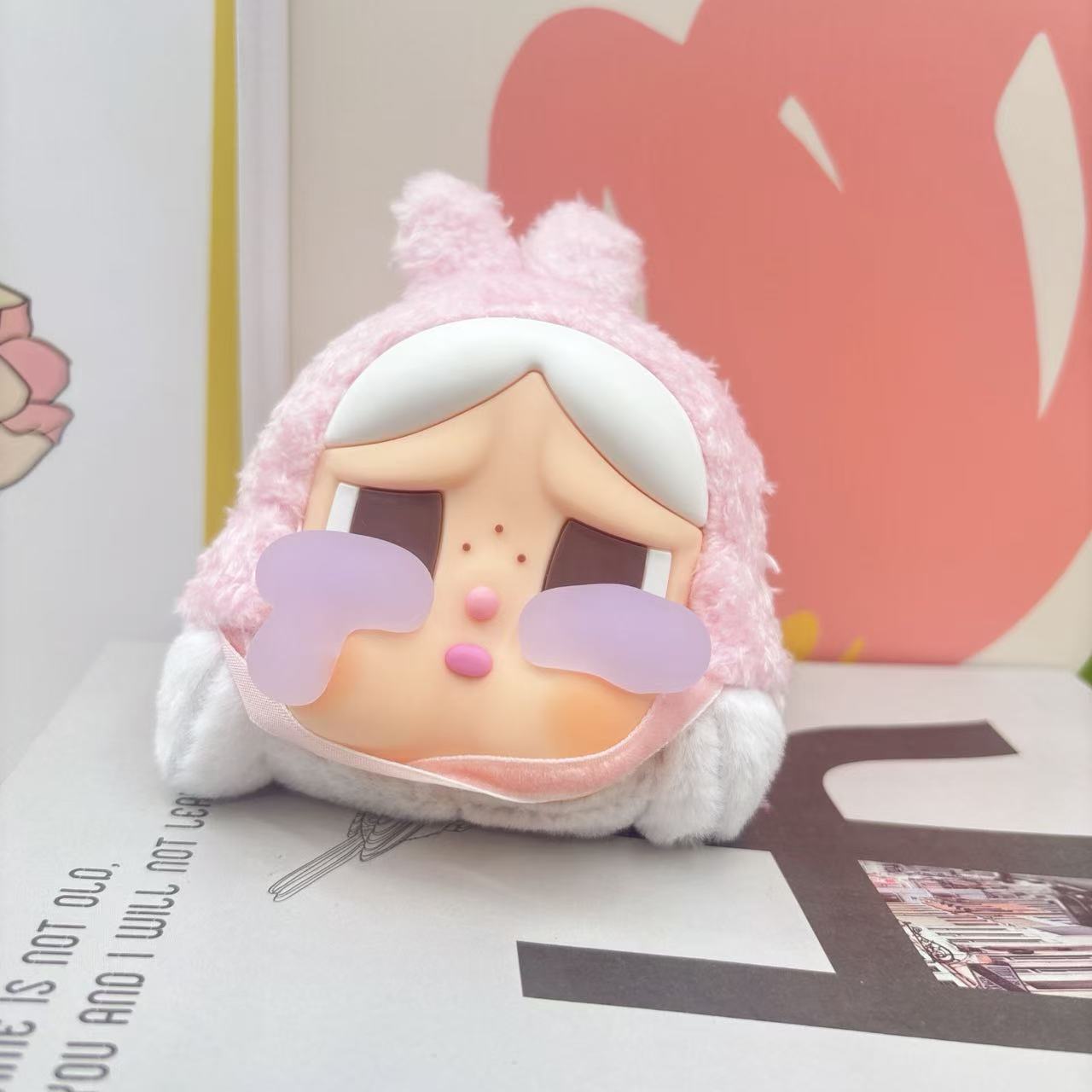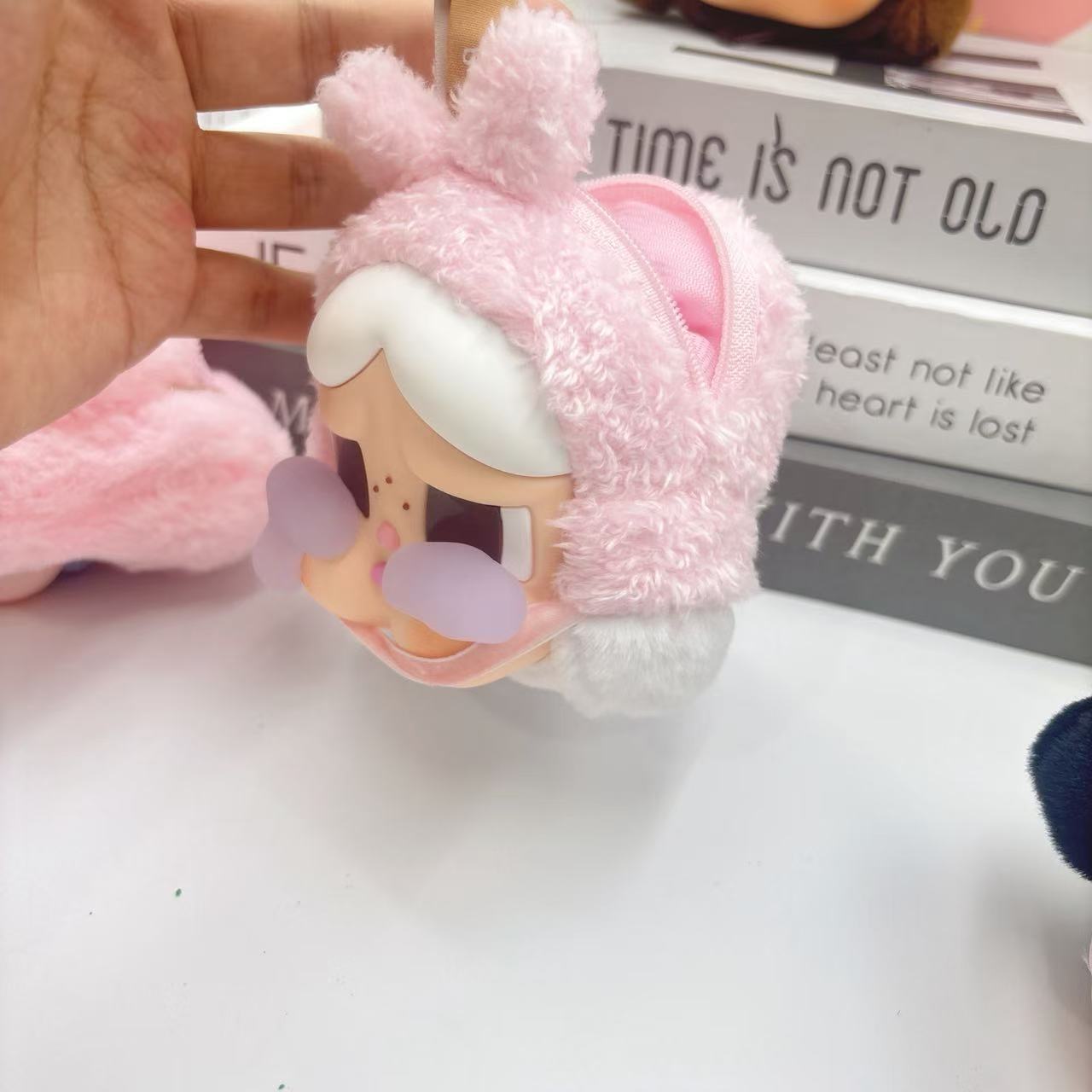 울고 있는 아기 인형 이어폰 가방, 비닐 얼굴 플러시 키체인, 인형 장식품, 차키 보관, 스트레스 해소, 귀여운스토어 가기