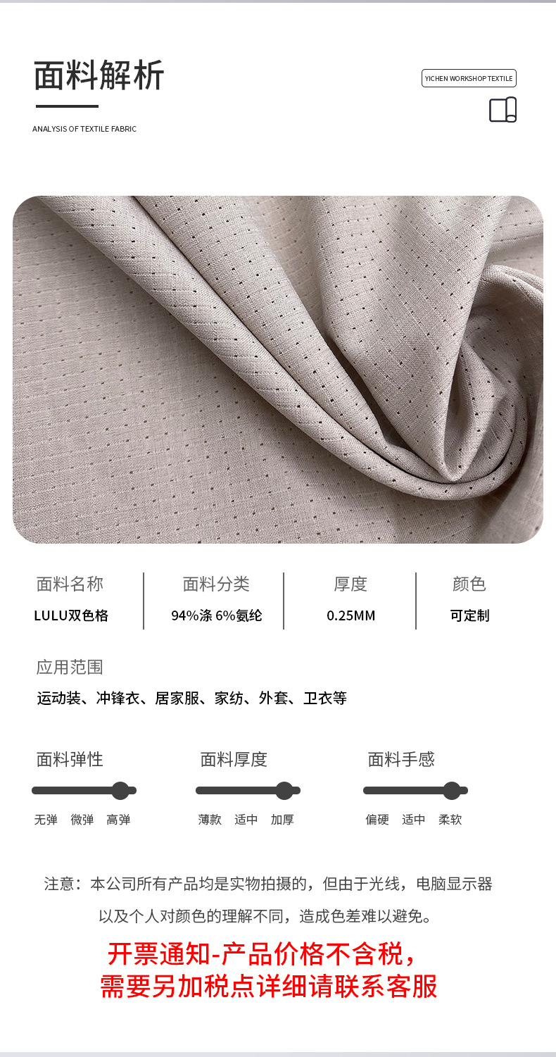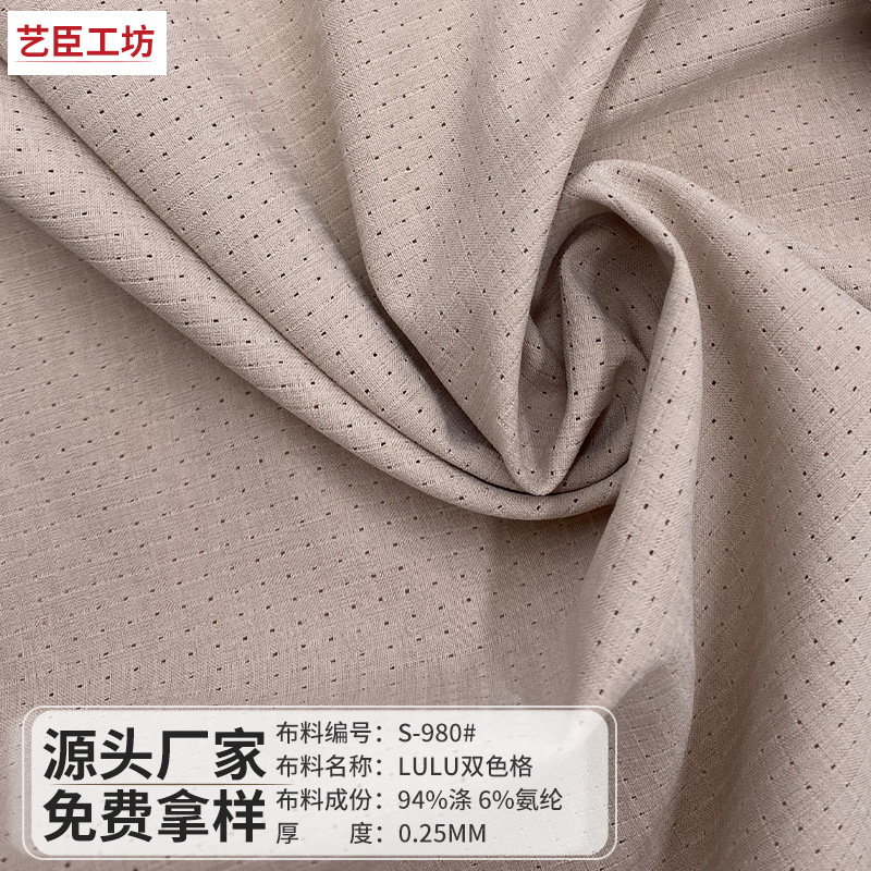 120gLULU 더블 컬러 유료 94% 폴리 에스터 6% 스판덱스 패브릭 셔츠 짧은 소매 구멍 패브릭 원피스 바지 라이닝