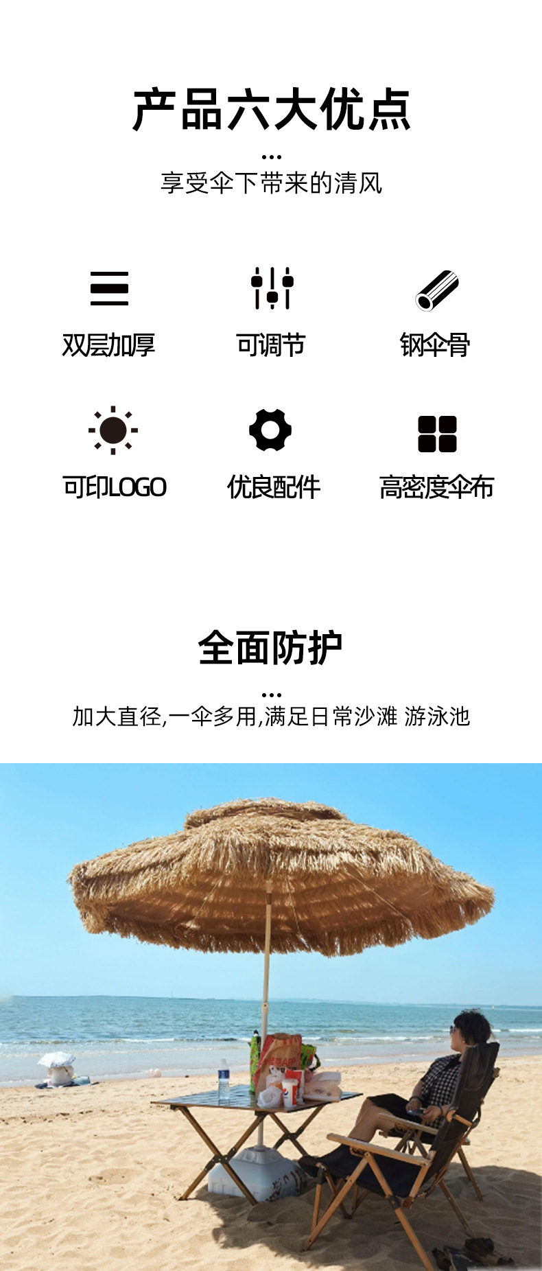 야외 모조 해변 밀짚 우산, 경관 정원 야외 차양 밀짚 우산, 농가 초가지붕 모조 밀짚 우산스토어 가기