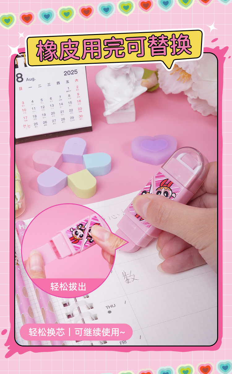 Maihe 문구 진짜 비행 작은 여경 시리즈 회전 사랑 롤러 지우개 학생 창조적 인 연필 지우개
