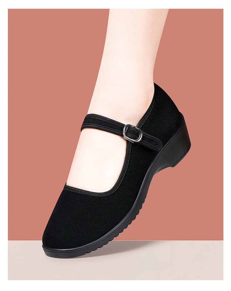 웨지 천 신발 여성 싱글 신발 봄 호텔 블랙 워크 슈즈 여성 댄스 슈즈 비 슬립 플랫 슈즈 소프트 단독 마더 슈즈스토어 가기