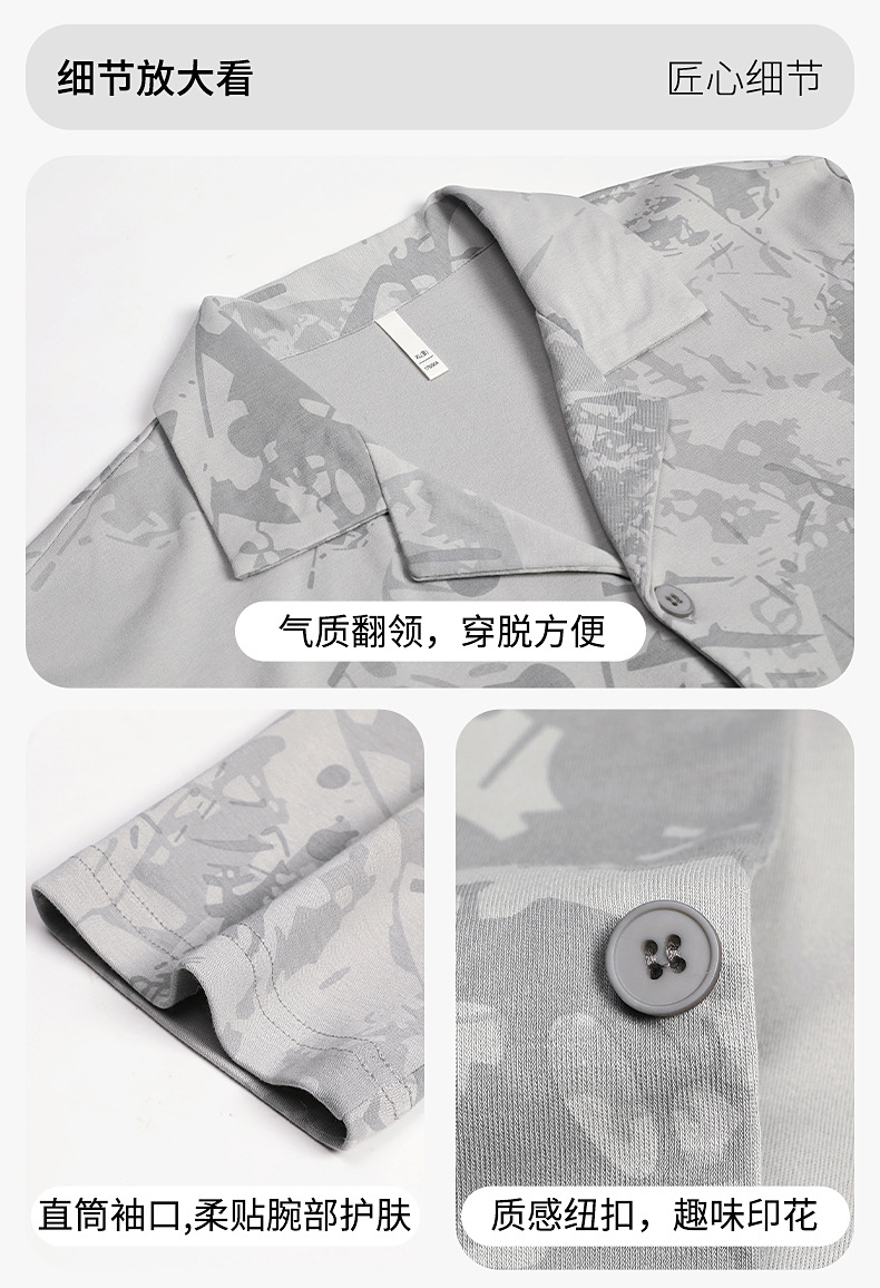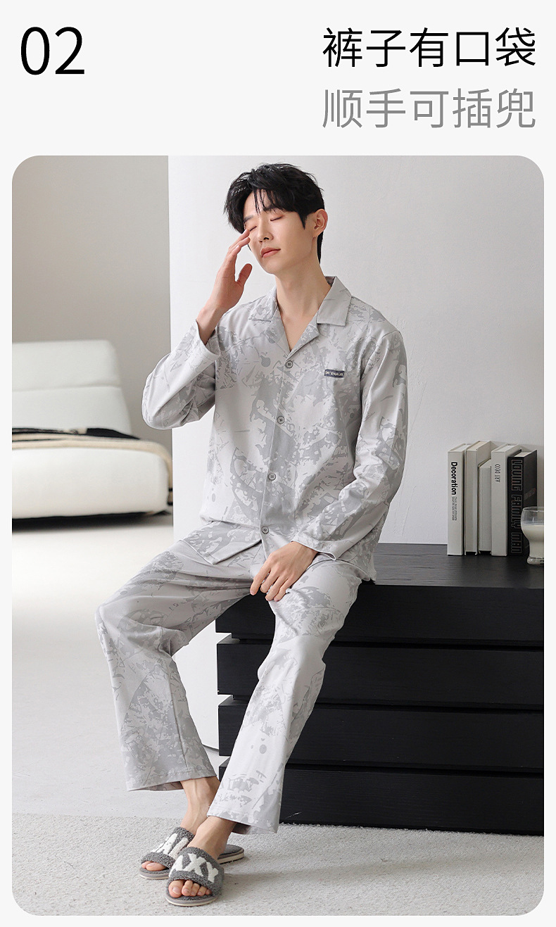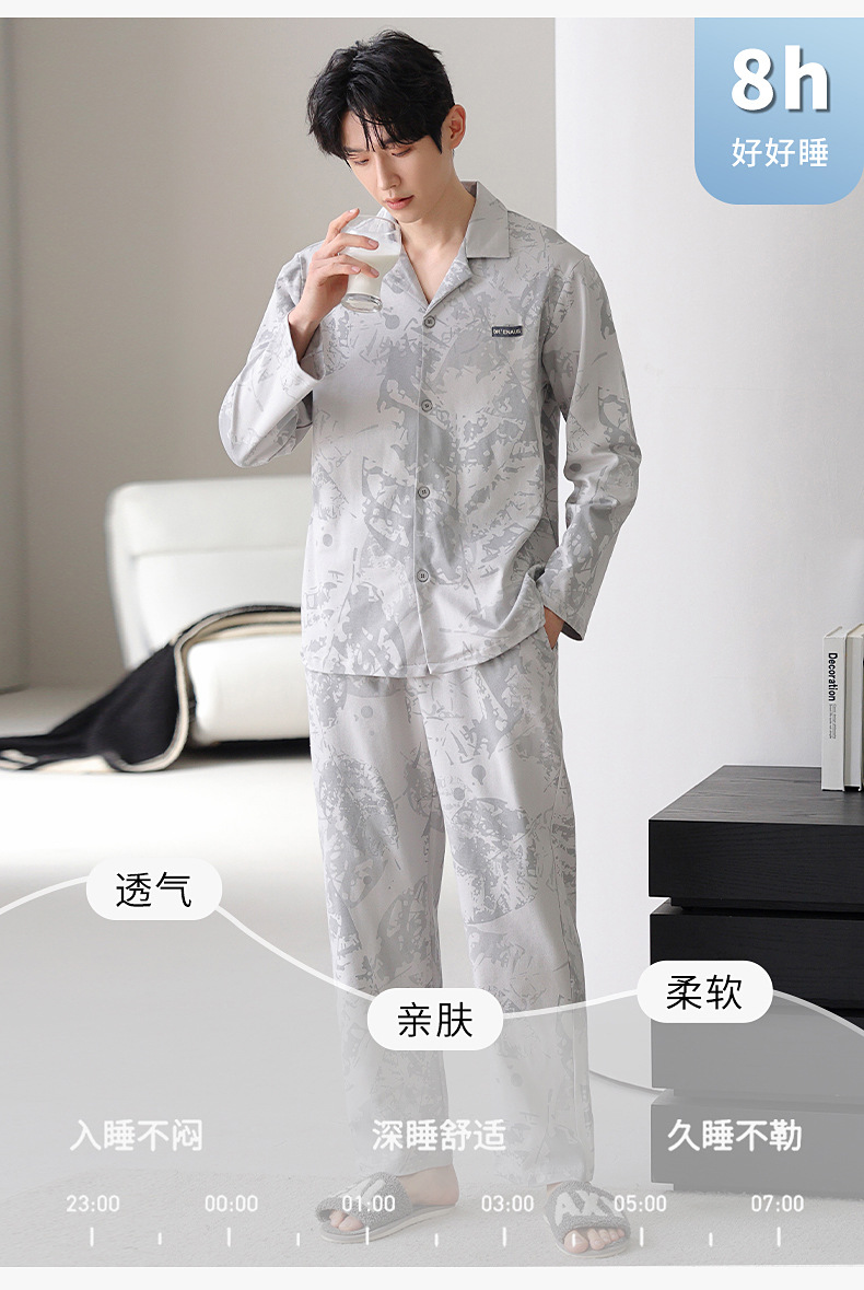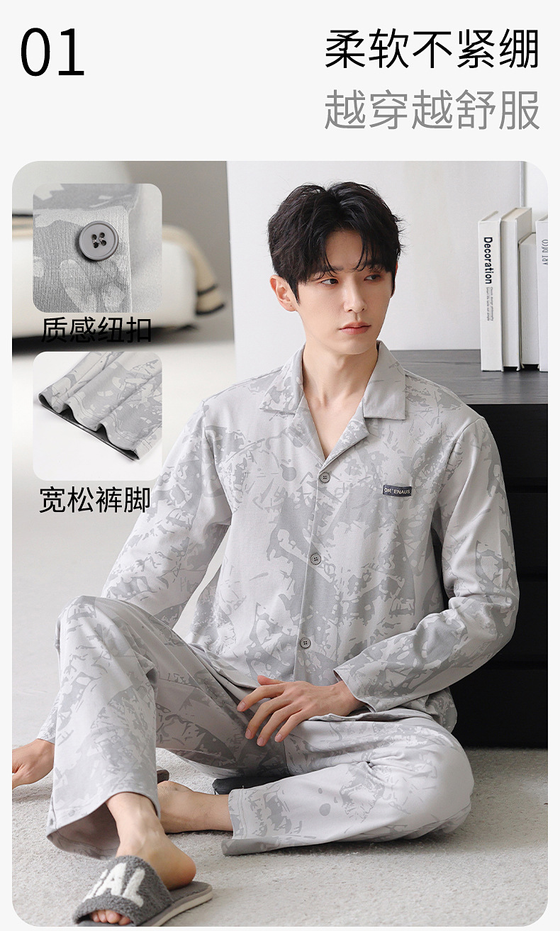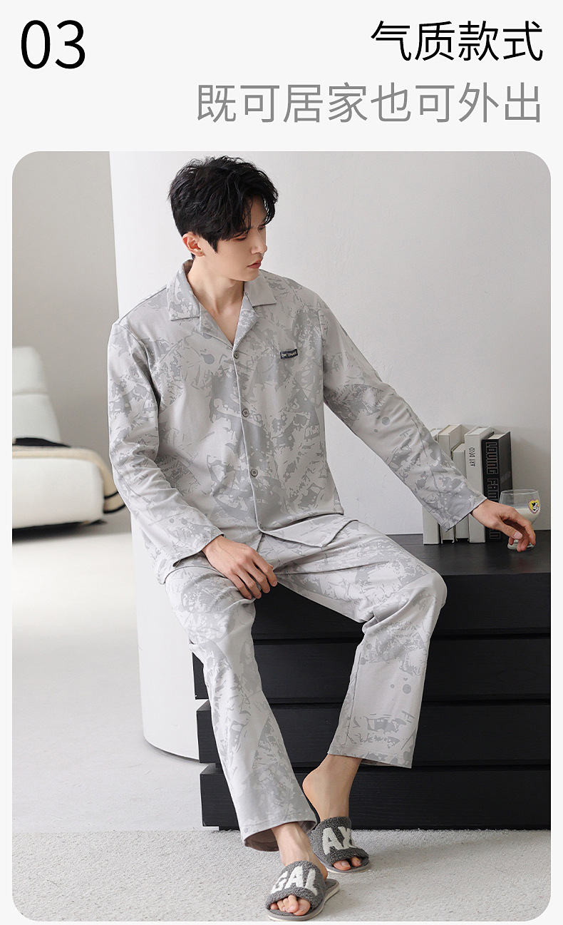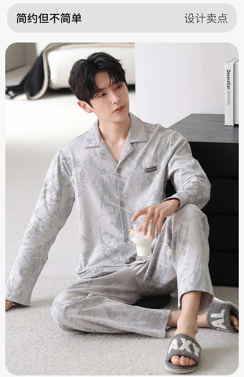 [순면] 남자 잠옷 봄, 가을, 겨울 긴 소매 청소년 카디건 캐주얼 홈 의류 투피스 세트 단순