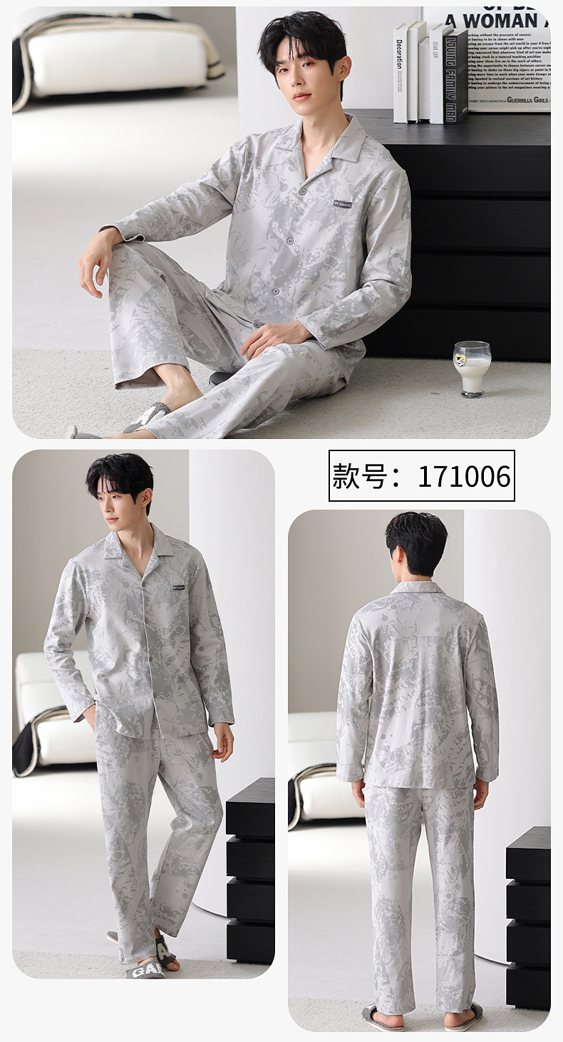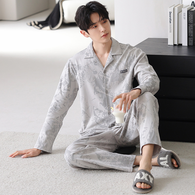 [순면] 남자 잠옷 봄, 가을, 겨울 긴 소매 청소년 카디건 캐주얼 홈 의류 투피스 세트 단순스토어 가기