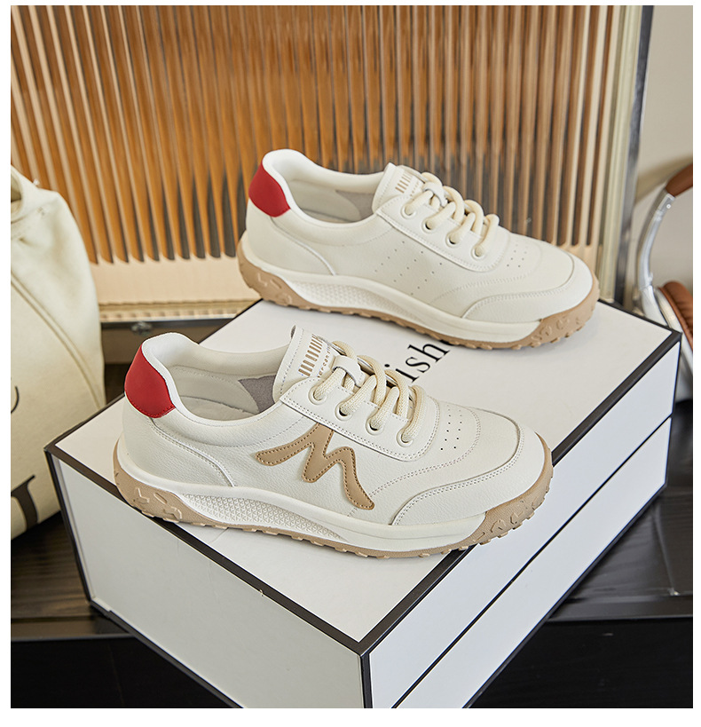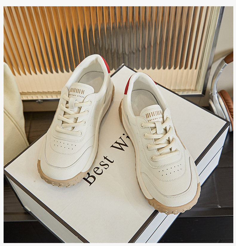정품 가죽 토르 신발 여성의 2025 봄 새로운 두꺼운 밑창 높은 높이 신발 캐주얼 올 매치 화이트 신발 스포츠 포레스트 검프 신발스토어 가기
