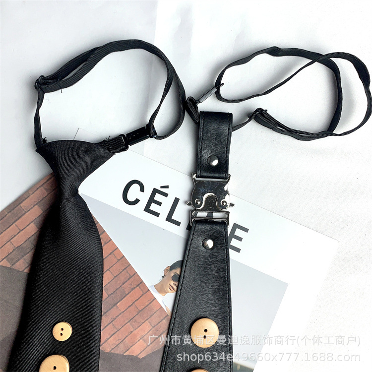블랙 빈티지 트위스트 버클 가죽 게으른 넥타이 일본 하이 엔드 타이 여성 활 넥타이 아카데믹 스타일 남성 패션