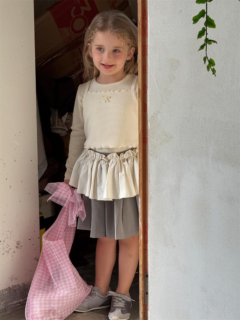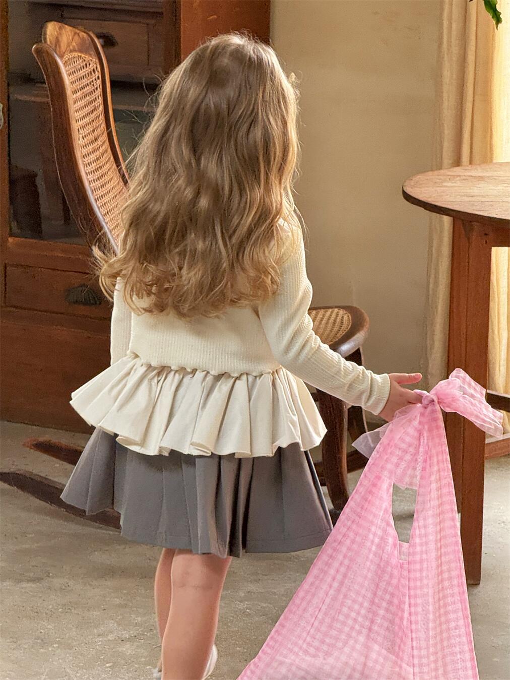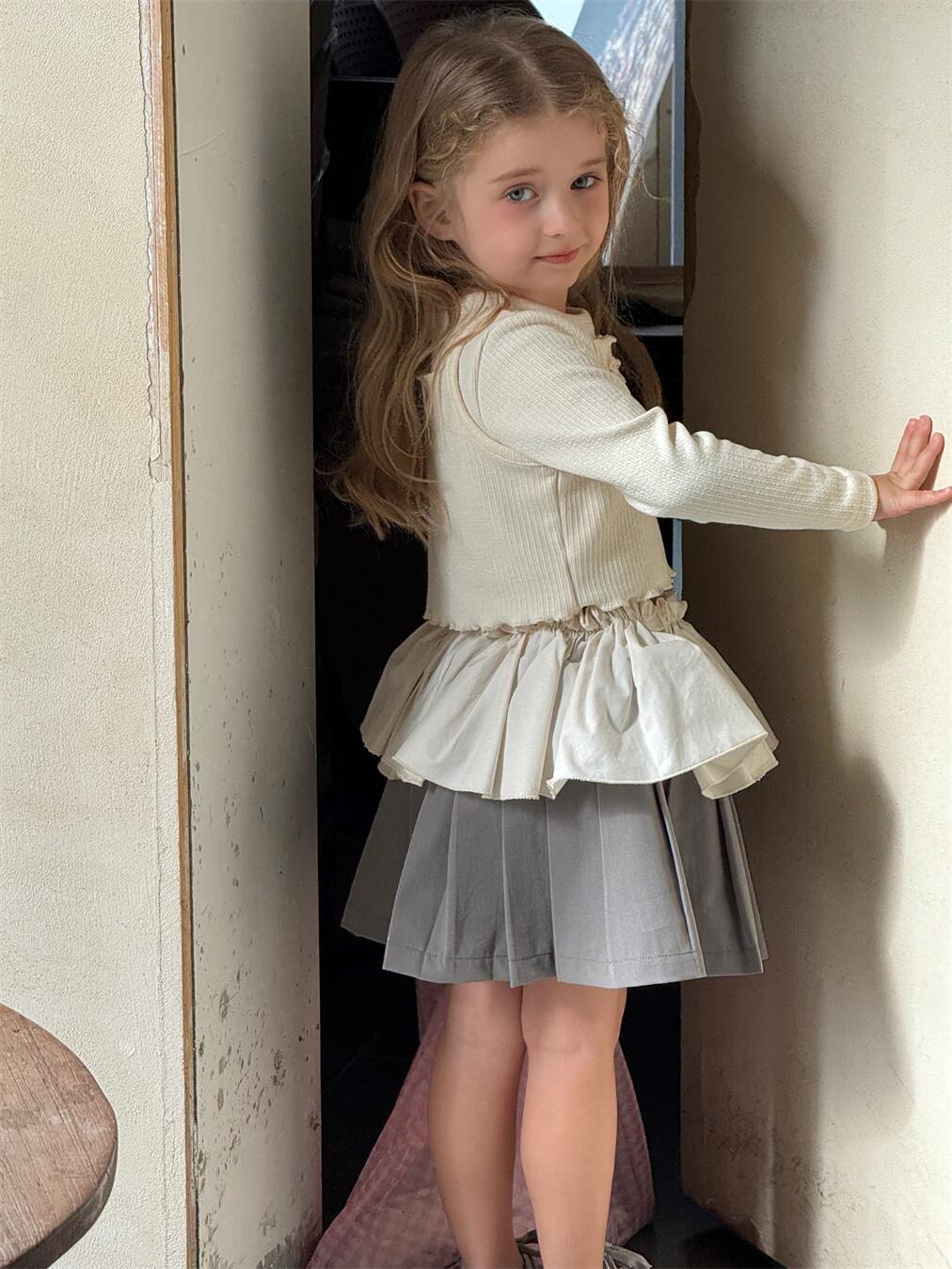 뾰족한 계란 한국 아동복 2025 봄 · 여름 새 여아 스커트 그레이 귀여운 주름 치마 올매치 스커트스토어 가기