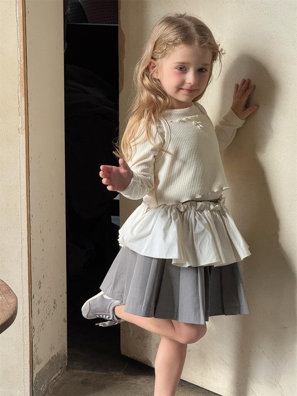 뾰족한 계란 한국 아동복 2025 봄 · 여름 새 여아 스커트 그레이 귀여운 주름 치마 올매치 스커트