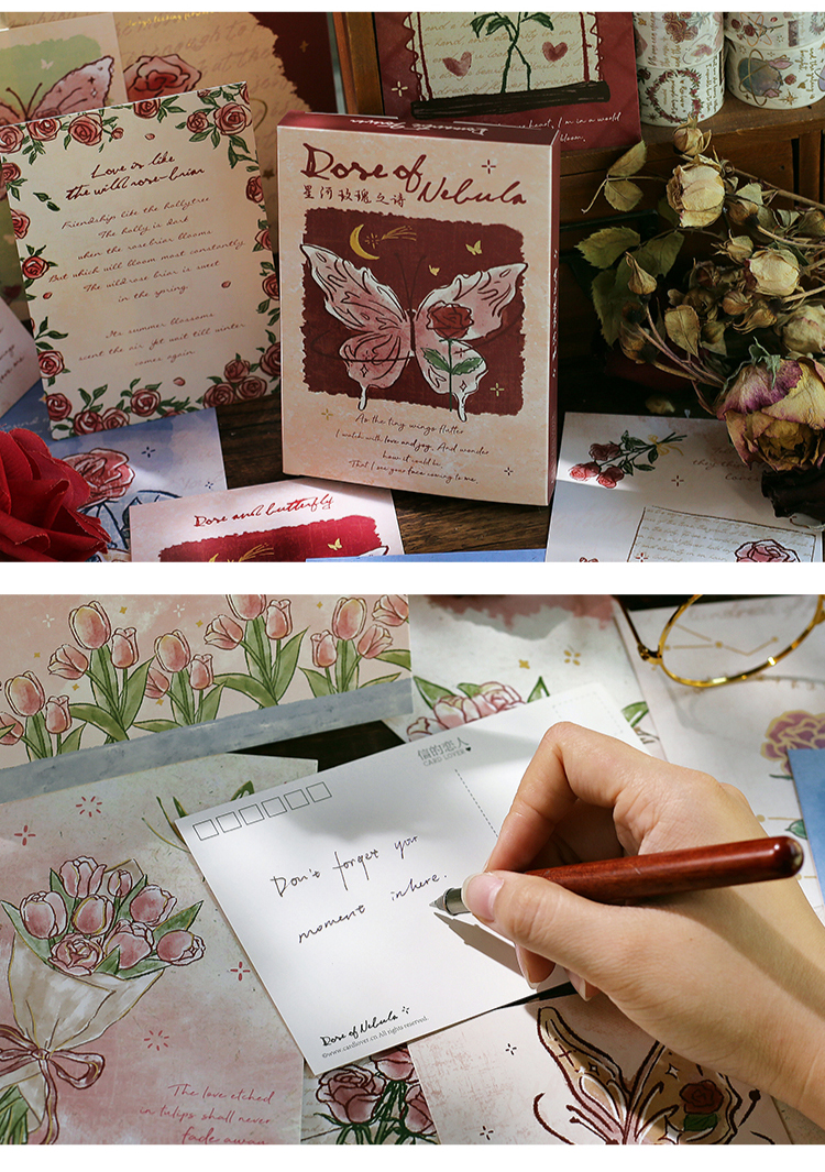 레트로 스타일 손으로 그린 그림 치유 박스 엽서 스텔라 밝은 모든 창조적 인 간단한 문학 스타일