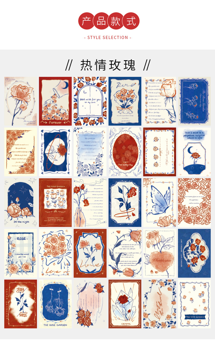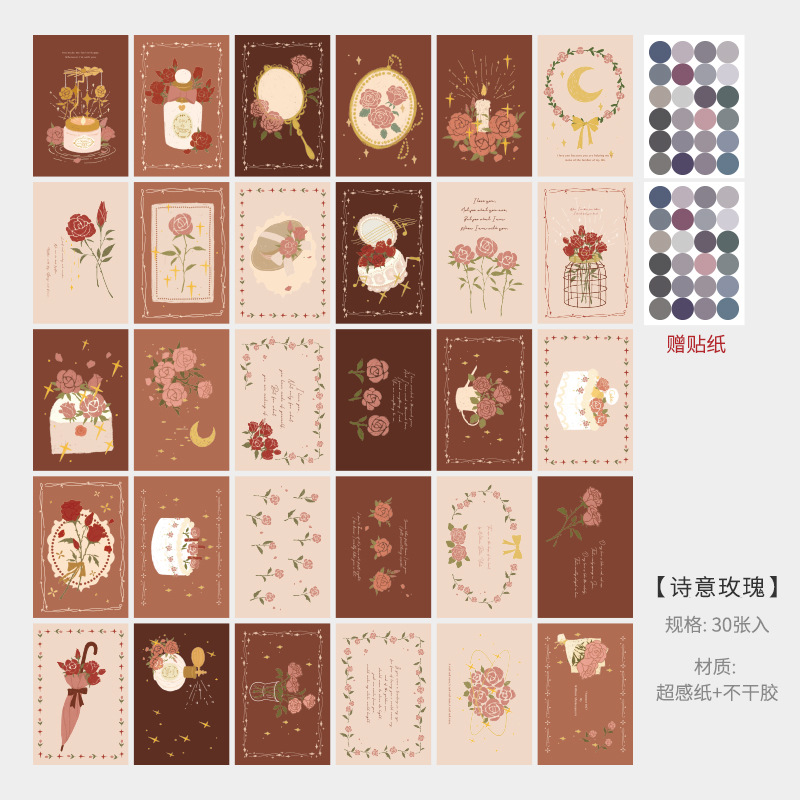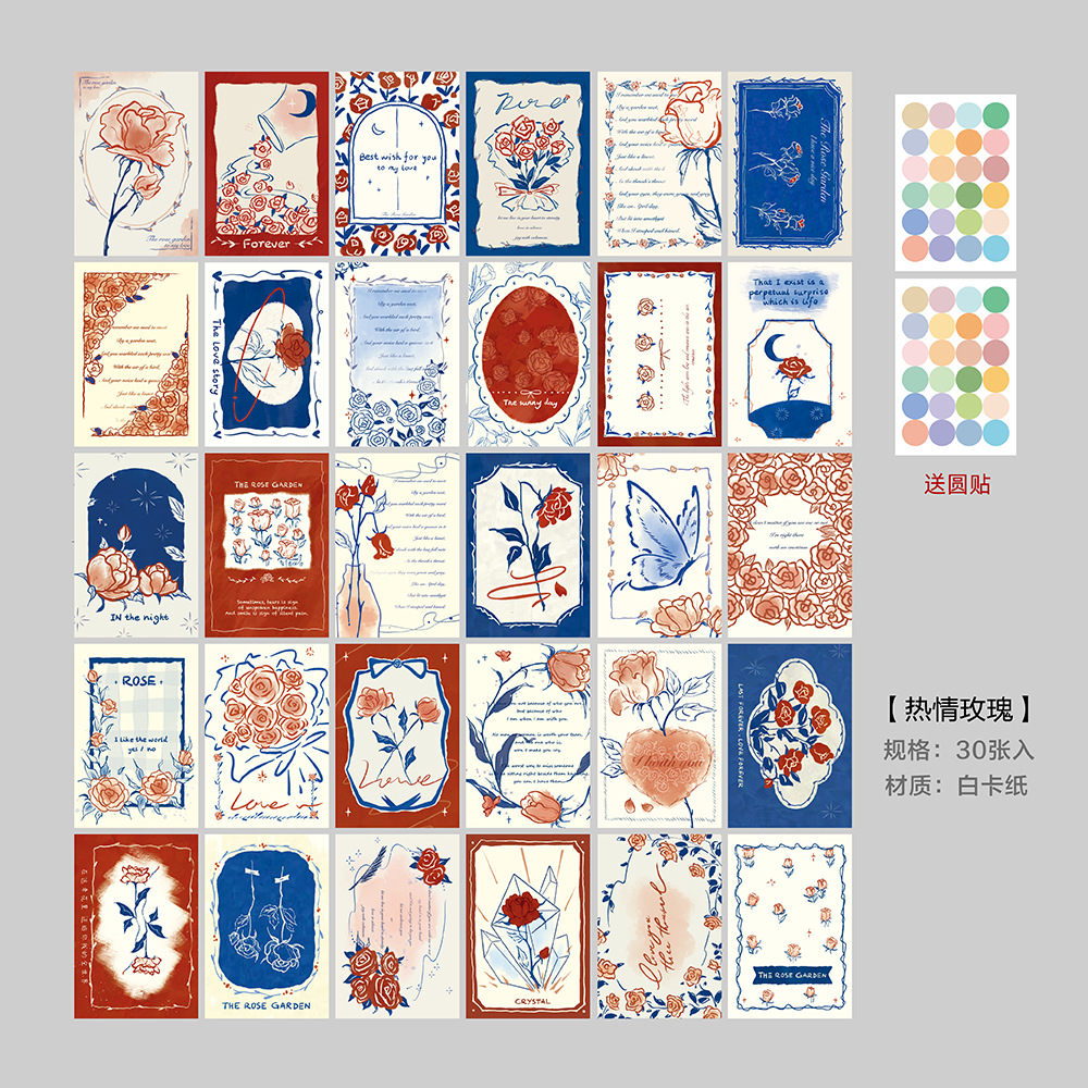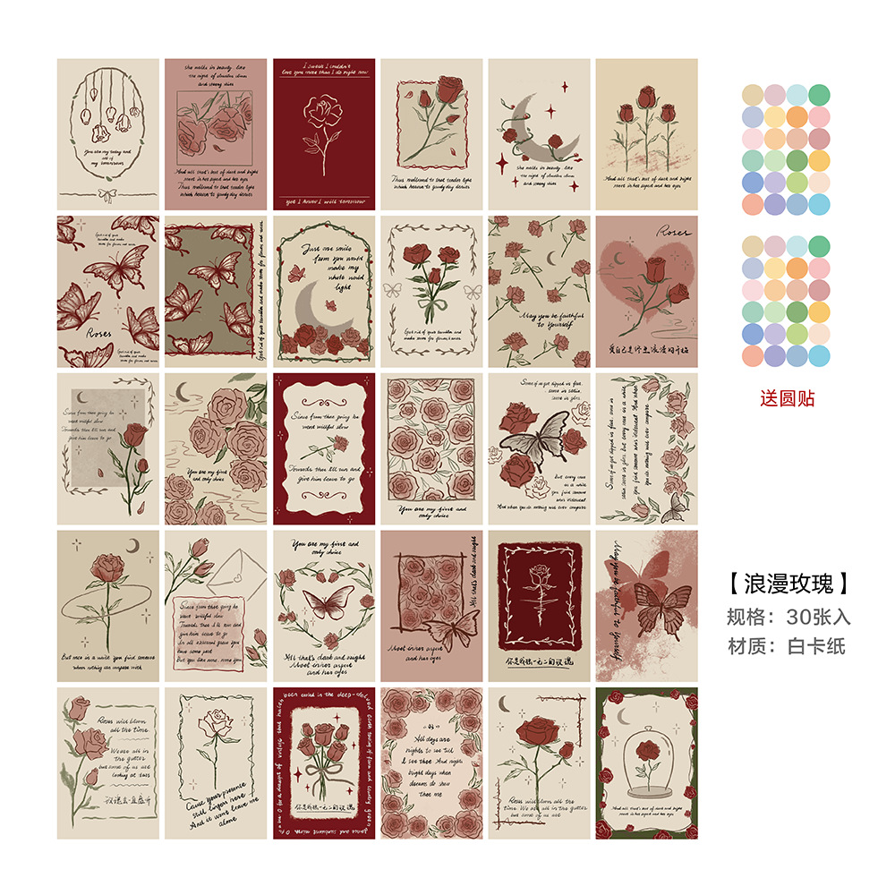 • 열정적인 장미/심플 버전 30개(둥근 스티커 포함, 뒷면은 비어 있음)