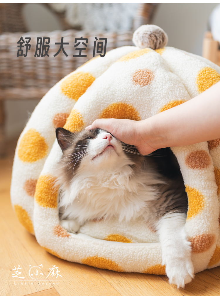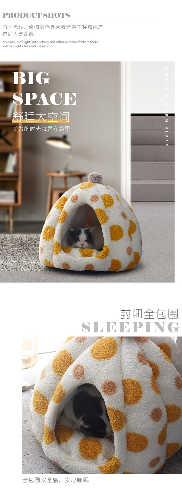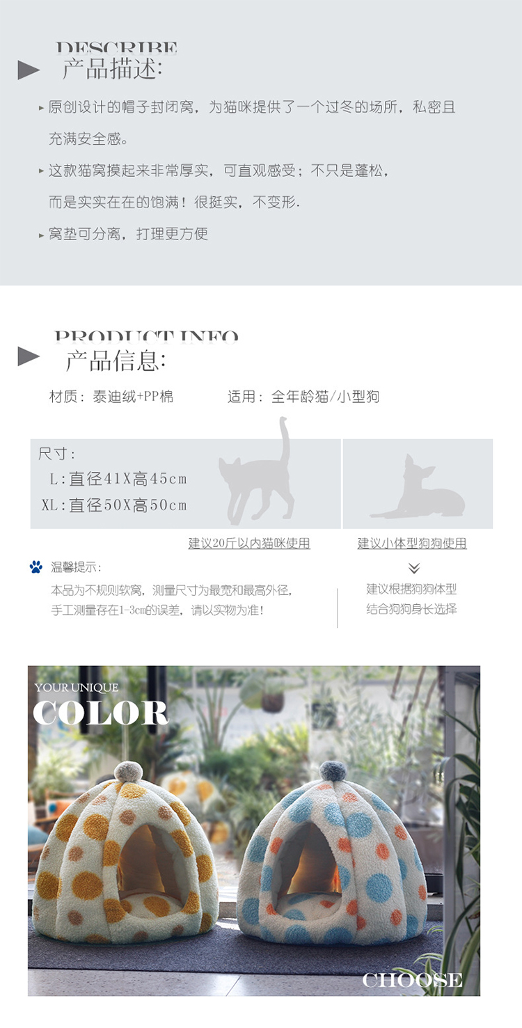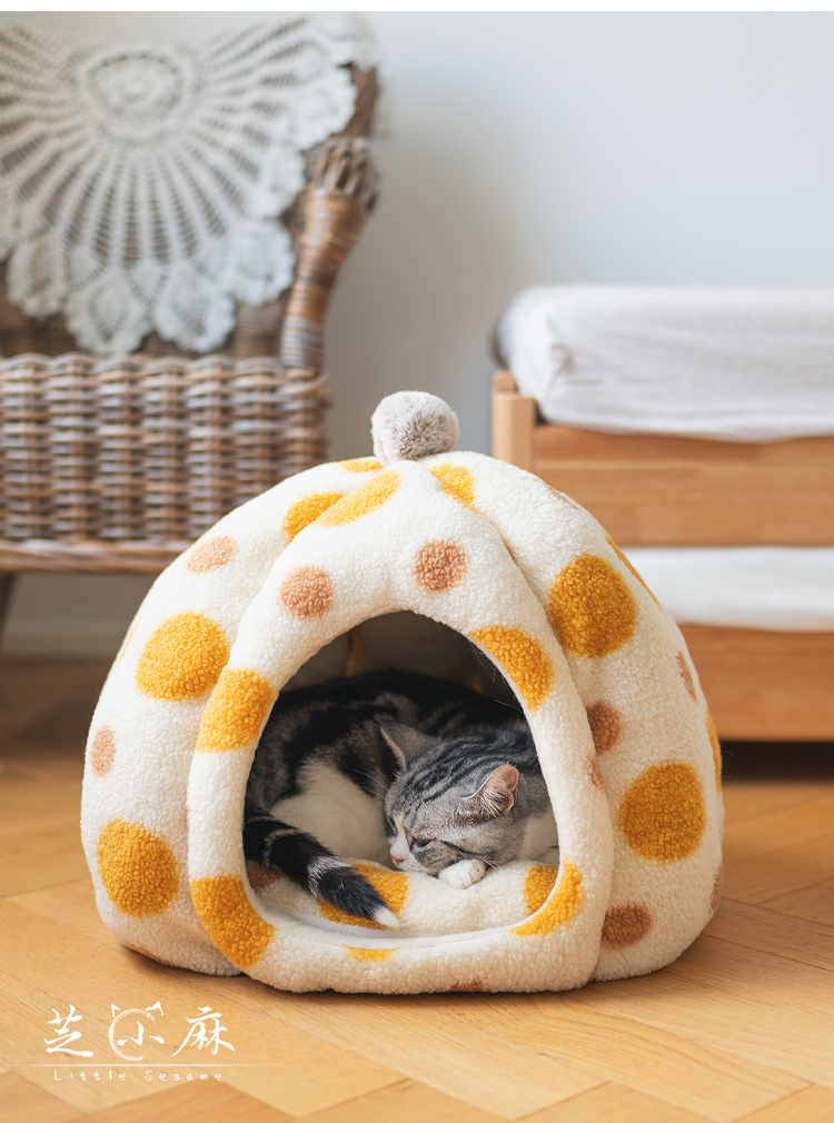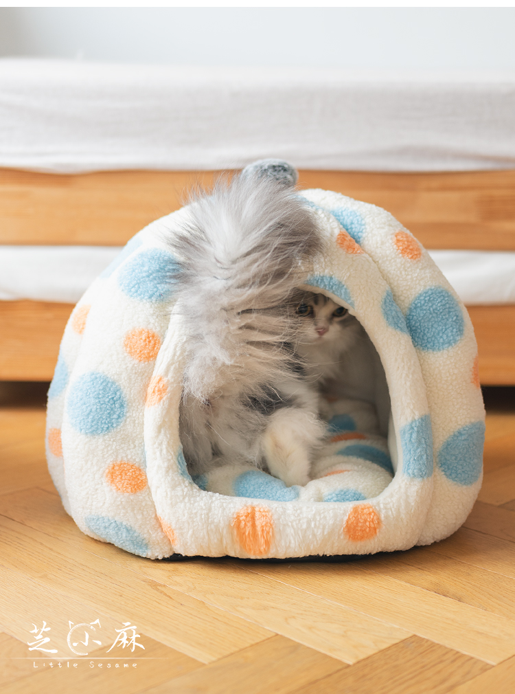 Zhixiaoma 클래식 웨이브 도트 폐쇄 고양이 둥지 고양이 집 고양이 집 겨울 따뜻한 고양이 텐트 몽골 애완 동물 둥지스토어 가기