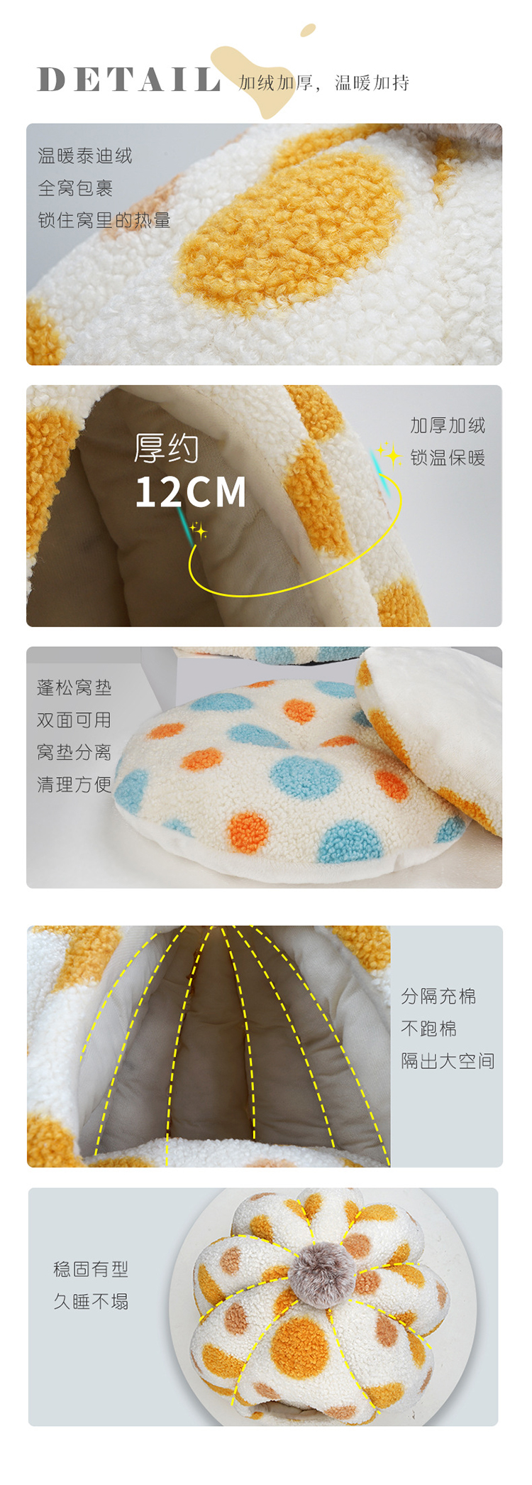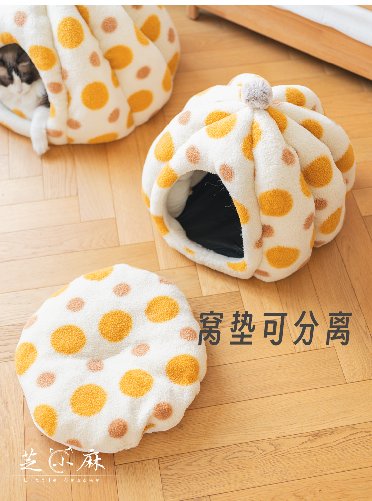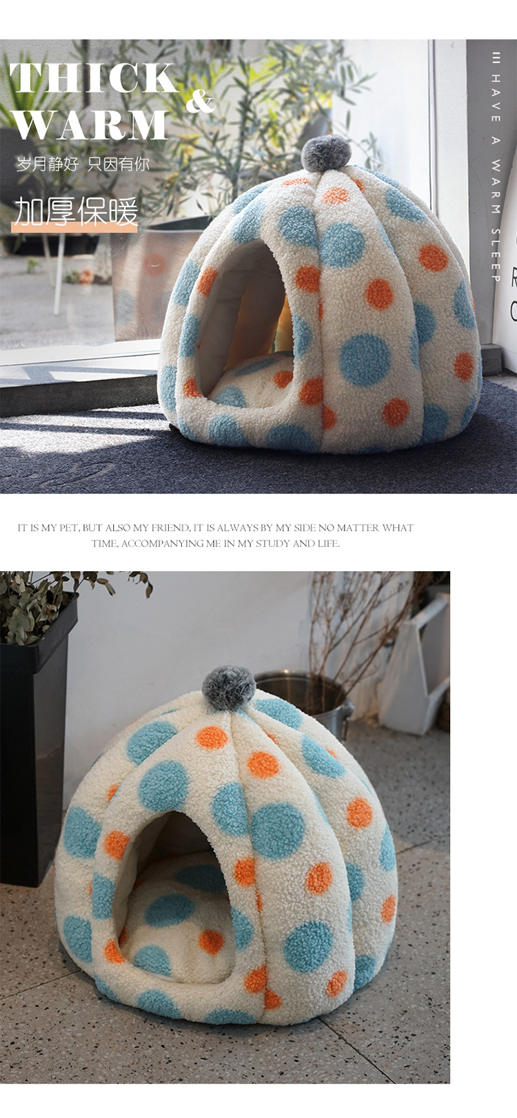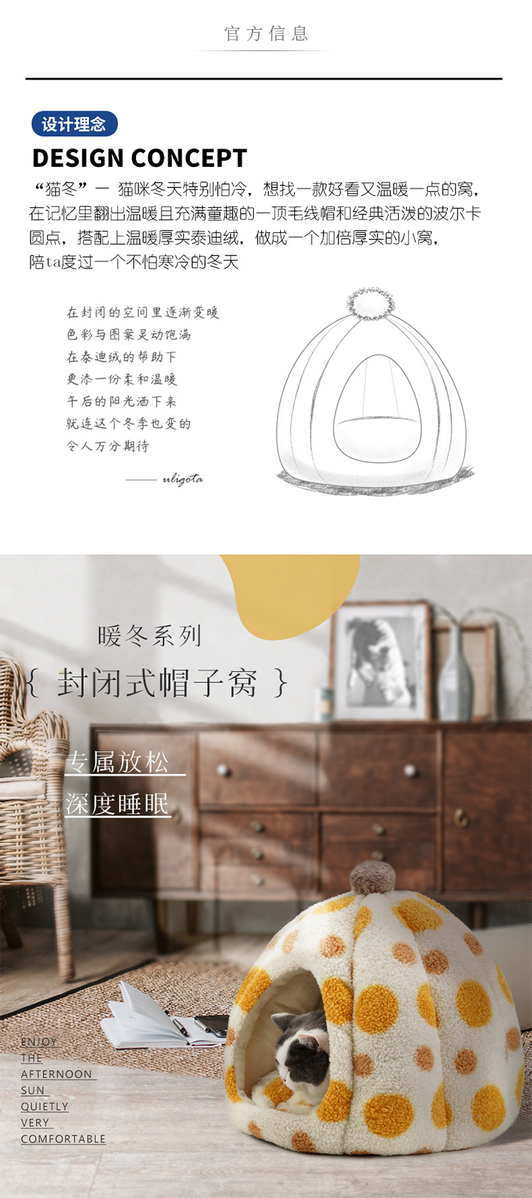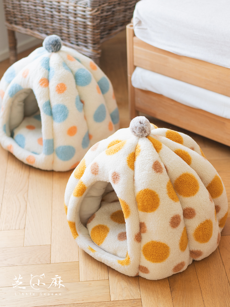 Zhixiaoma 클래식 웨이브 도트 폐쇄 고양이 둥지 고양이 집 고양이 집 겨울 따뜻한 고양이 텐트 몽골 애완 동물 둥지스토어 가기