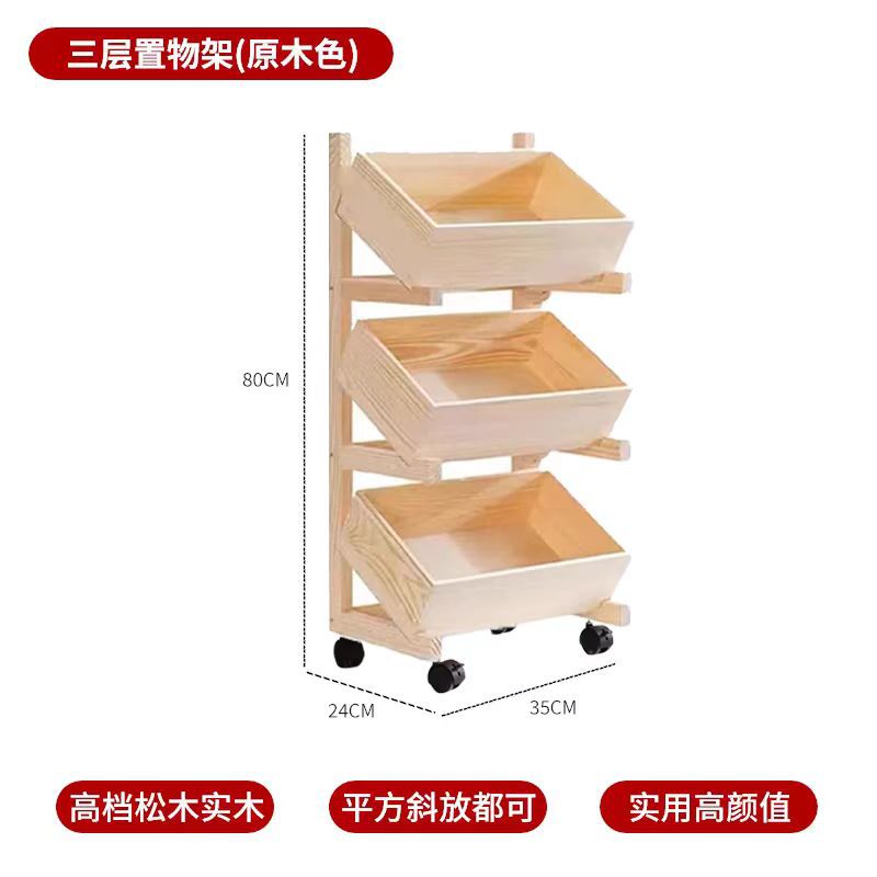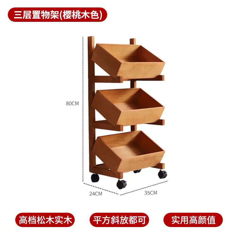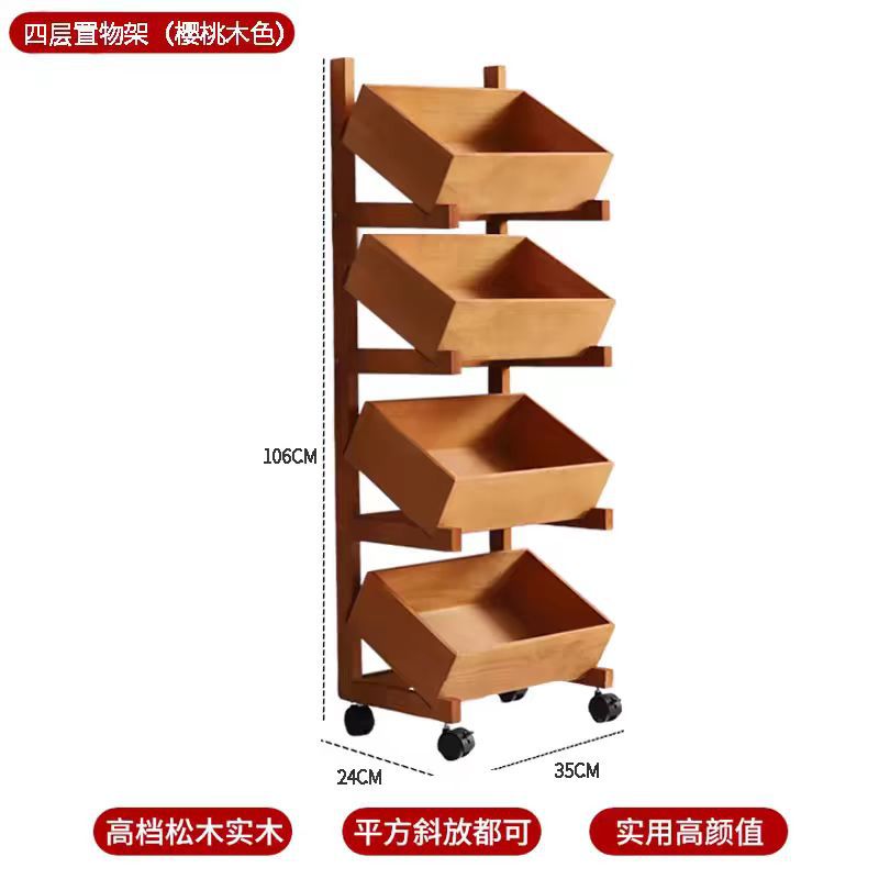 나무 보관 랙 다층 책꽂이 이동식 스낵 보관 랙 거실 주방 과일 및 야채 보관 솔리드 우드 스토리지 랙