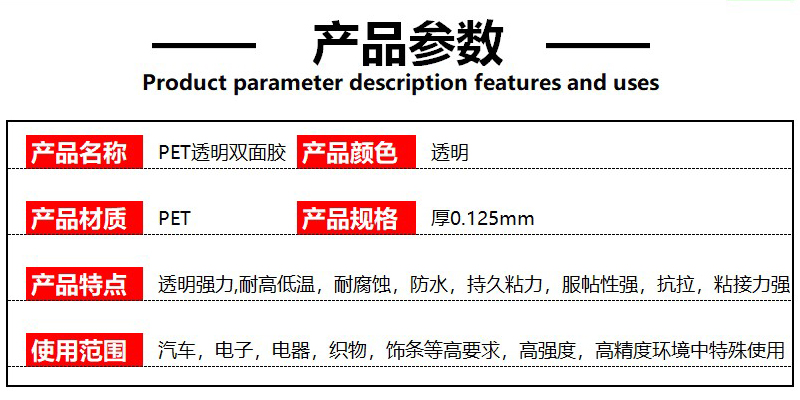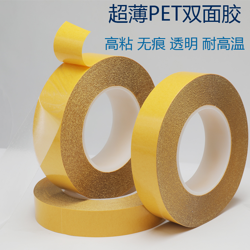 PET 투명 양면 접착 테이프 초박형 고온 저항 강한 고점도 고정 된 눈물 연속 노화 방지 내구성 접착력
