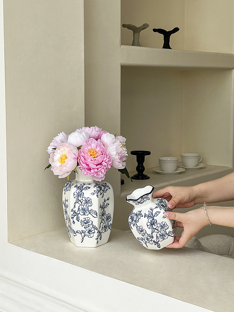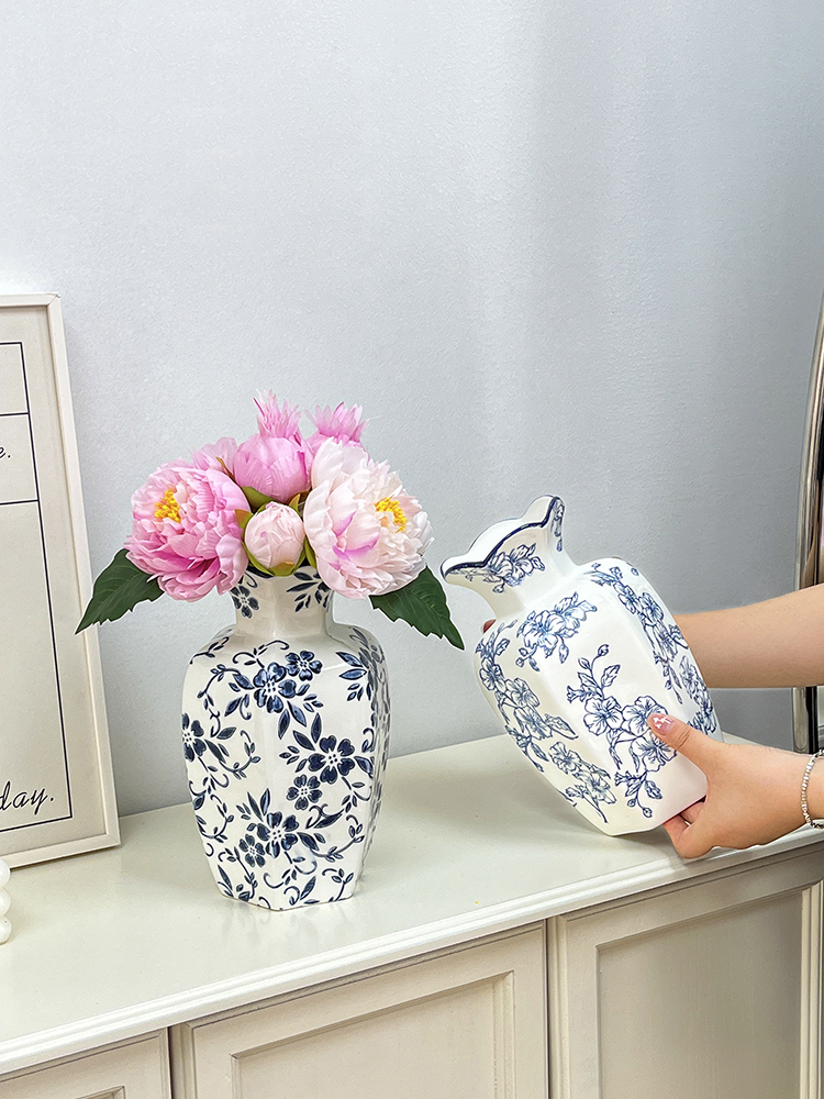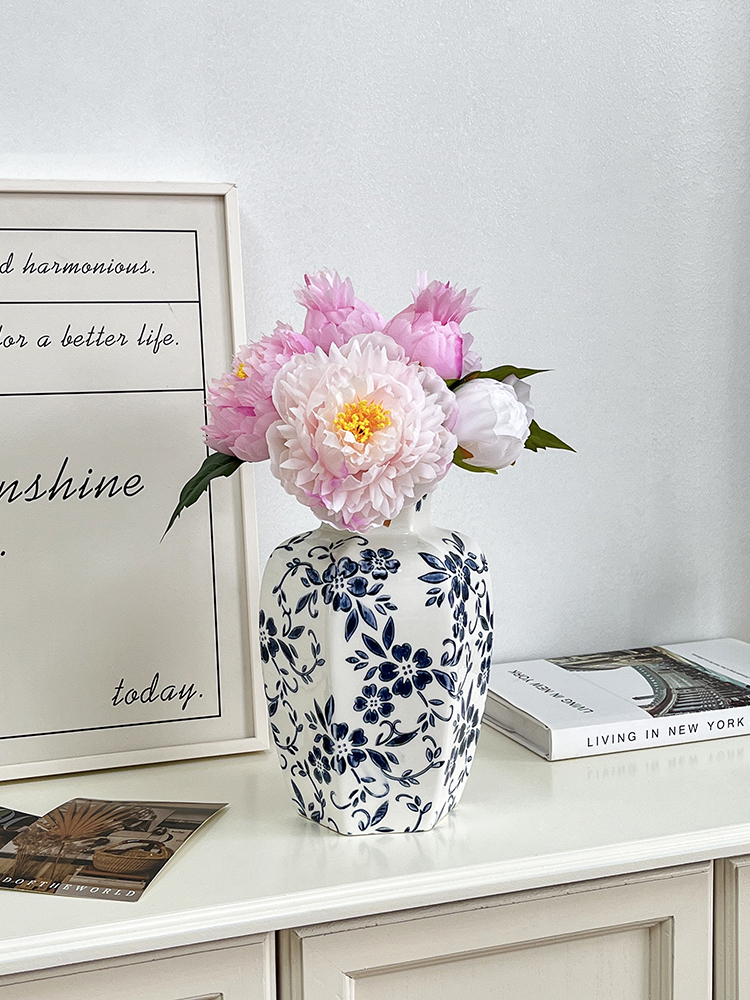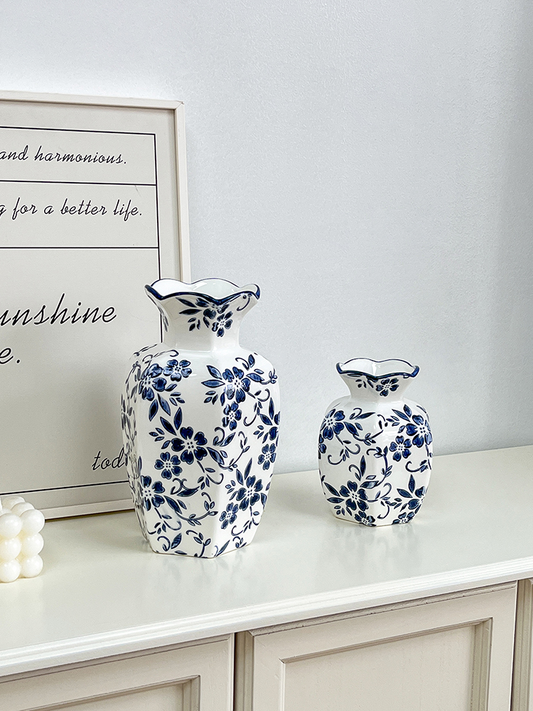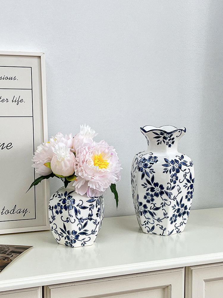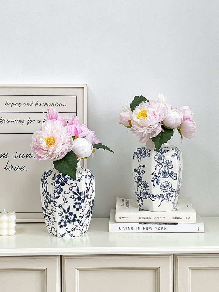 파란색과 흰색 도자기 세라믹 꽃병 장식 거실 꽃 수경법 빛 고급 고급 고급 레트로 새로운 중국 예술 꽃