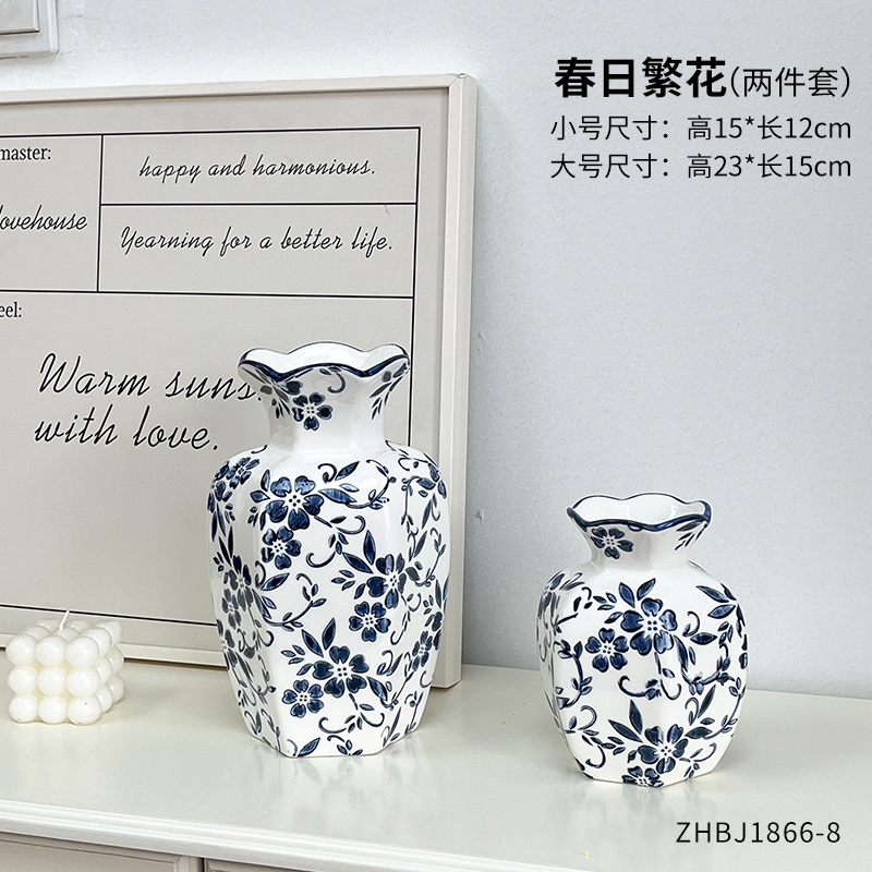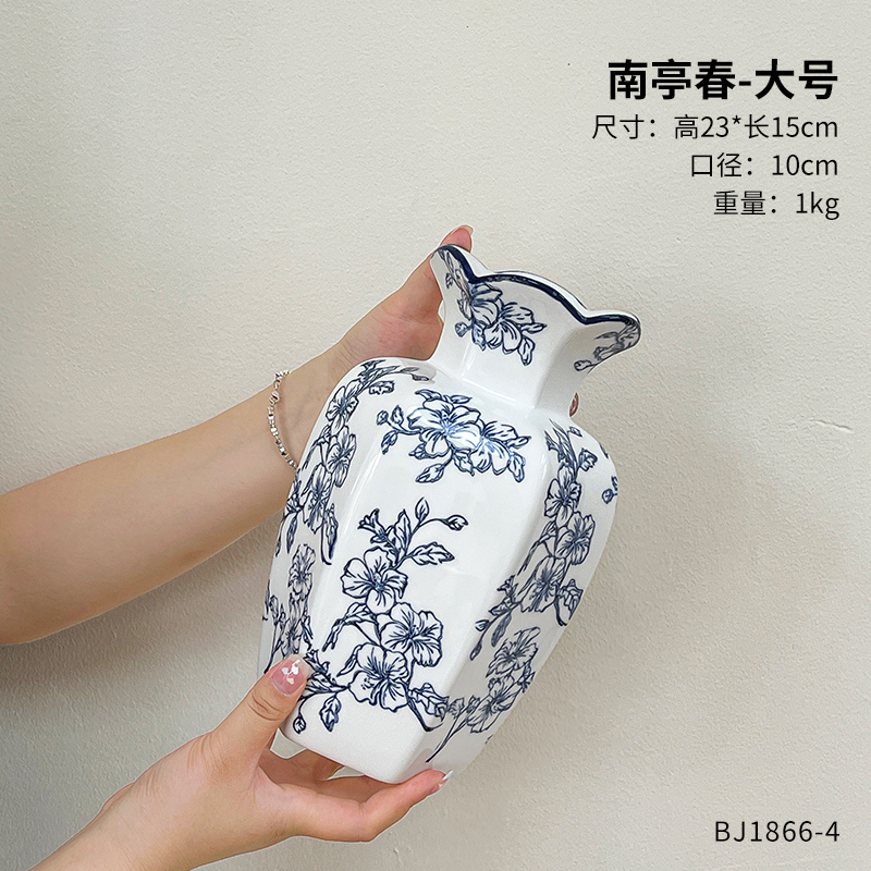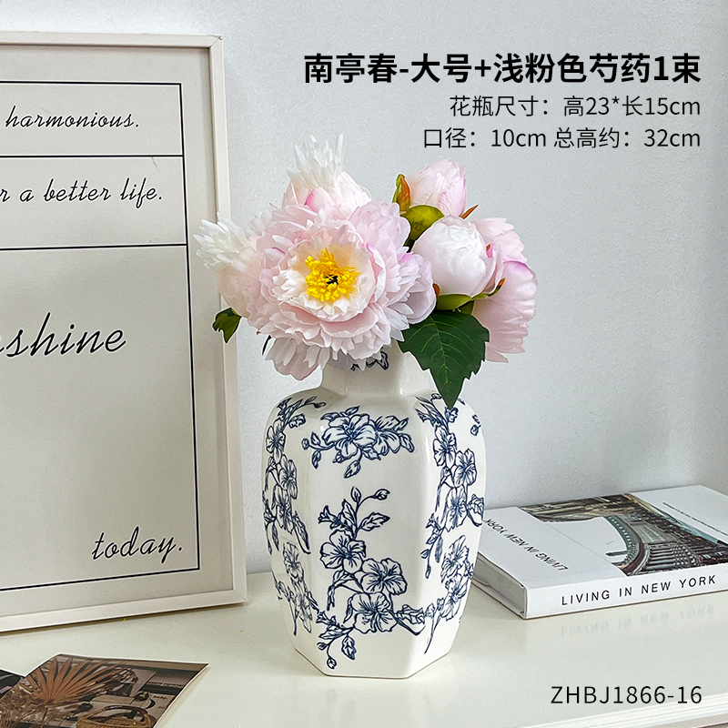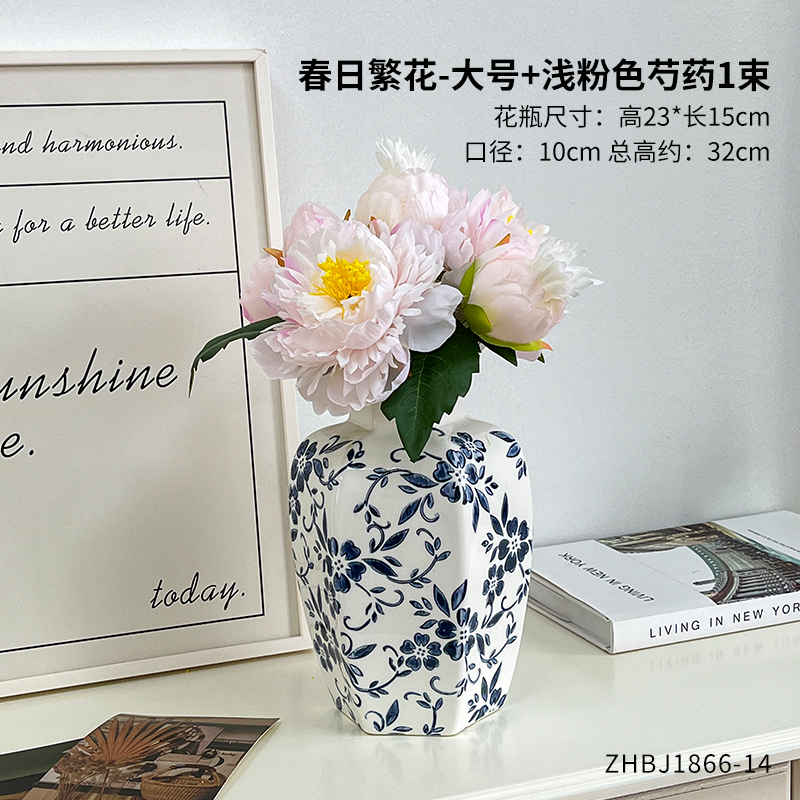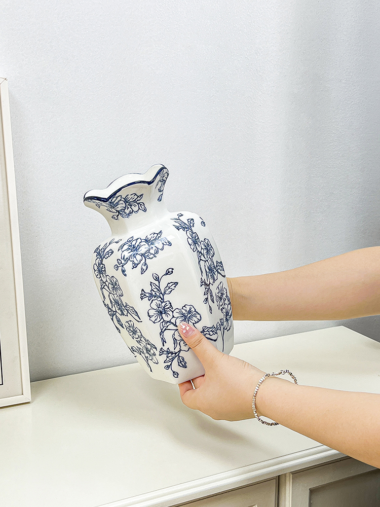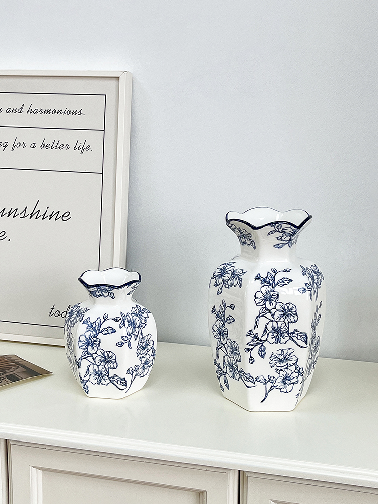 파란색과 흰색 도자기 세라믹 꽃병 장식 거실 꽃 수경법 빛 고급 고급 고급 레트로 새로운 중국 예술 꽃