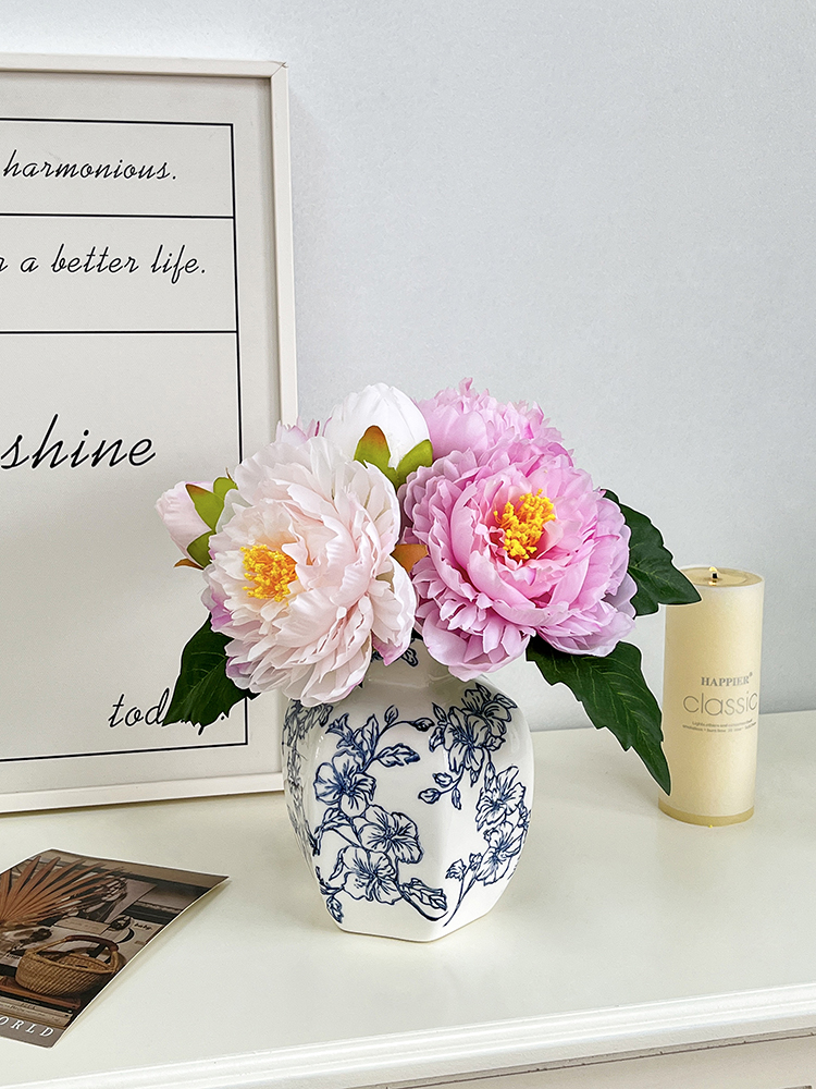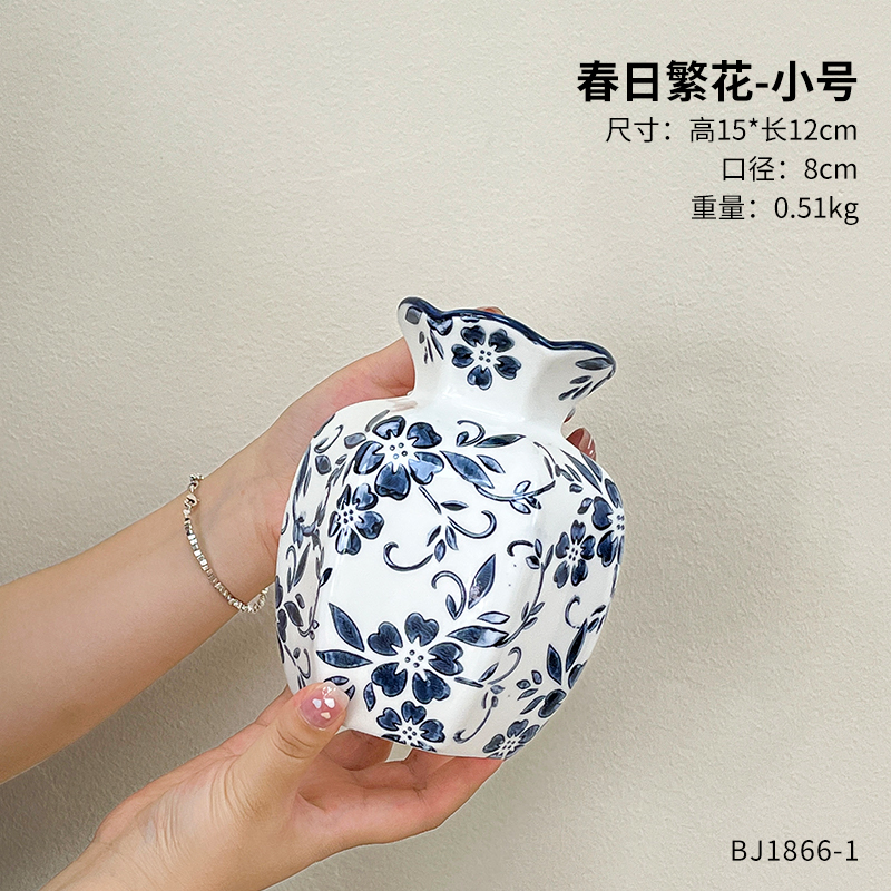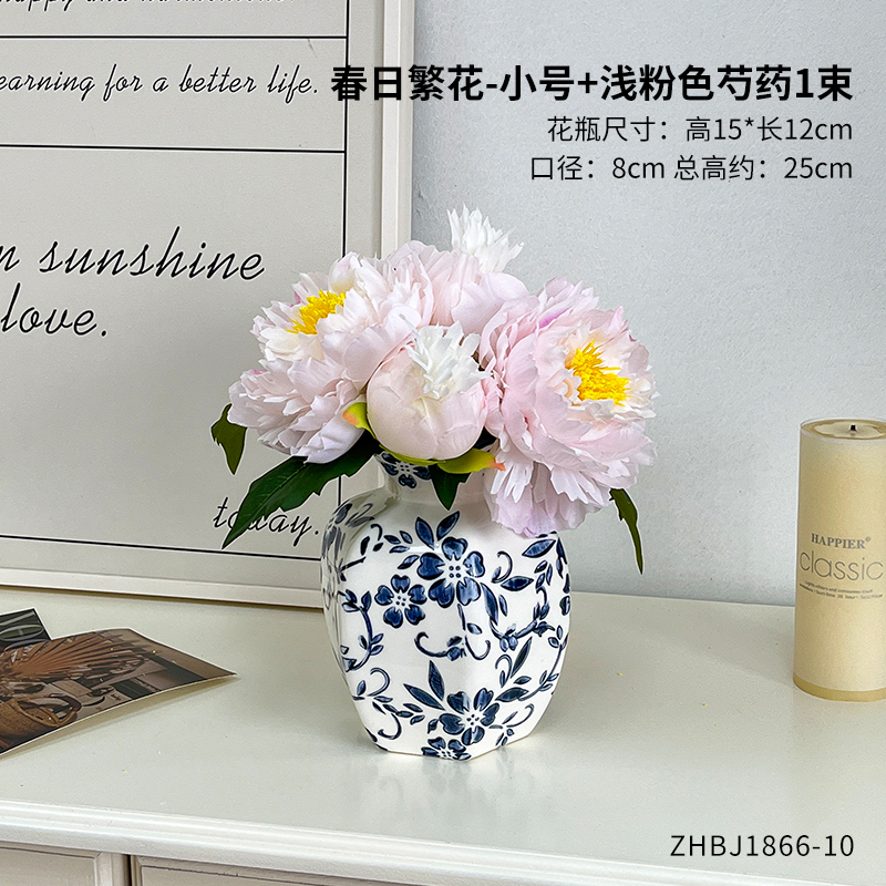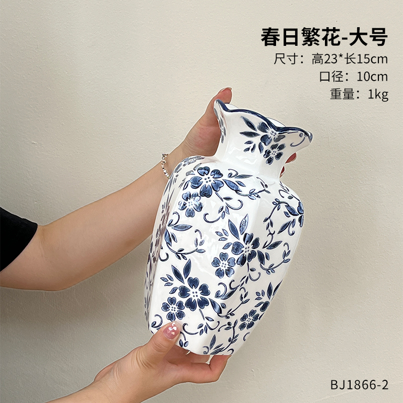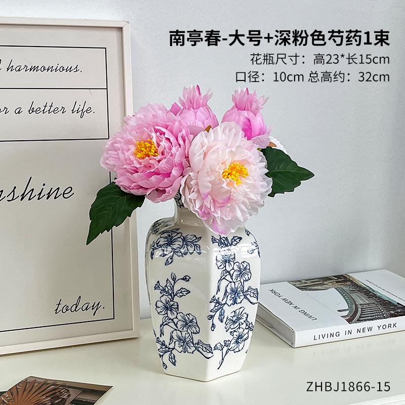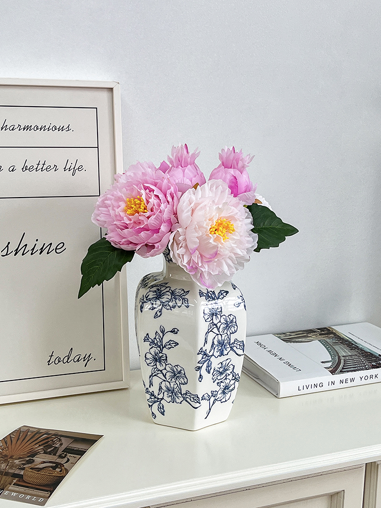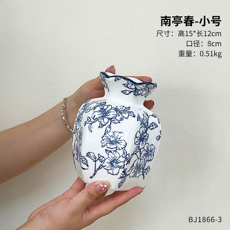 파란색과 흰색 도자기 세라믹 꽃병 장식 거실 꽃 수경법 빛 고급 고급 고급 레트로 새로운 중국 예술 꽃