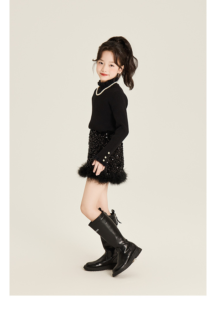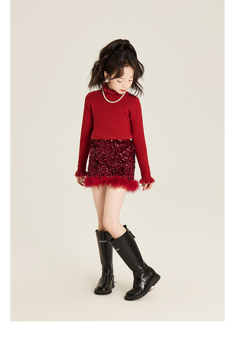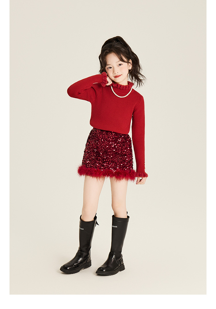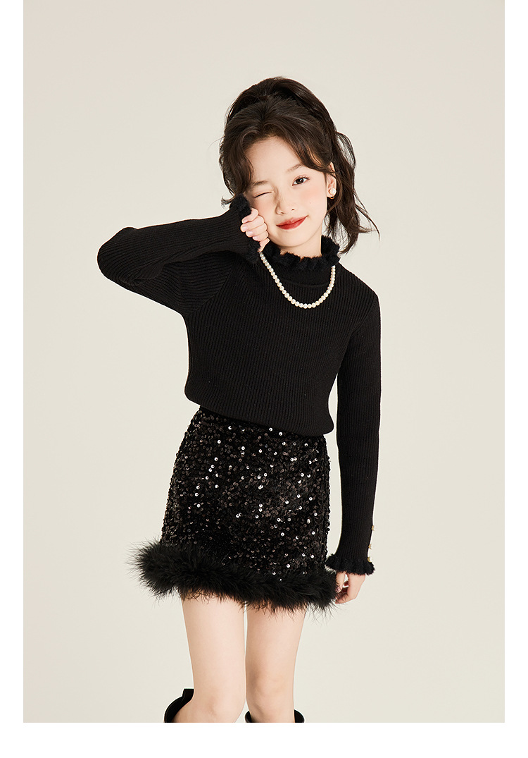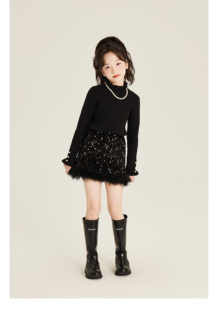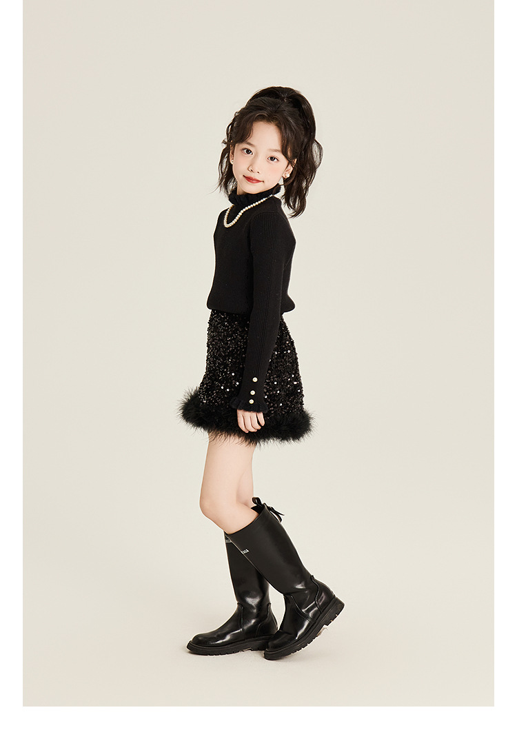 Amybaby Girl's Skirt Winter 2024 새로운 올 매치 솔리드 컬러 벨벳 스퀸 모피 러스트 스커트 A-라인 스커트