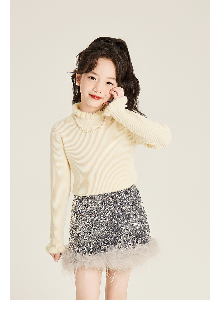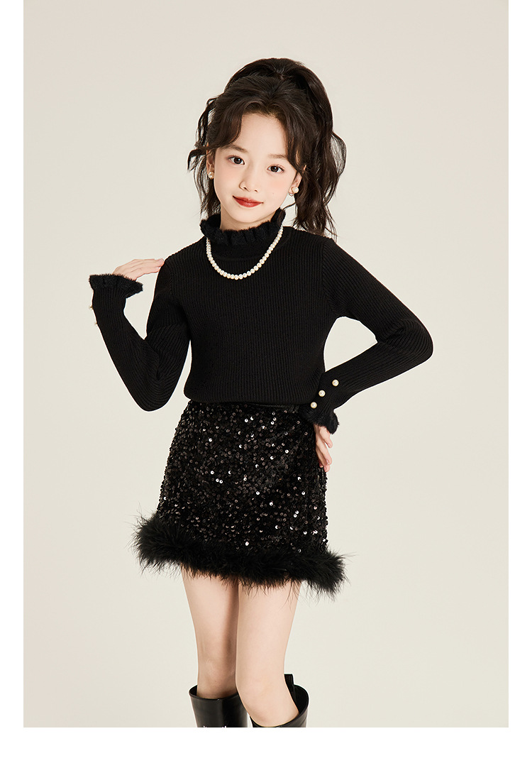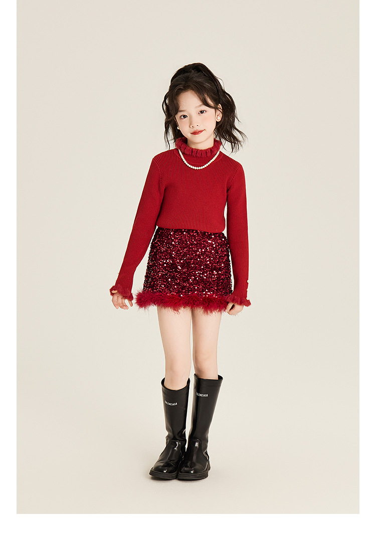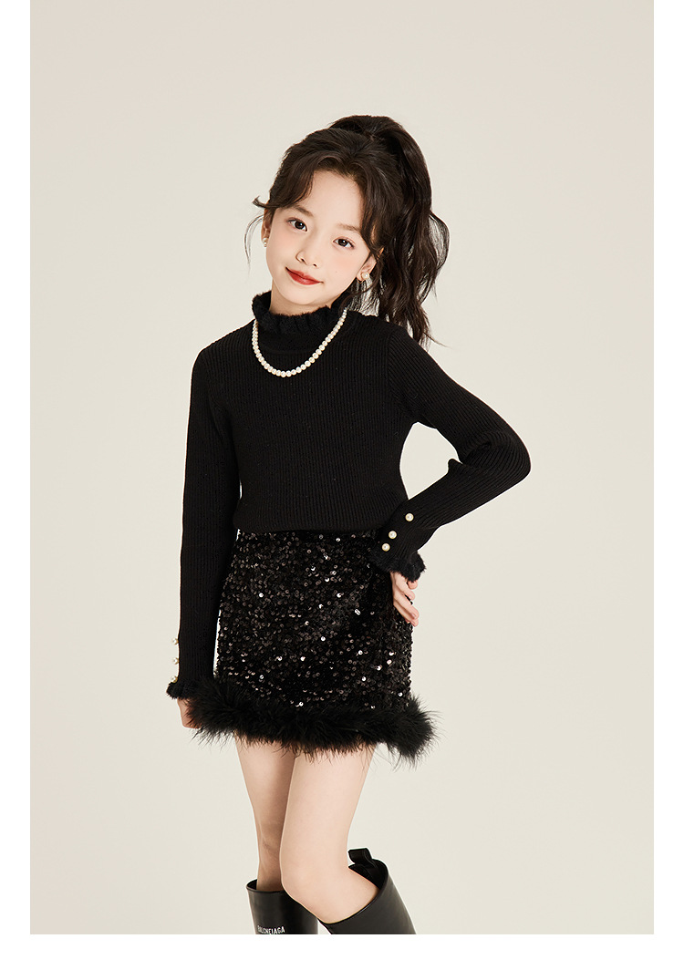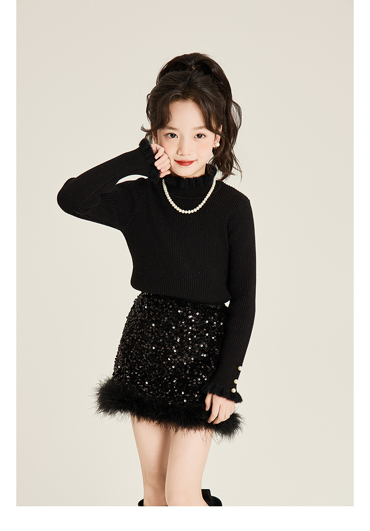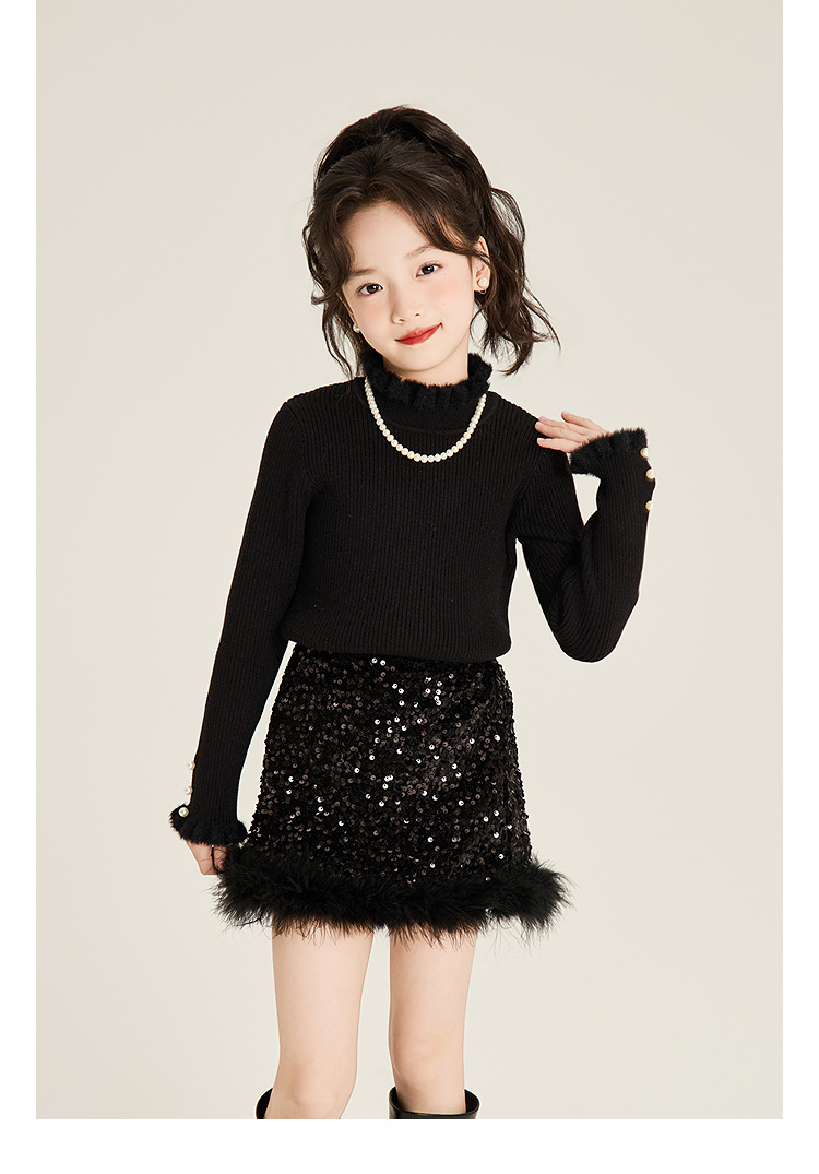 Amybaby Girl's Skirt Winter 2024 새로운 올 매치 솔리드 컬러 벨벳 스퀸 모피 러스트 스커트 A-라인 스커트
