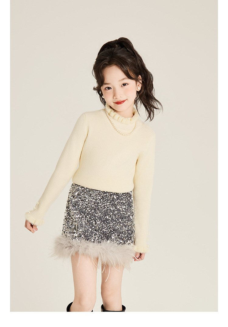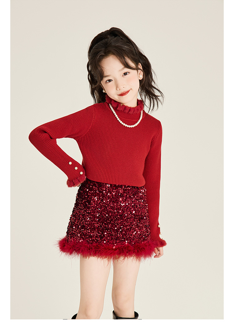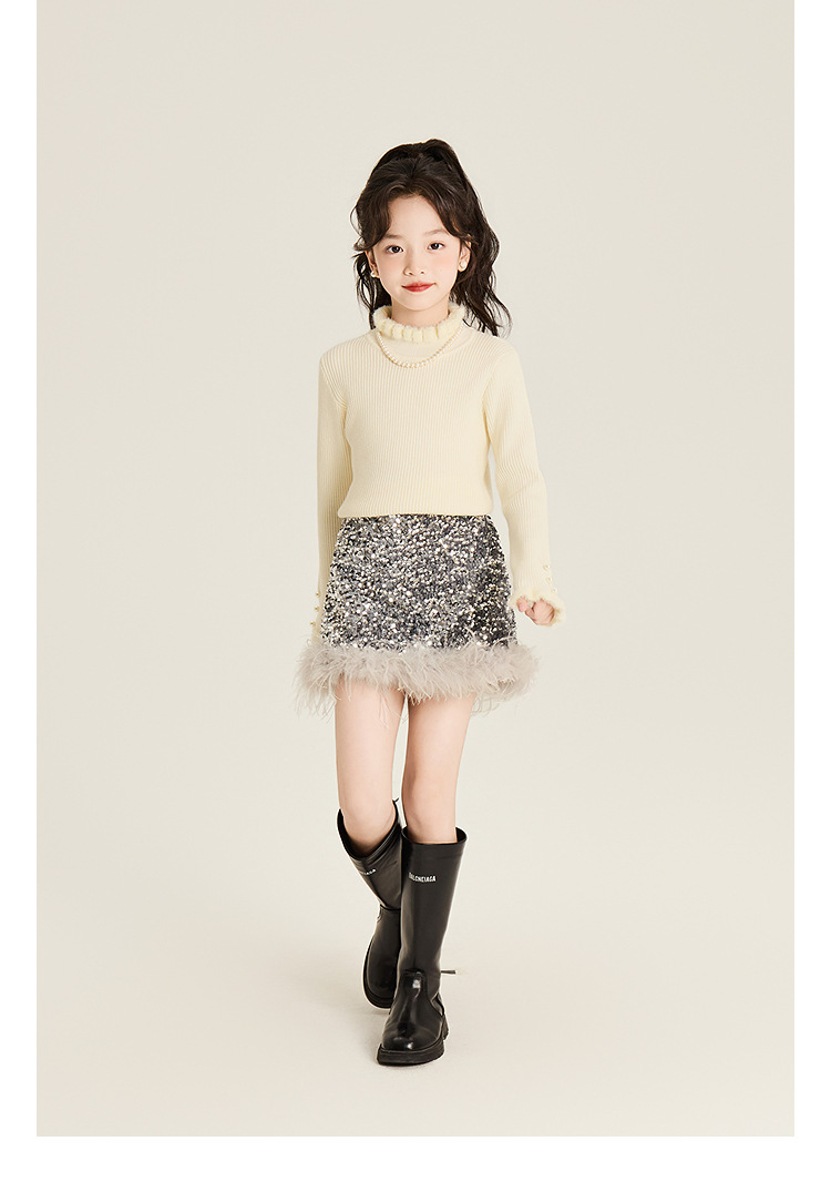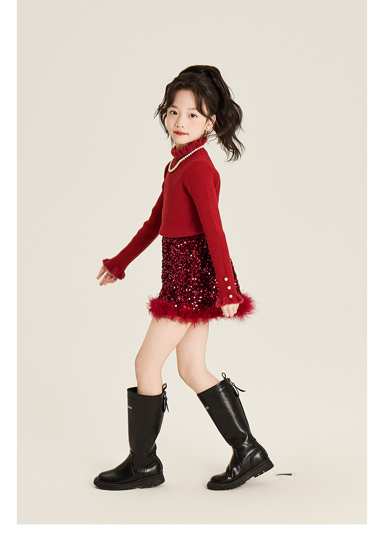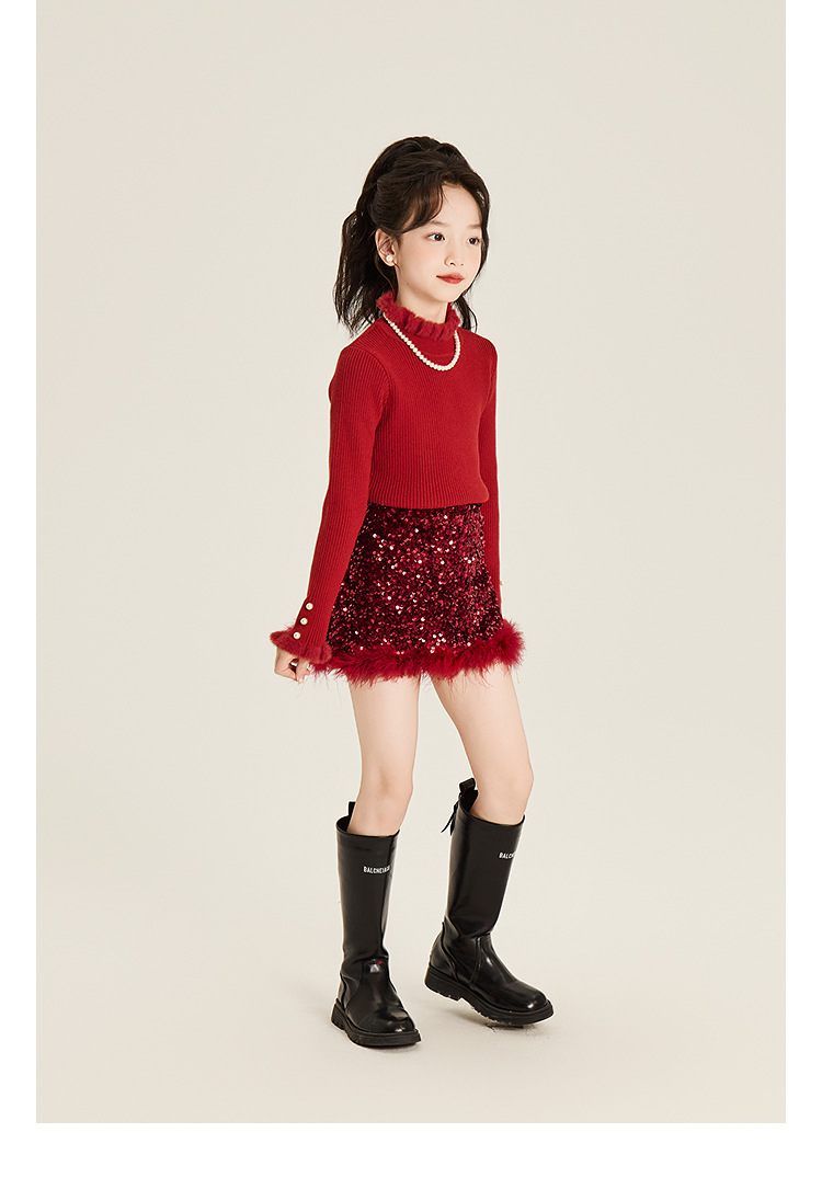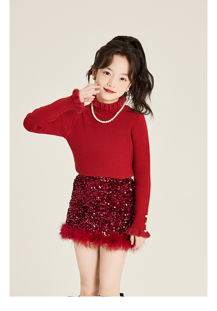 Amybaby Girl's Skirt Winter 2024 새로운 올 매치 솔리드 컬러 벨벳 스퀸 모피 러스트 스커트 A-라인 스커트