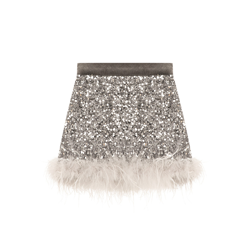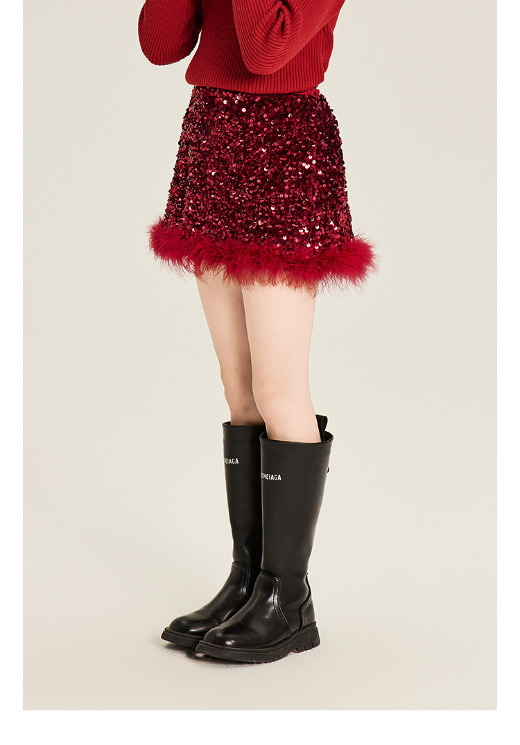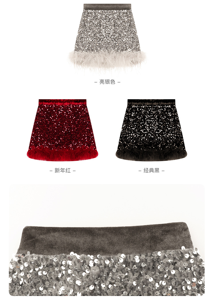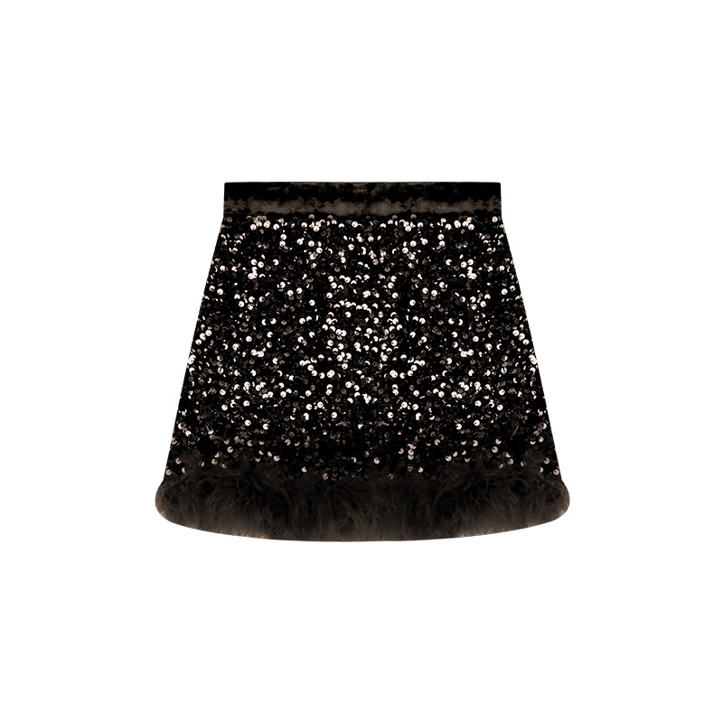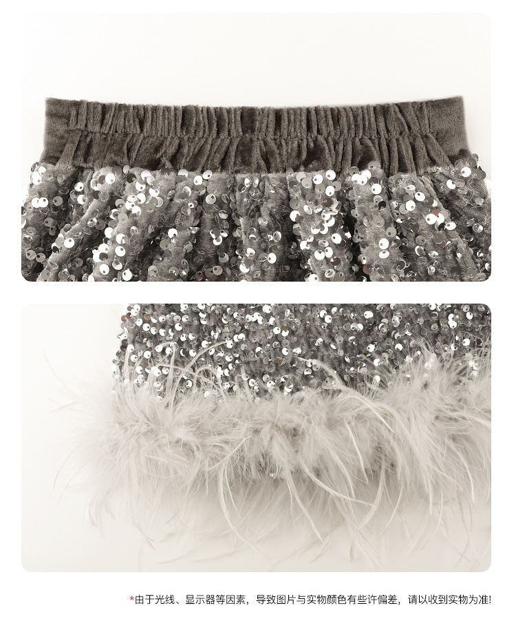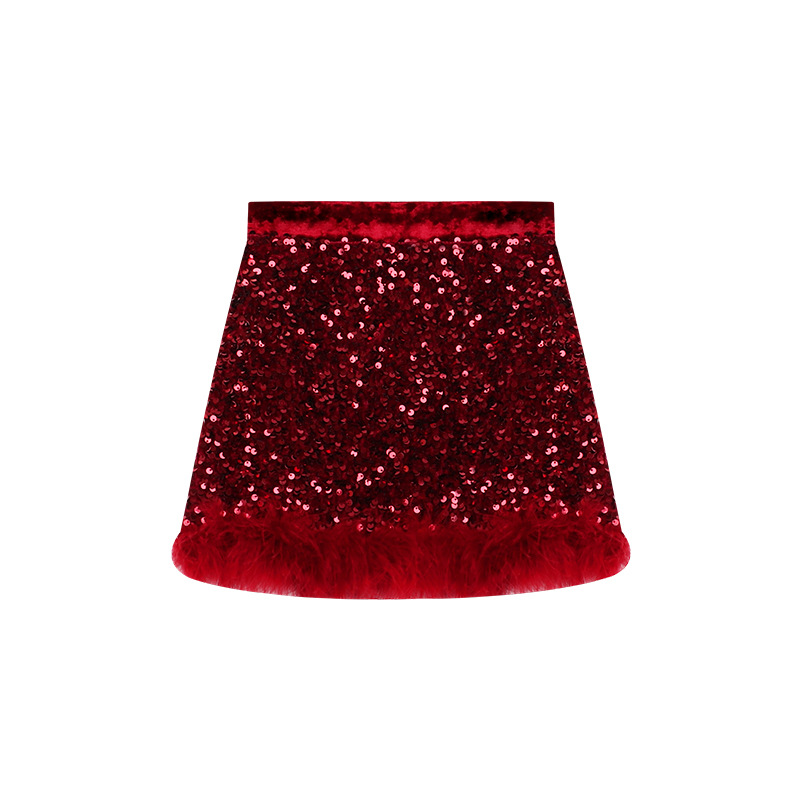 Amybaby Girl's Skirt Winter 2024 새로운 올 매치 솔리드 컬러 벨벳 스퀸 모피 러스트 스커트 A-라인 스커트스토어 가기