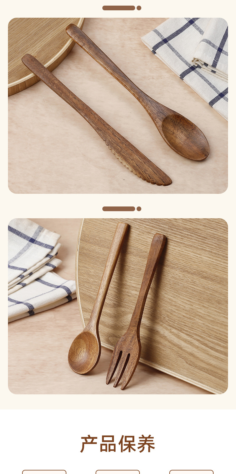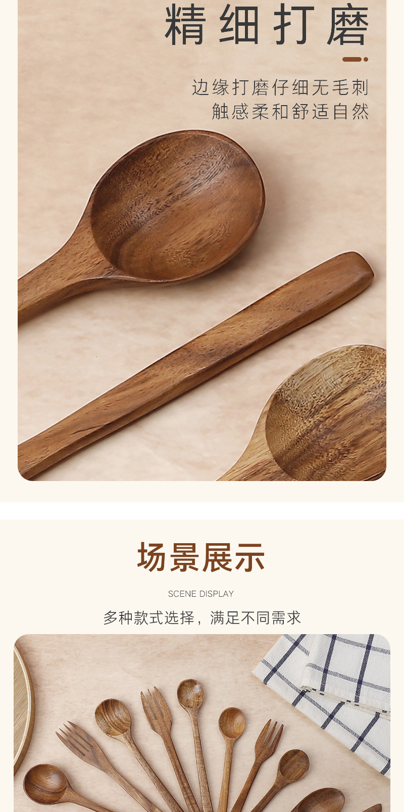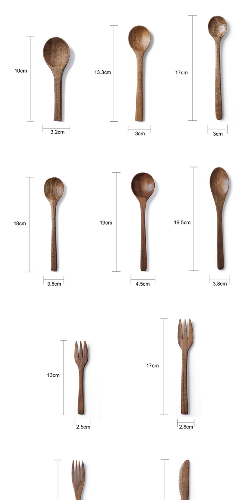 아카시아 나무 식기 긴 손잡이 국자, 믹싱 스푼, 나이프와 포크, 작은 숟가락, 수저, 식사용 숟가락, 가정용 나무 숟가락 세트스토어 가기