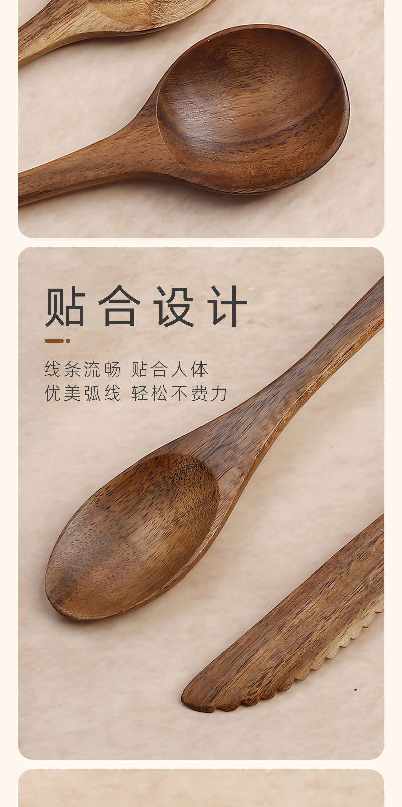 아카시아 나무 식기 긴 손잡이 국자, 믹싱 스푼, 나이프와 포크, 작은 숟가락, 수저, 식사용 숟가락, 가정용 나무 숟가락 세트