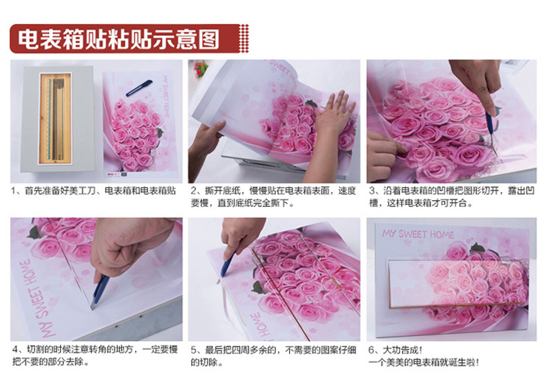 잉넷 레드 미터 박스 스티커 장식 그림 자기 접착 분배 상자 커버 스티커 스위치 상자 약한 상자 벽 잉케