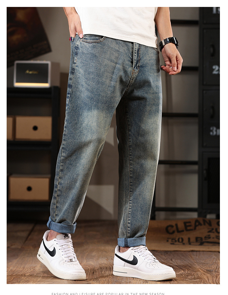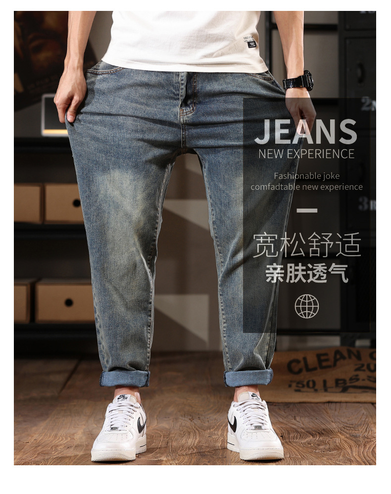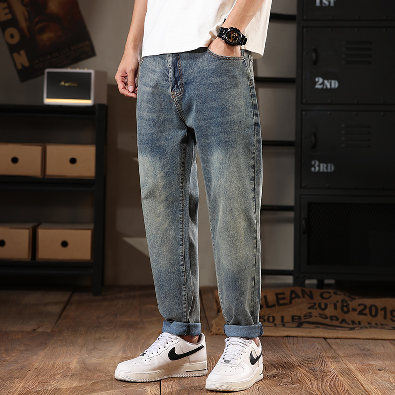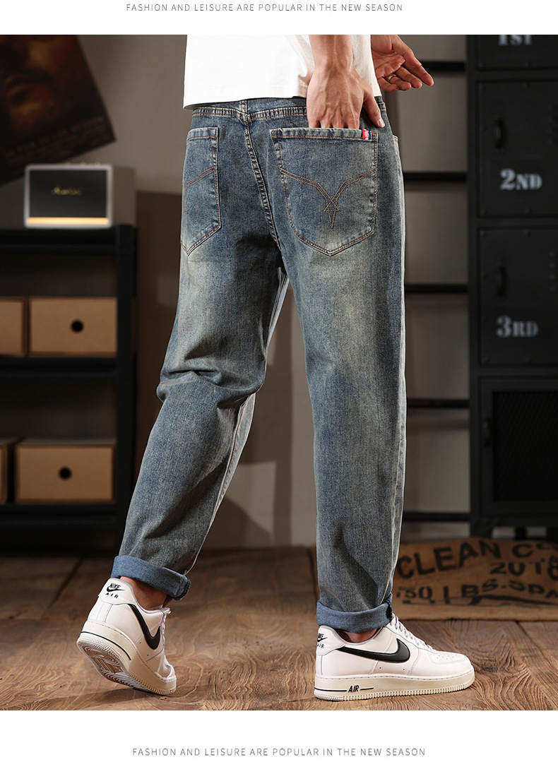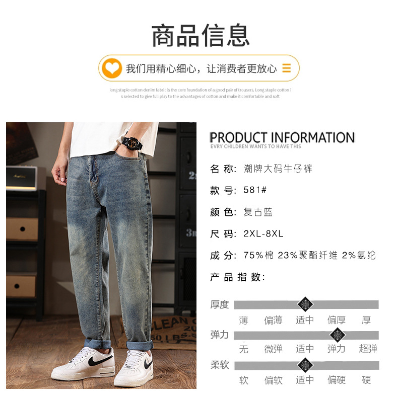 581 | 플러스 사이즈 남성 봄 새로운 복고풍 청바지 남성용 느슨한 플러스 사이즈 조수 브랜드 스트레치 레깅스스토어 가기