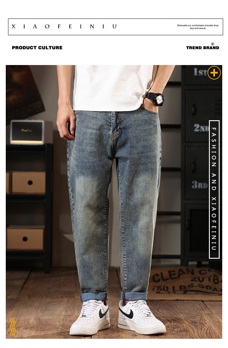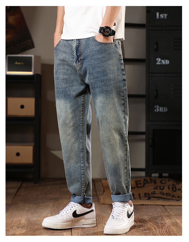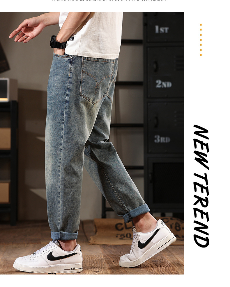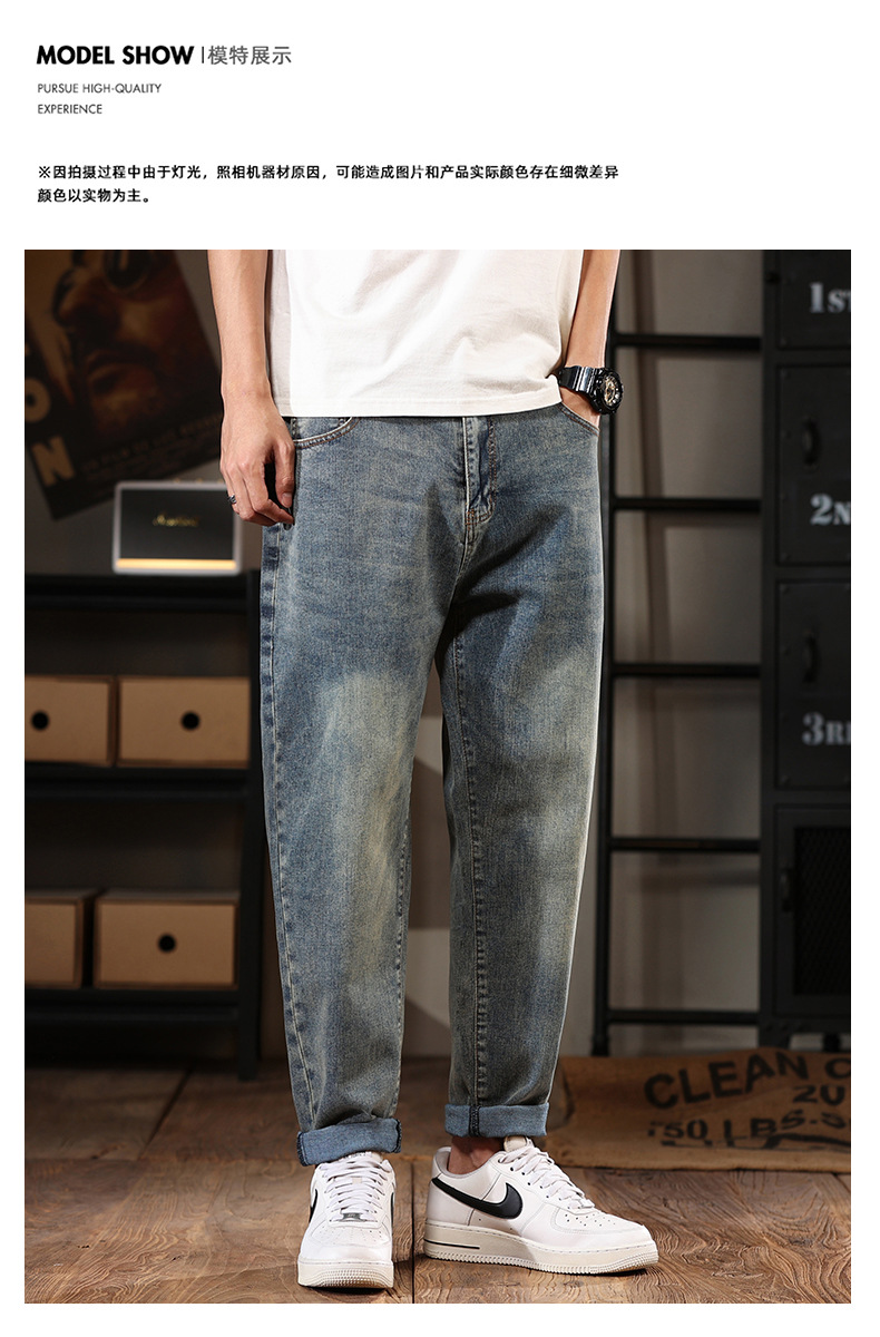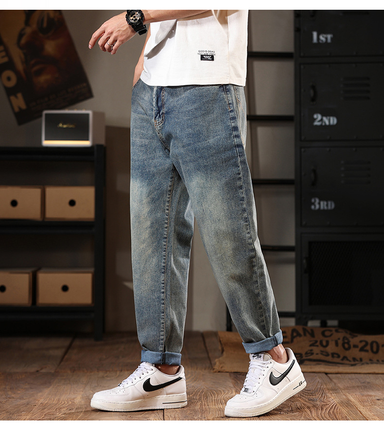 581 | 플러스 사이즈 남성 봄 새로운 복고풍 청바지 남성용 느슨한 플러스 사이즈 조수 브랜드 스트레치 레깅스스토어 가기