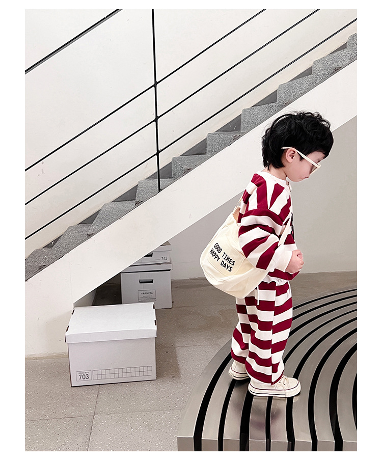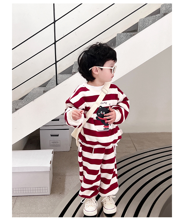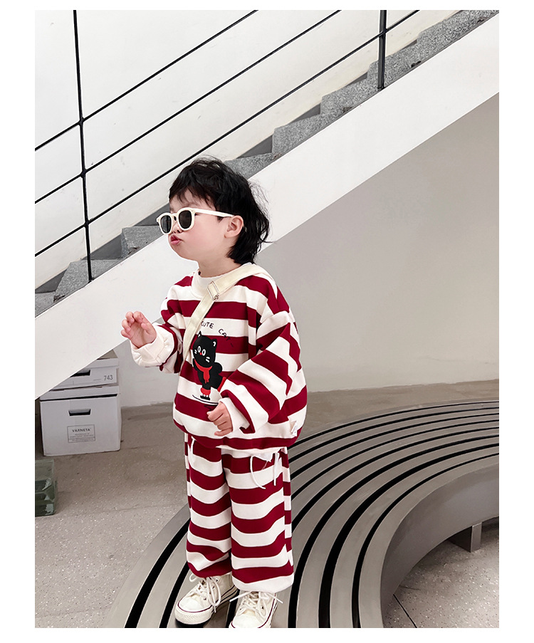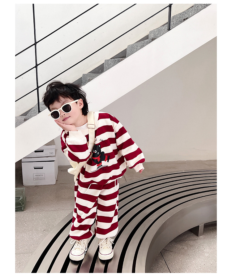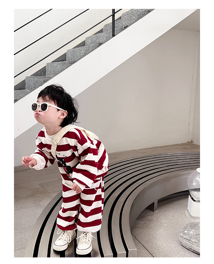 소년 소녀 빨간 줄무늬 세트 2025 새 봄과 가을 아기 유행 투피스 한국 어린이 외국 스타일 옷스토어 가기