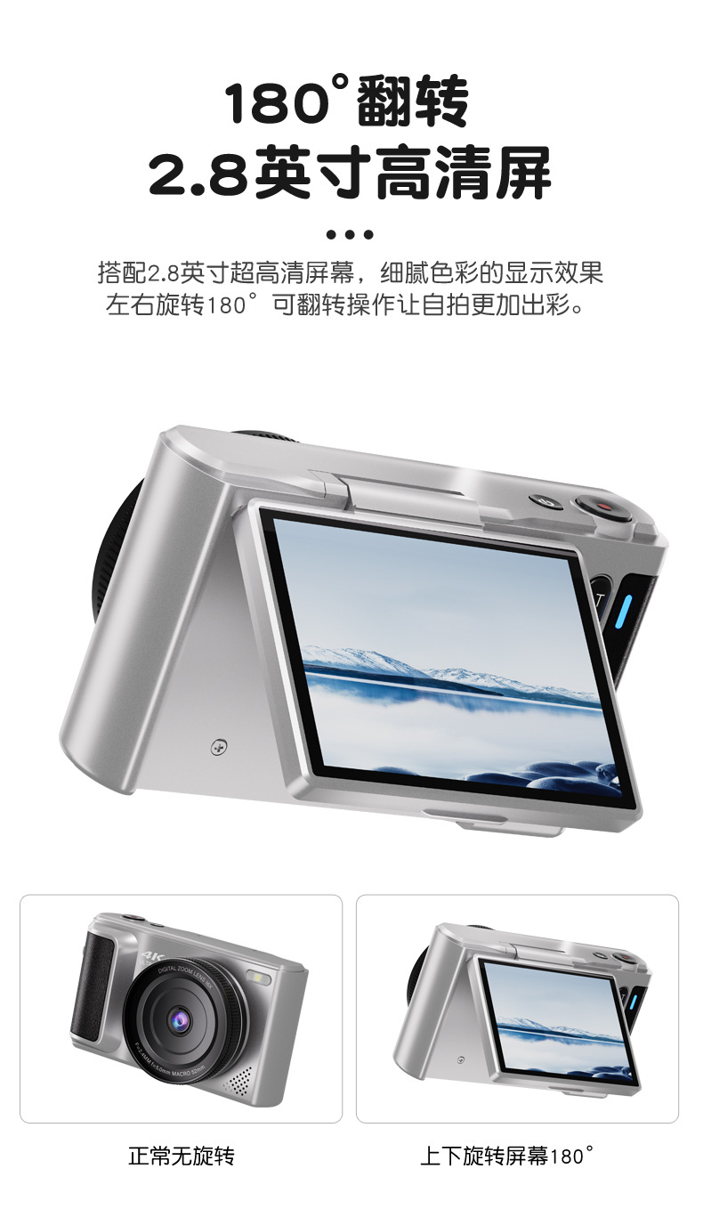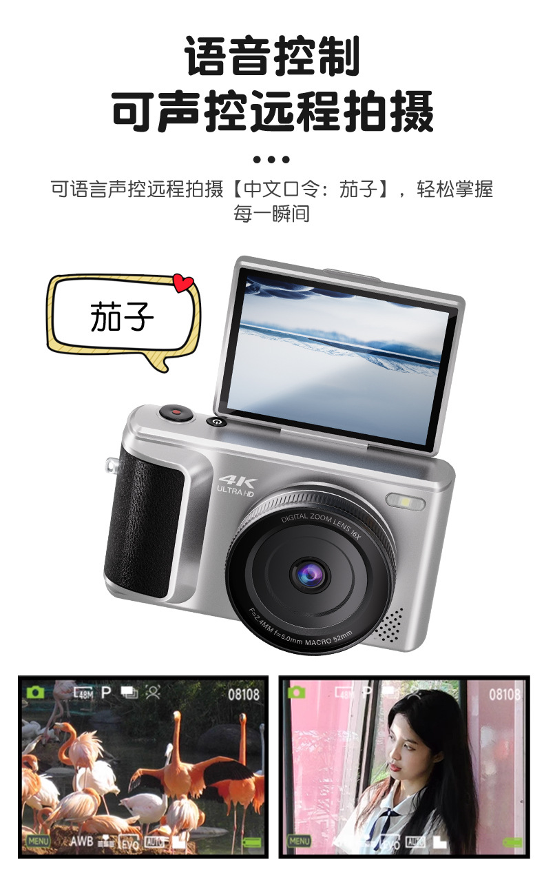 고해상도 높은 픽셀 4K 마이크로 단일 디지털 카메라 학생 복고풍 음성 활성화 카메라 플립 카메라