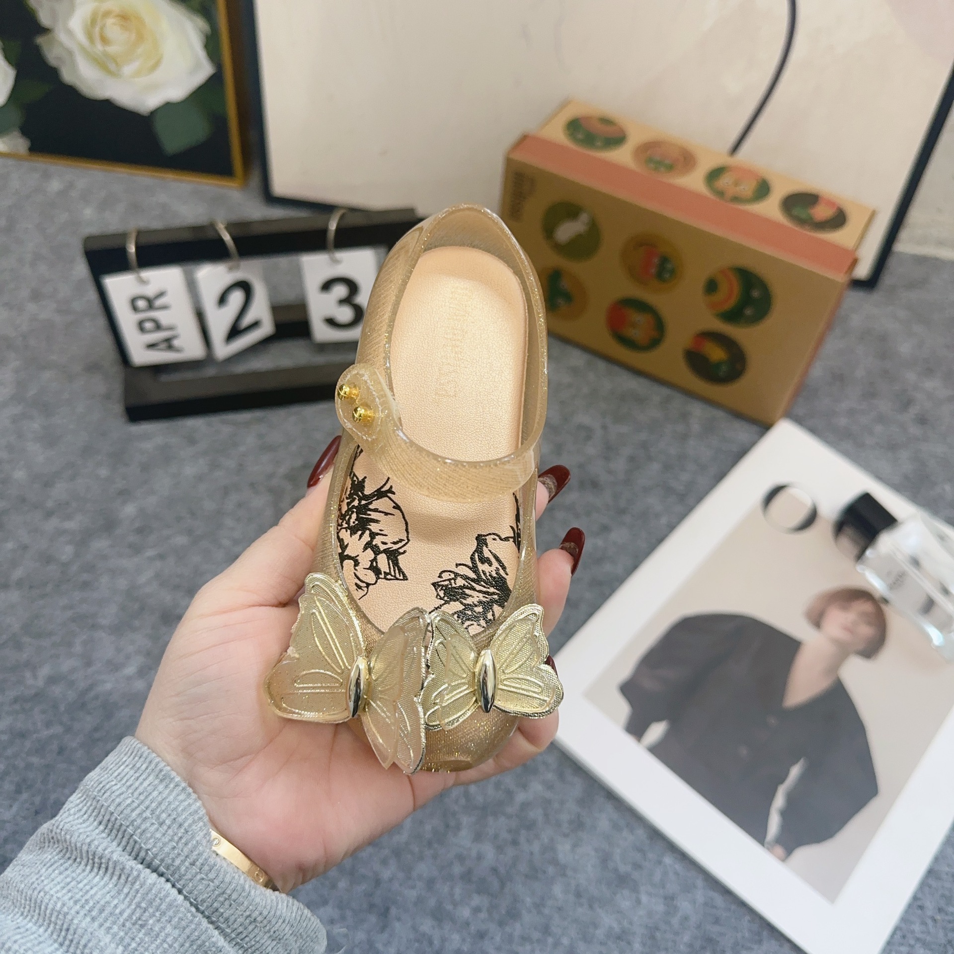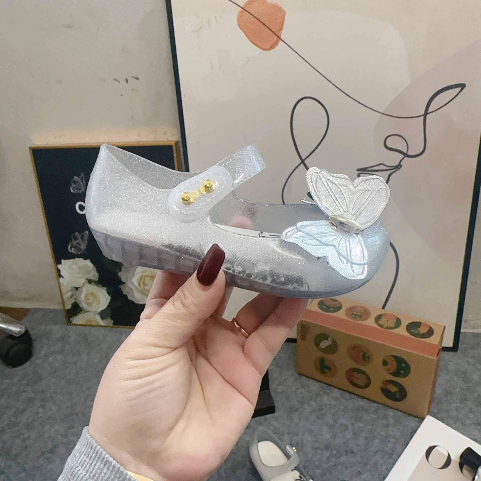 Mei Sha Metallic Sequin 3 차원 나비 소녀 해변 샌들