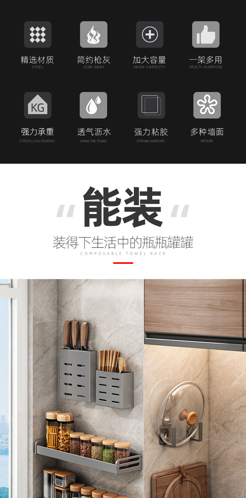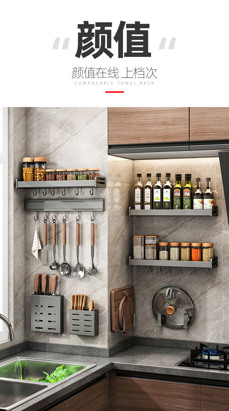 총 애쉬 주방 보관 랙 펀치없는 조미료 벽 장착 나이프 랙 가정용 용품 Daquan 다기능 스토리지 랙스토어 가기