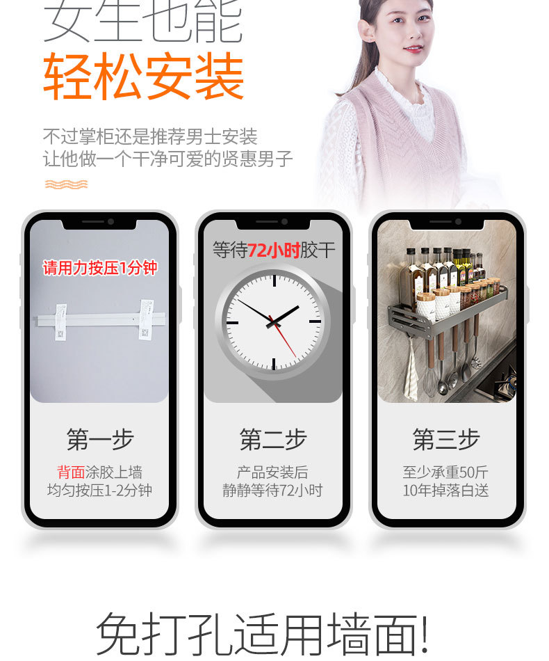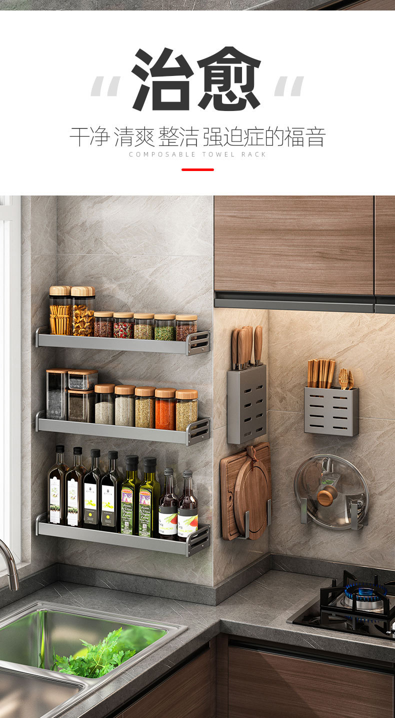 총 애쉬 주방 보관 랙 펀치없는 조미료 벽 장착 나이프 랙 가정용 용품 Daquan 다기능 스토리지 랙