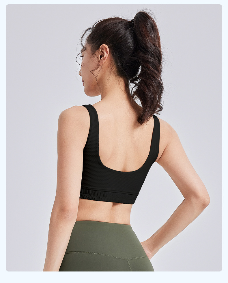 Juyitang 스트라이프 U 자형 스포츠 속옷 고강도 충격 방지 조립 Parm High-Elastic Pleated 스포츠 브라