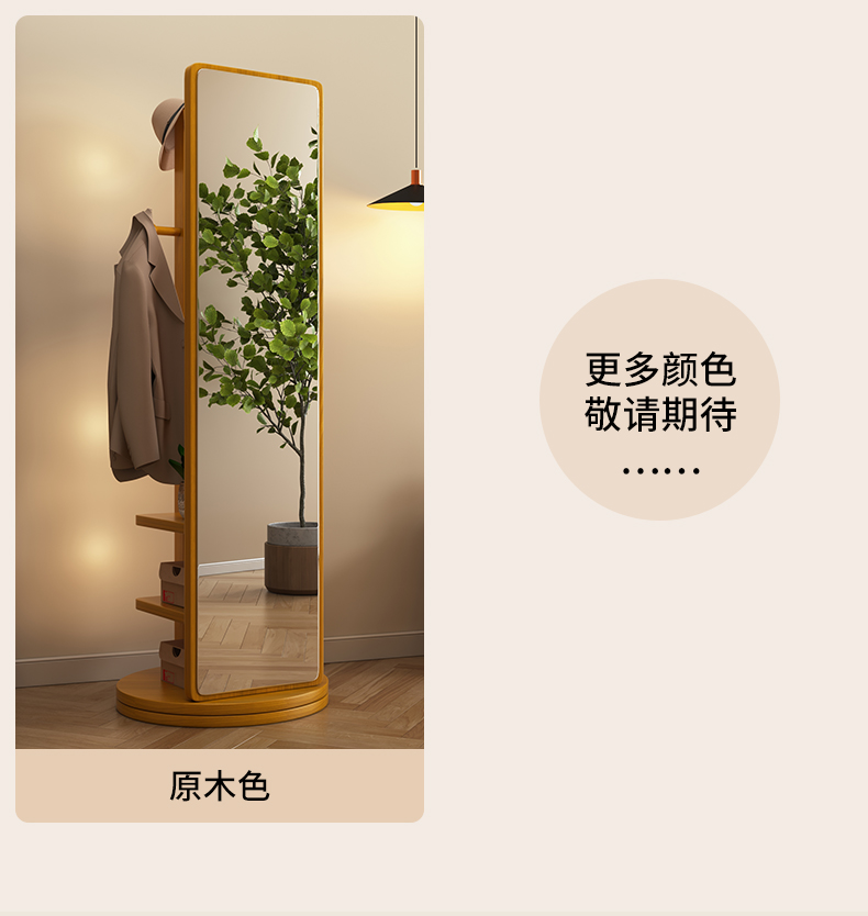 L * 단단한 나무 전체 길이 거울 드레스 거울 바닥 거울 가정용 침실 회전 가능한 모바일 통합 피팅 거울 옷걸이스토어 가기