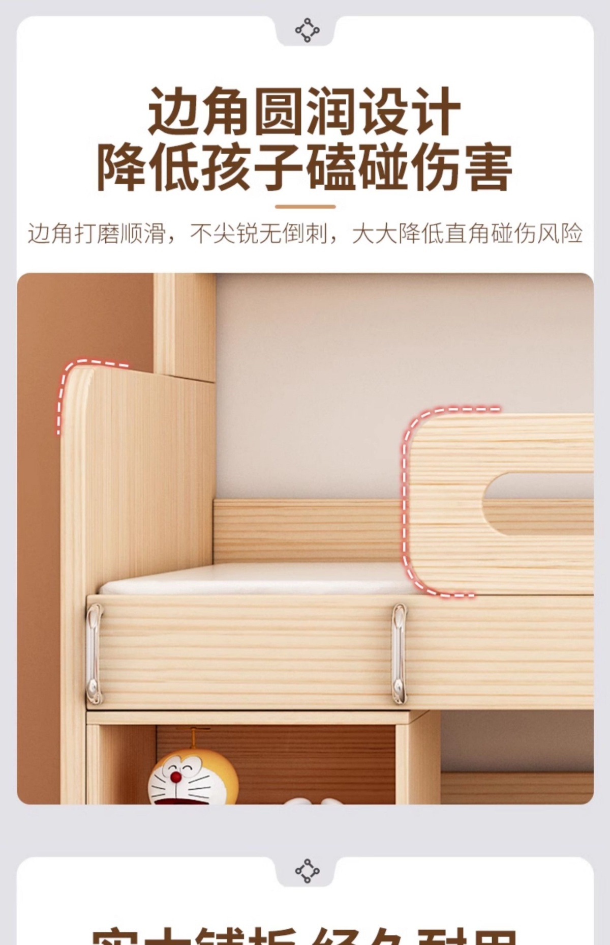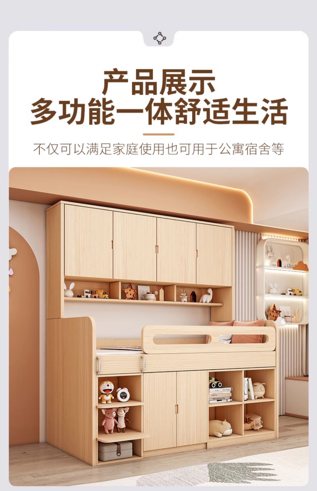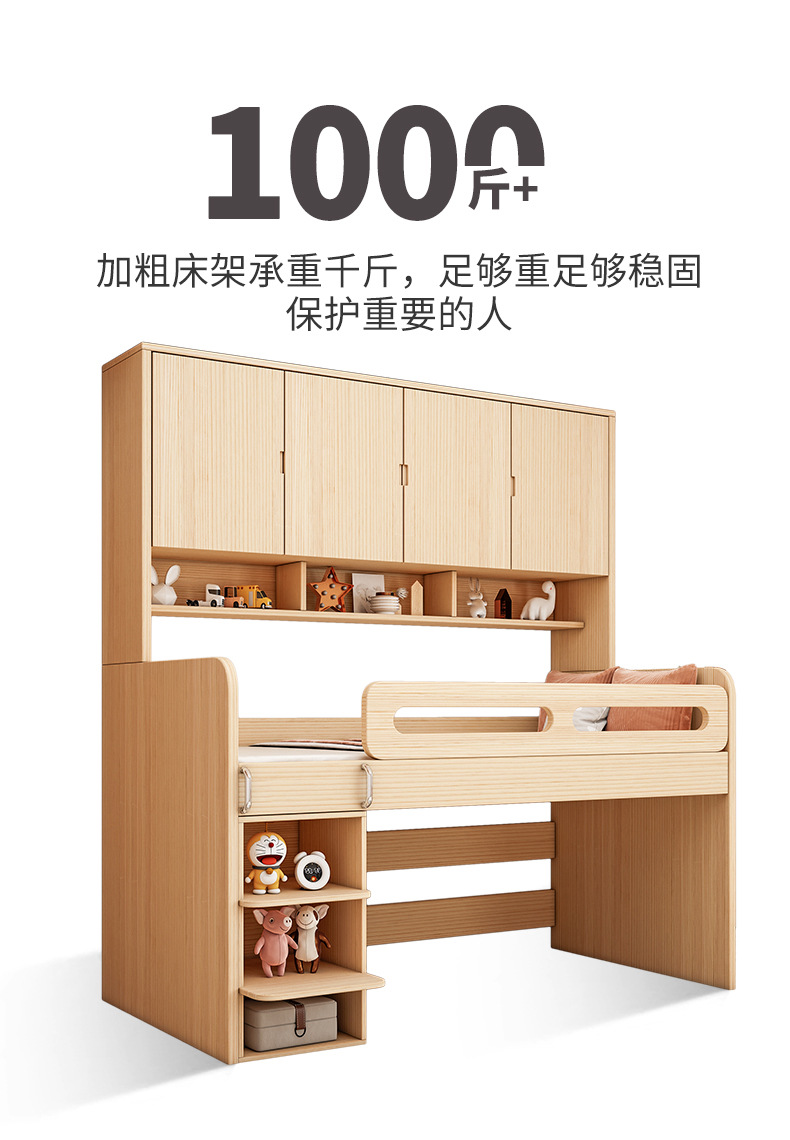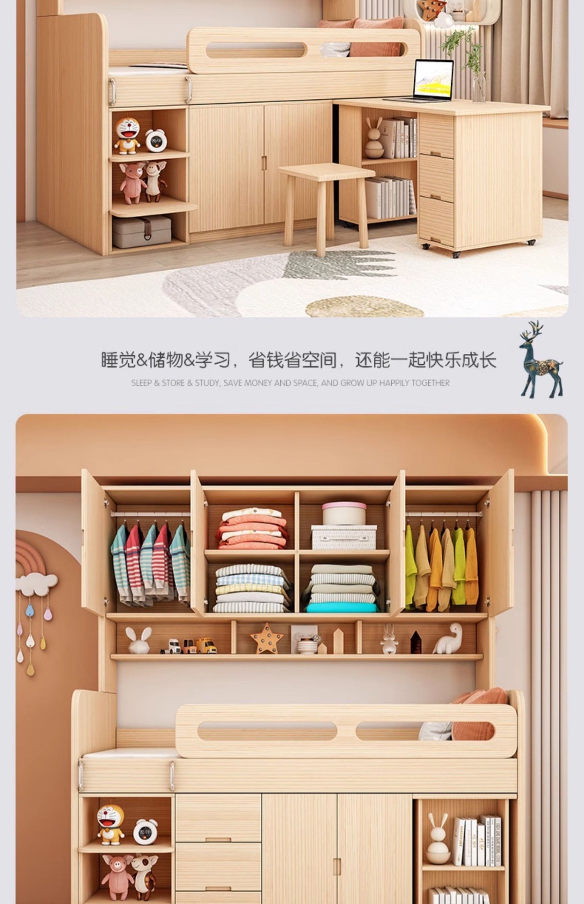 풀 솔리드 우드 반 높이 침대 간단한 작은 아파트 소년 및 소녀 어린이 침대 다기능 옷장 조합 원피스 높은 침대