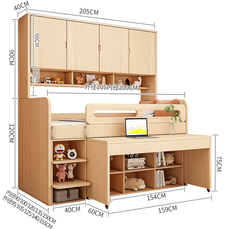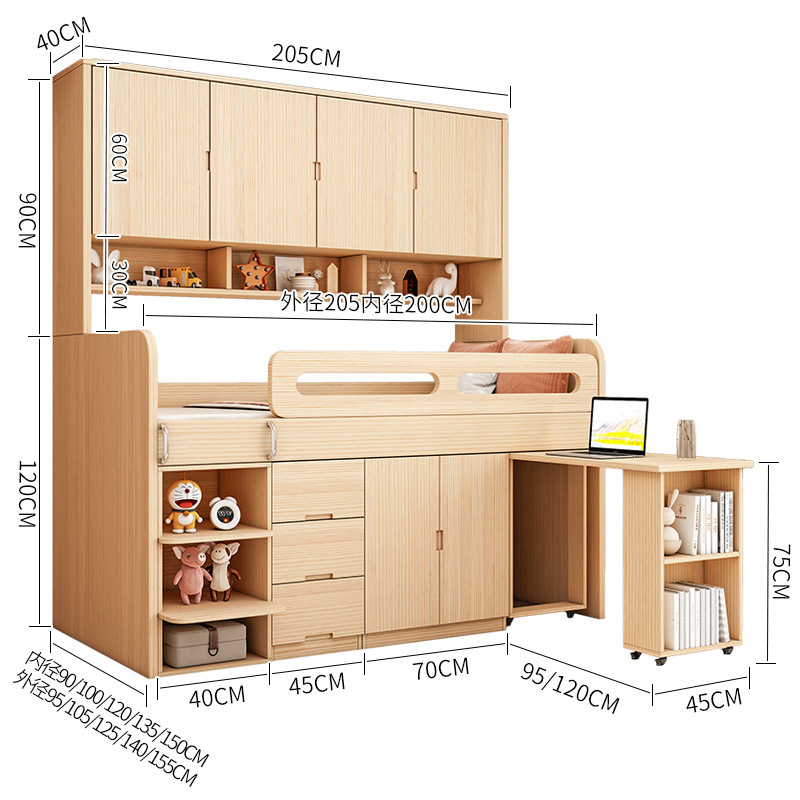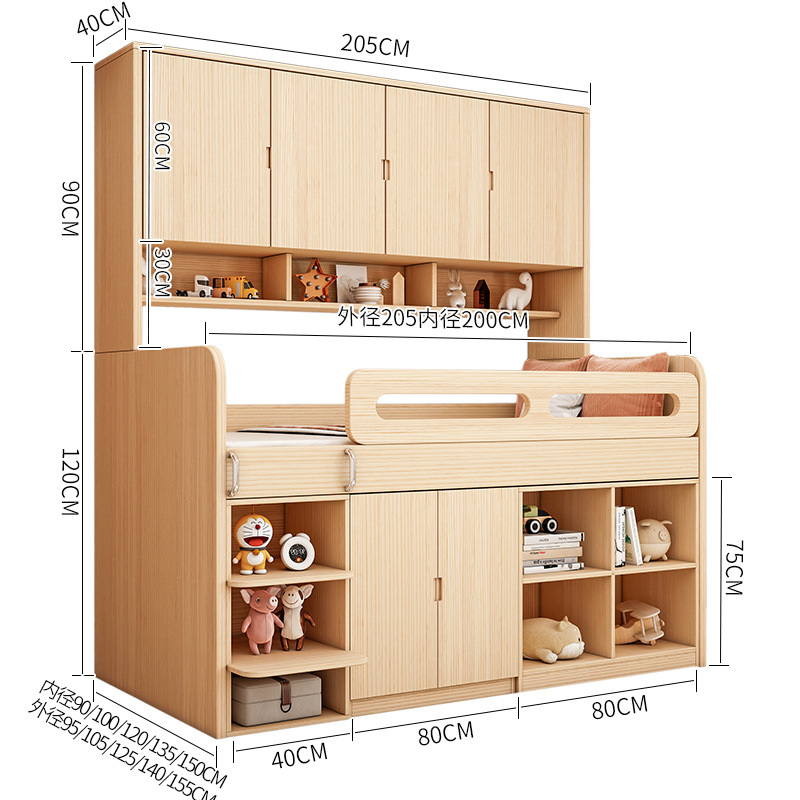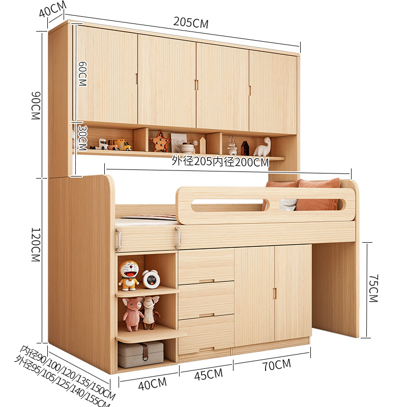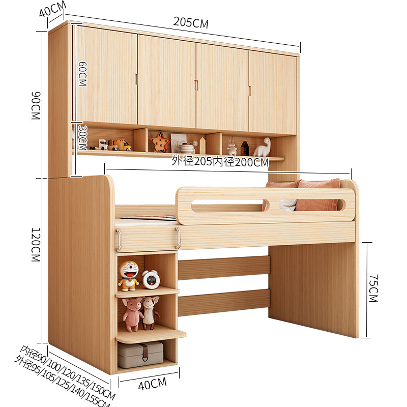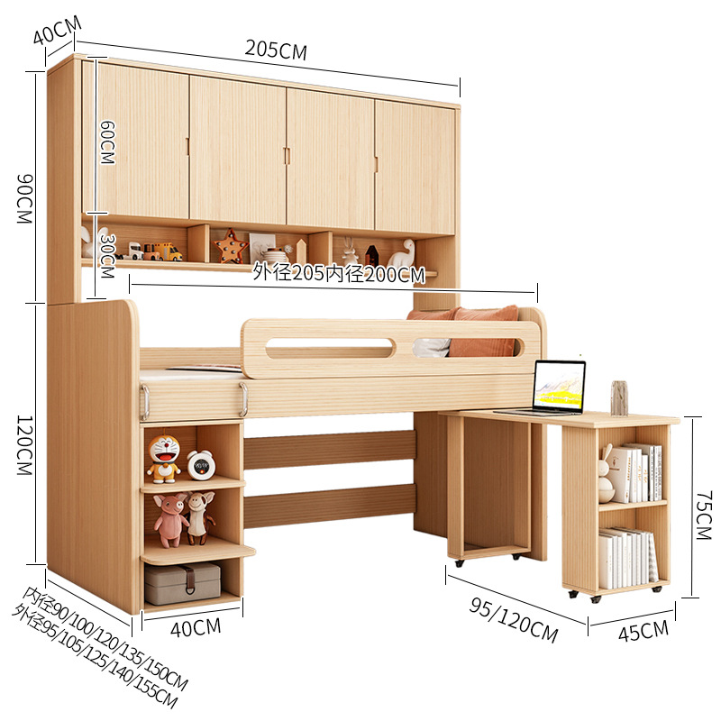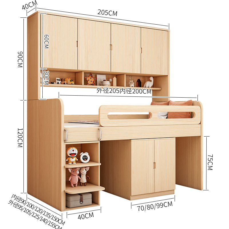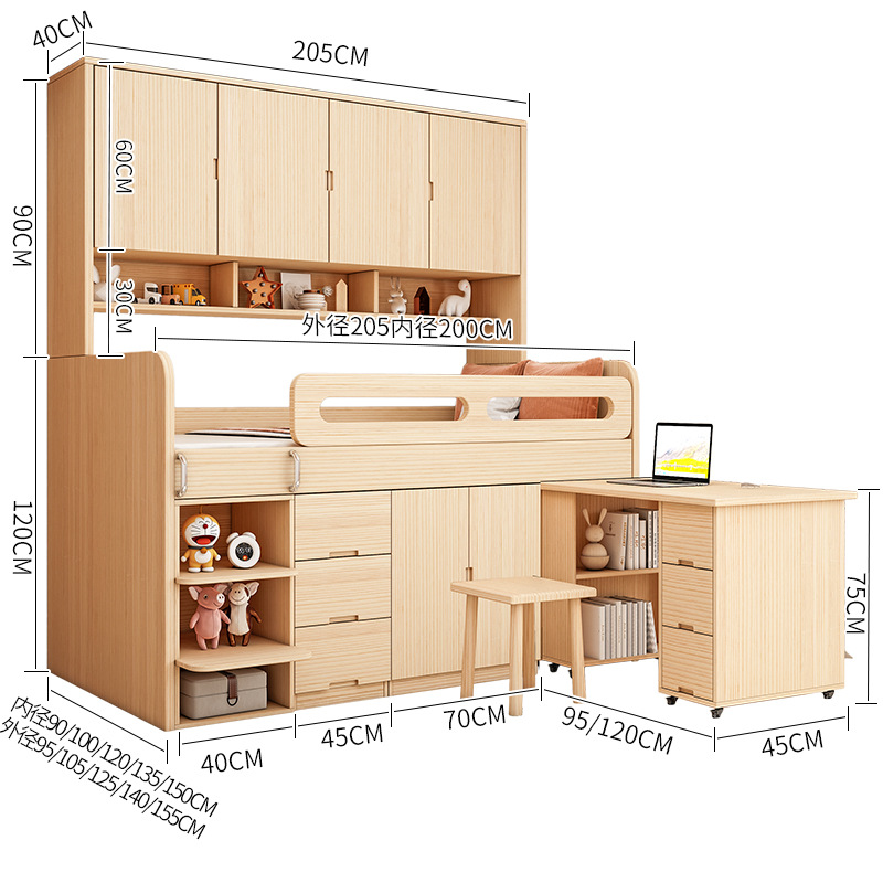 • 침대 + 사다리 캐비닛 + 상단 캐비닛 + 숨겨진 책상 + 수납칸 6개