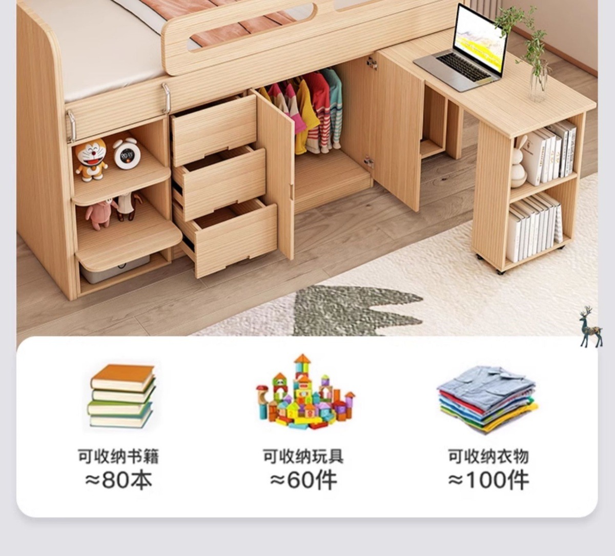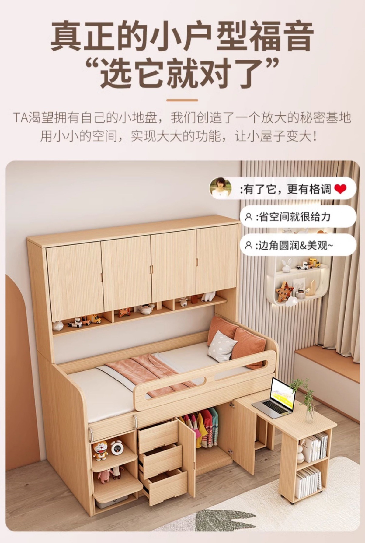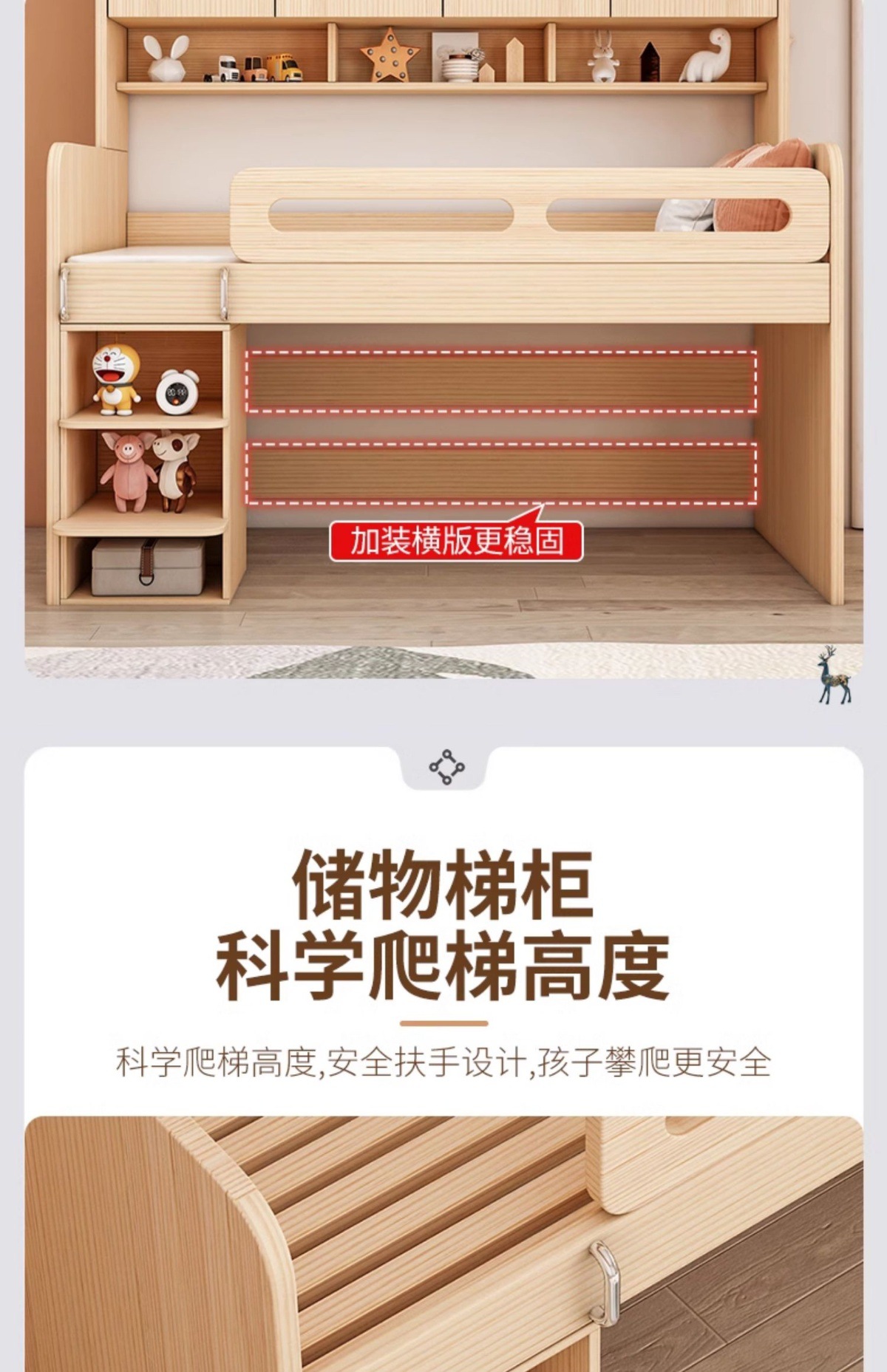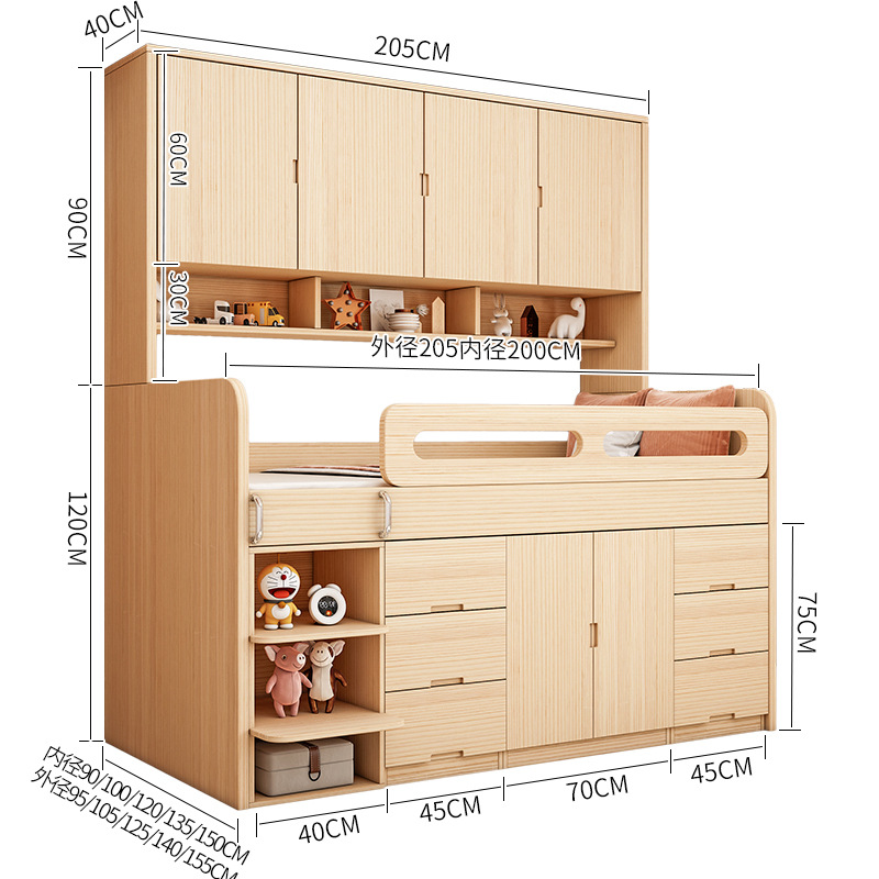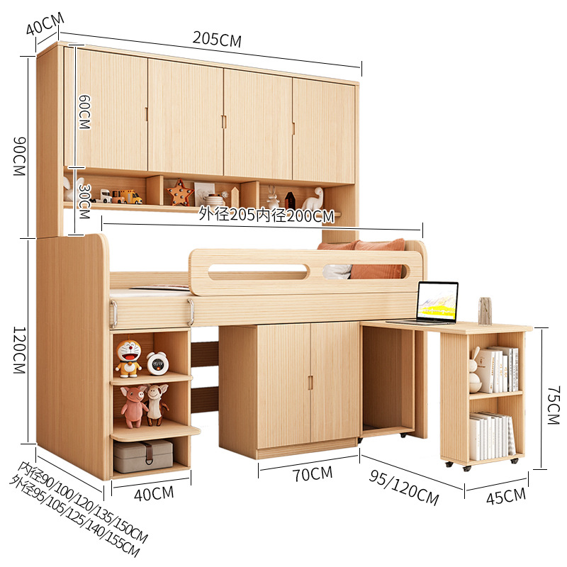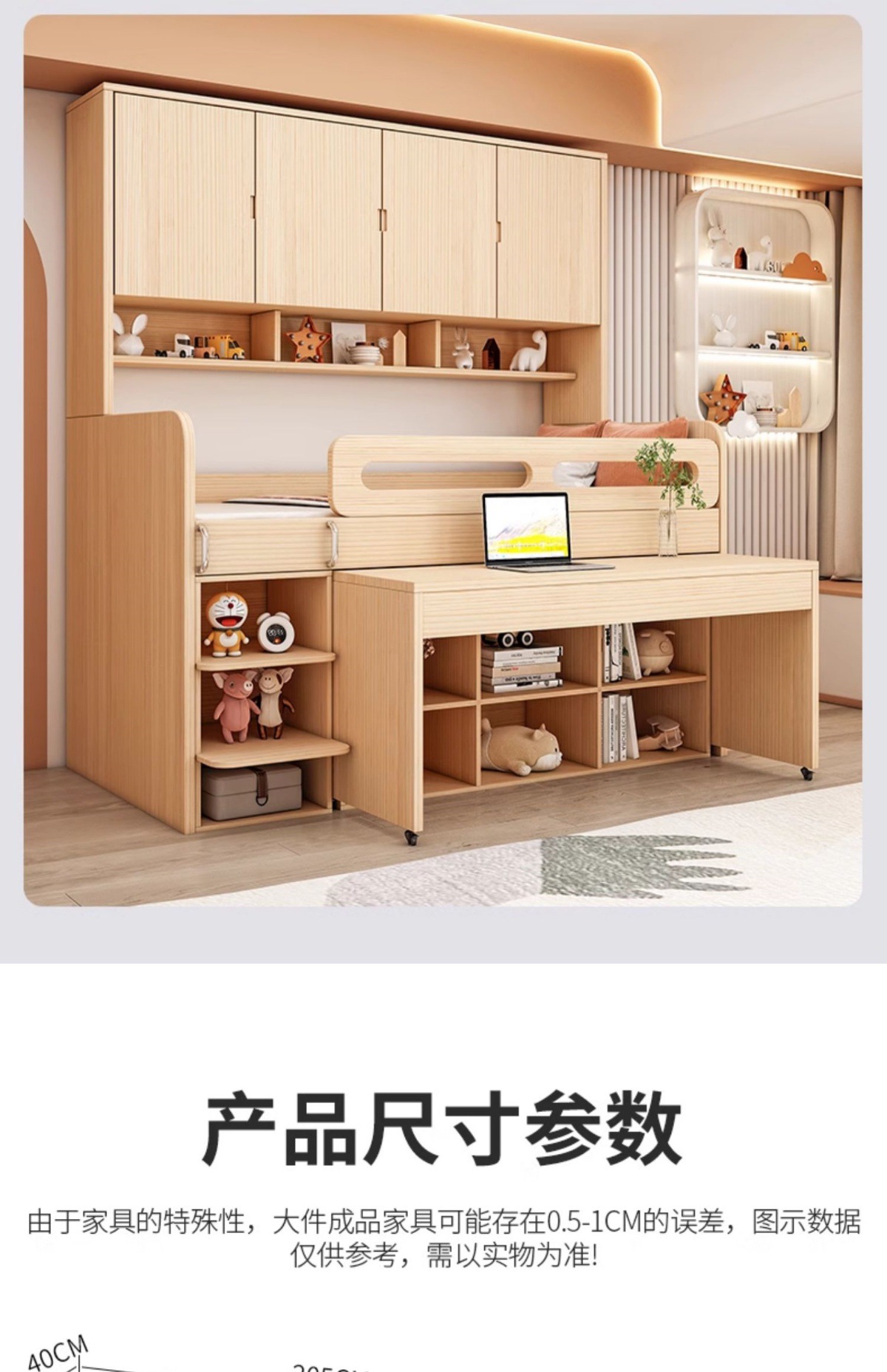 • 침대 + 사다리 캐비닛 + 상단 캐비닛 + 숨겨진 책상 + 수납칸 6개