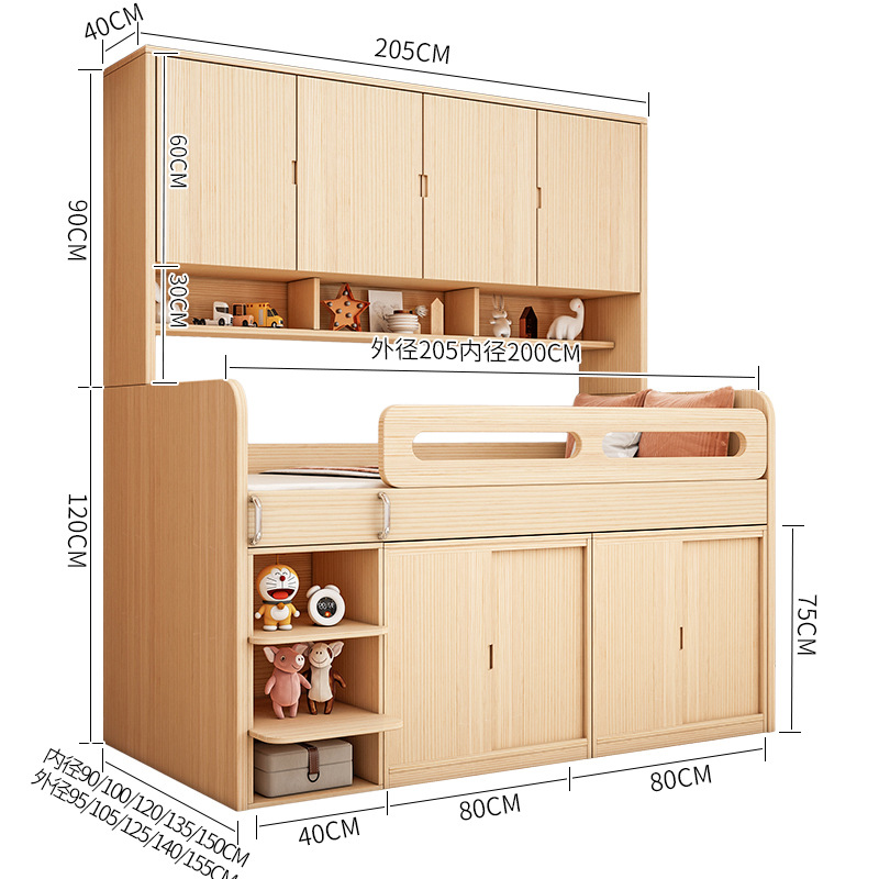 • 침대 + 사다리 캐비닛 + 상단 캐비닛 + 미닫이문 옷장 + 미닫이문 옷장