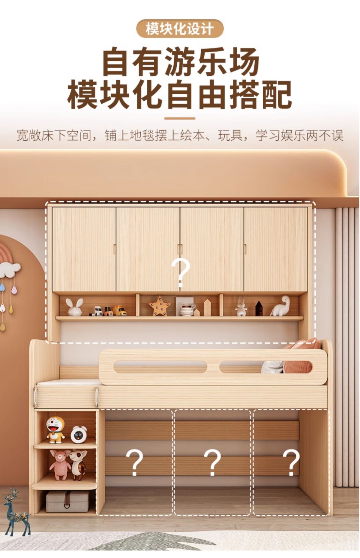 • 침대 + 사다리 캐비닛 + 상단 캐비닛 + 옷장 + 서랍 3개 캐비닛 + 책상