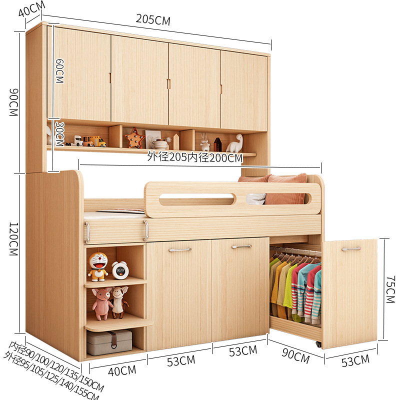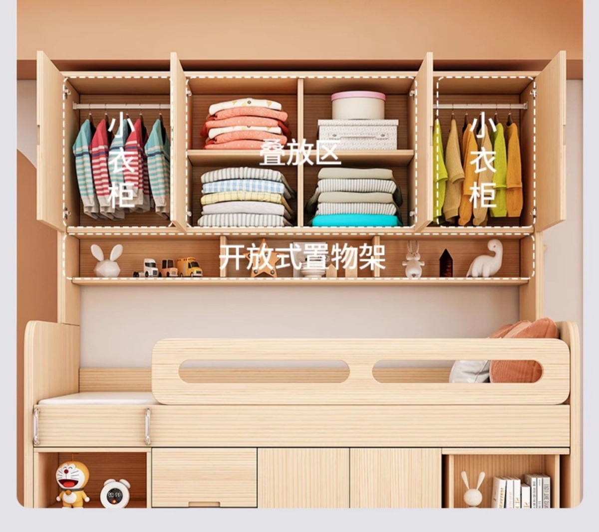 • 침대 + 사다리 캐비닛 + 상단 캐비닛 + 옷장 + 옷장