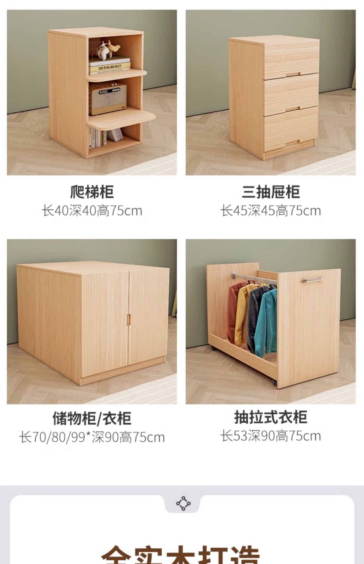 • 침대 + 사다리 캐비닛 + 상단 캐비닛 + 서랍 3개 캐비닛 + 옷장 + 서랍 3개 캐비닛