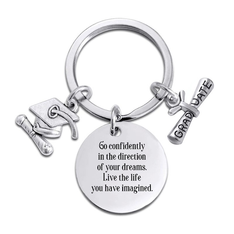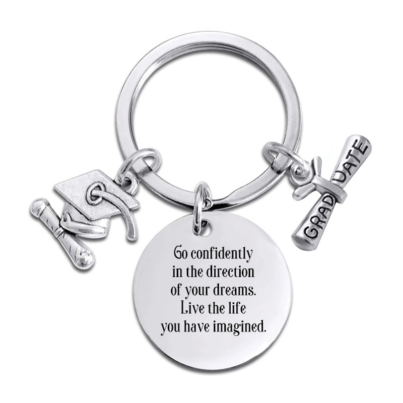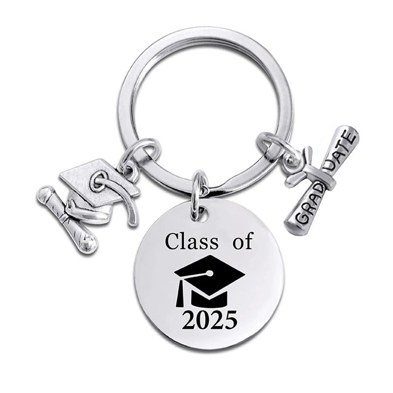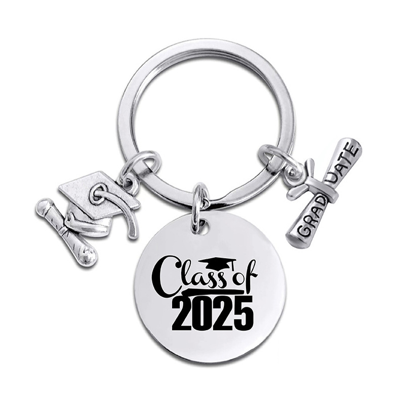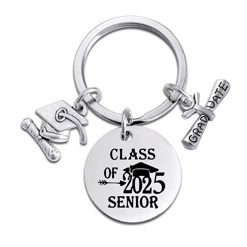 국경 2025 졸업 시즌 스테인레스 스틸 키 체인 레터링 금속 키 체인 학생과 교사 기념 선물을 보내기 위해스토어 가기