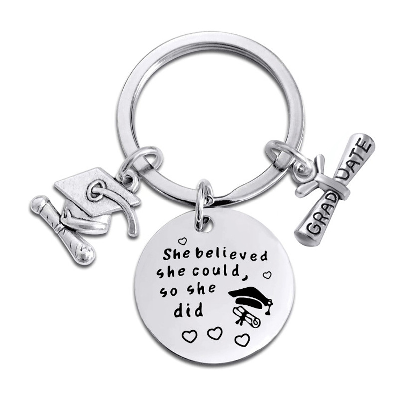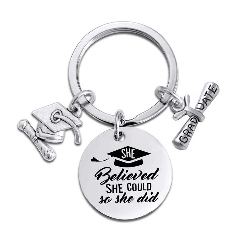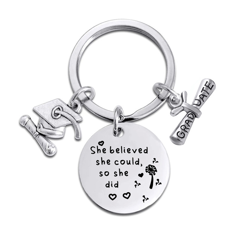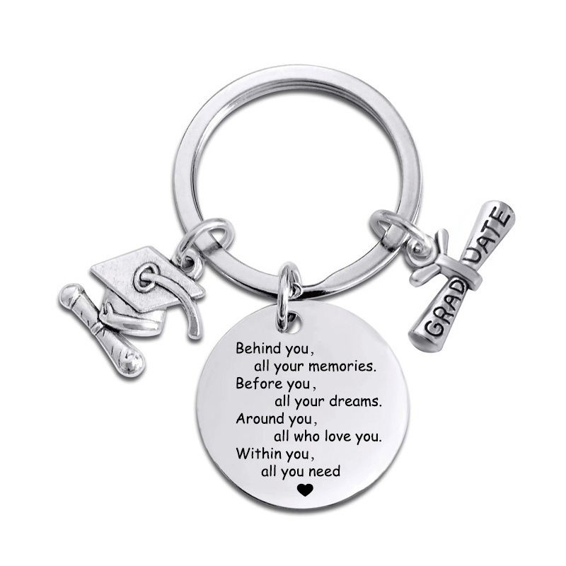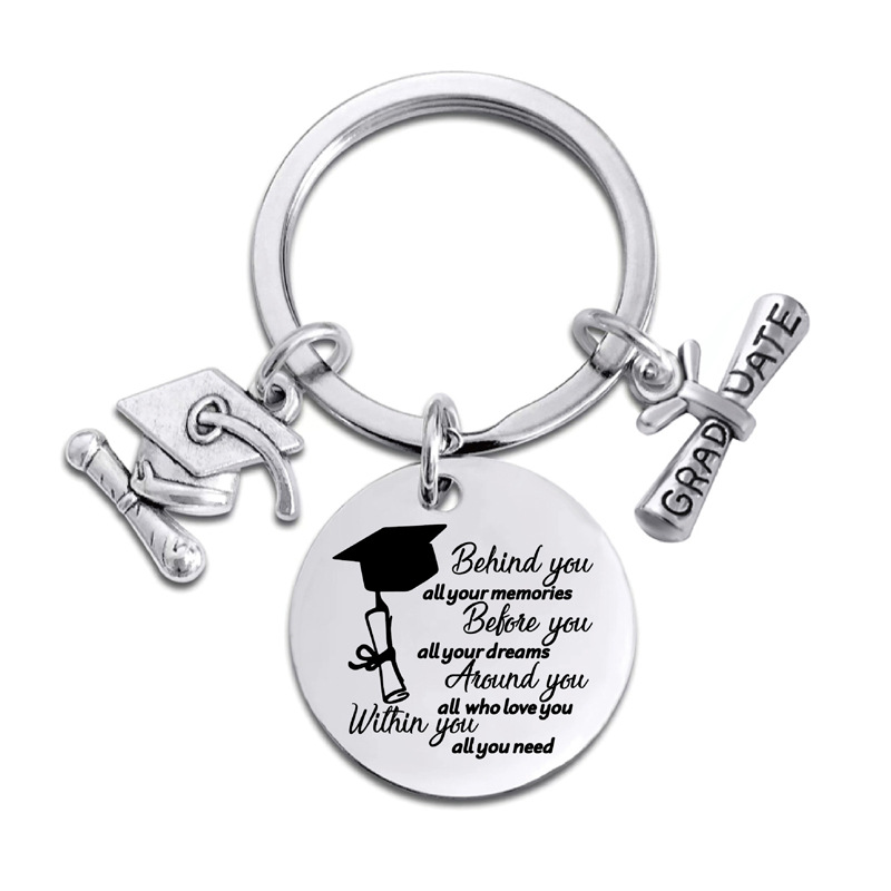 국경 2025 졸업 시즌 스테인레스 스틸 키 체인 레터링 금속 키 체인 학생과 교사 기념 선물을 보내기 위해스토어 가기