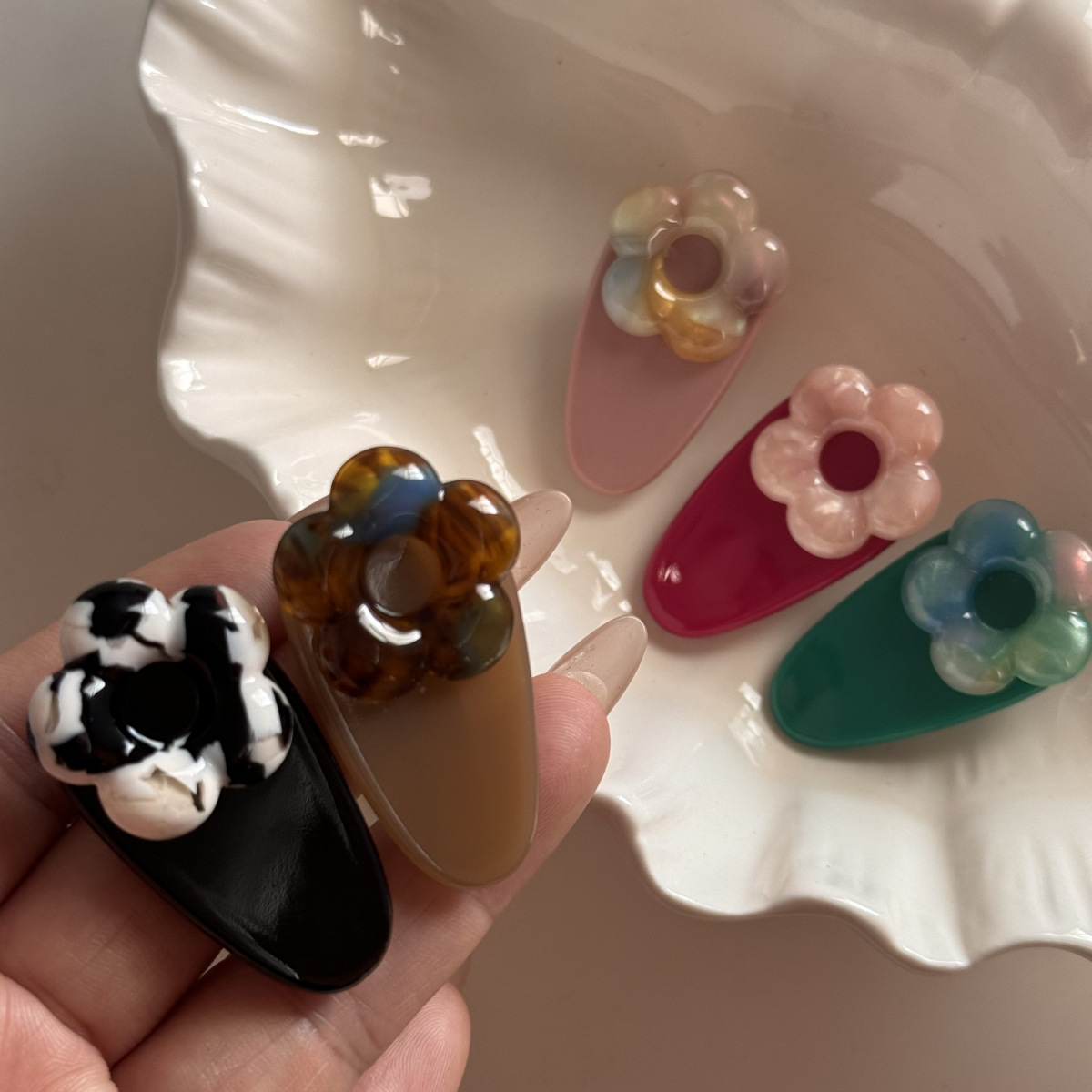 • 아세테이트 플라워 클립-커피 컬러