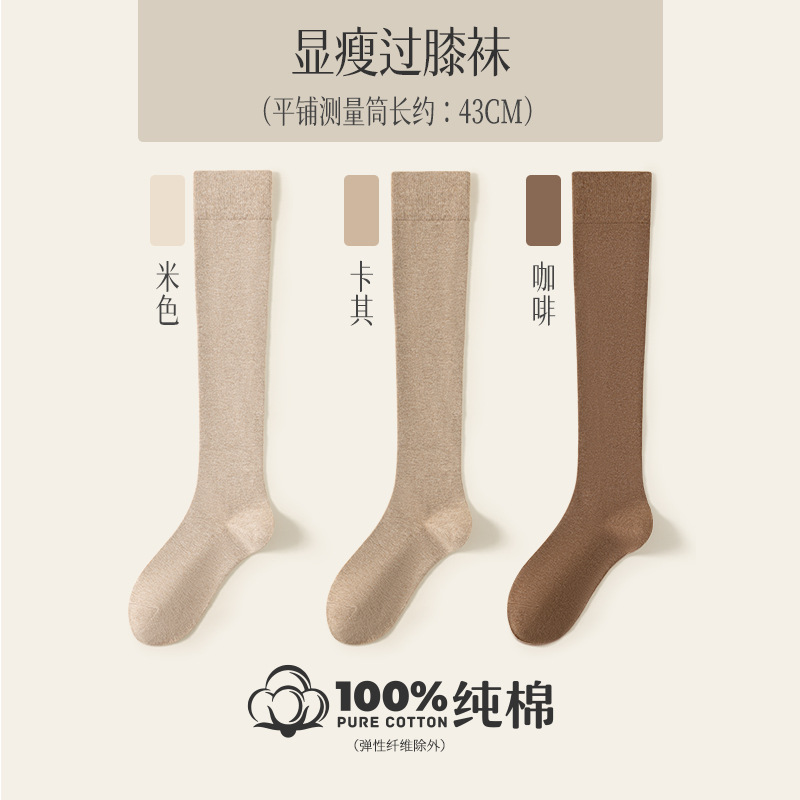 코튼 오버 더 무릎 양말 여성의 가을과 겨울 100 코튼 키 큰 튜브 슬림 핏 송아지 양말 봄과 가을 무릎 패드 미끄럼 방지 여성용 스타킹스토어 가기