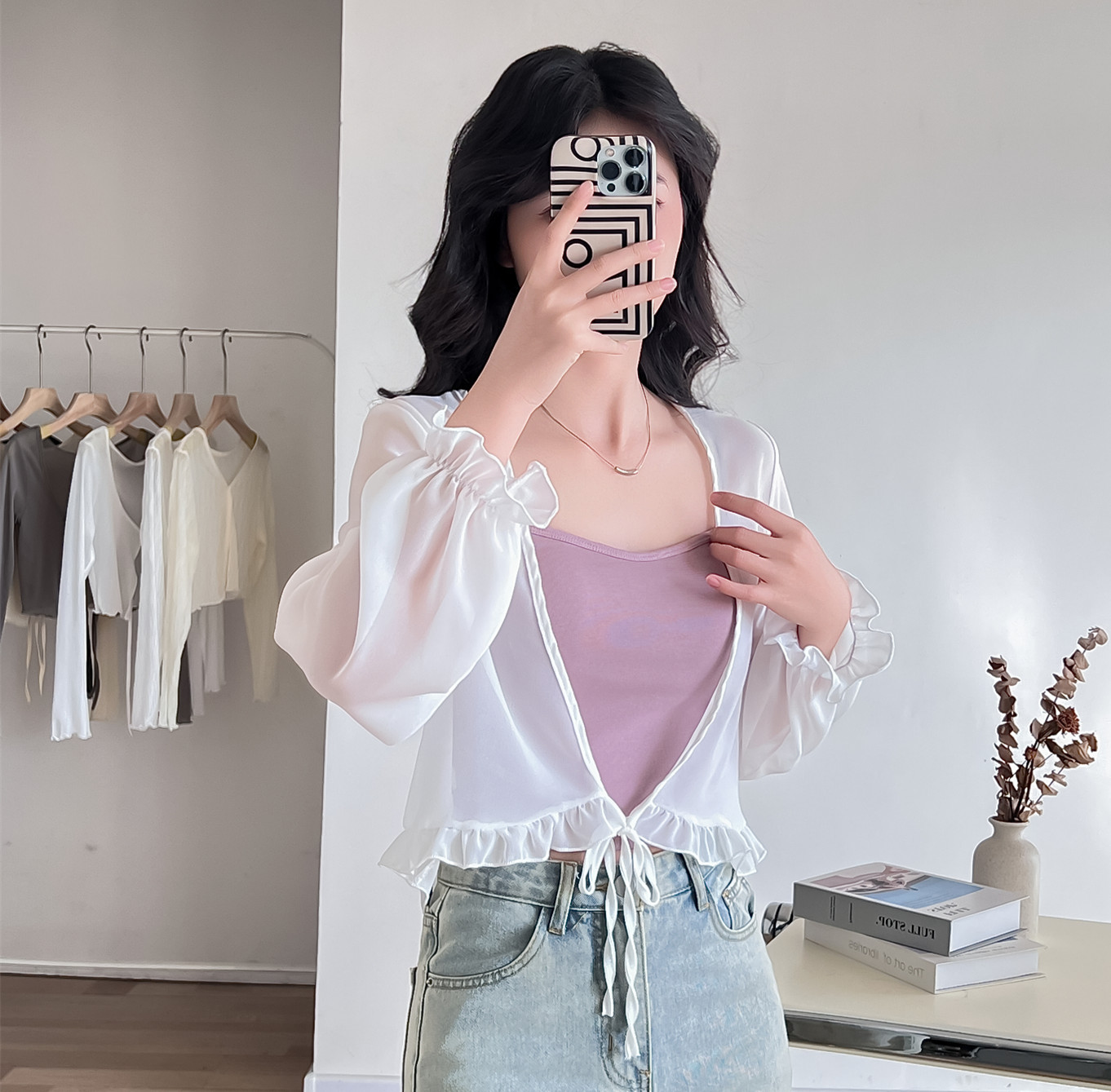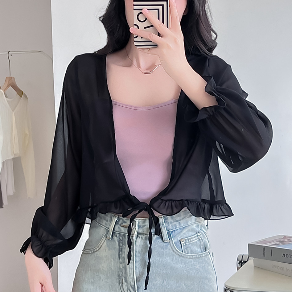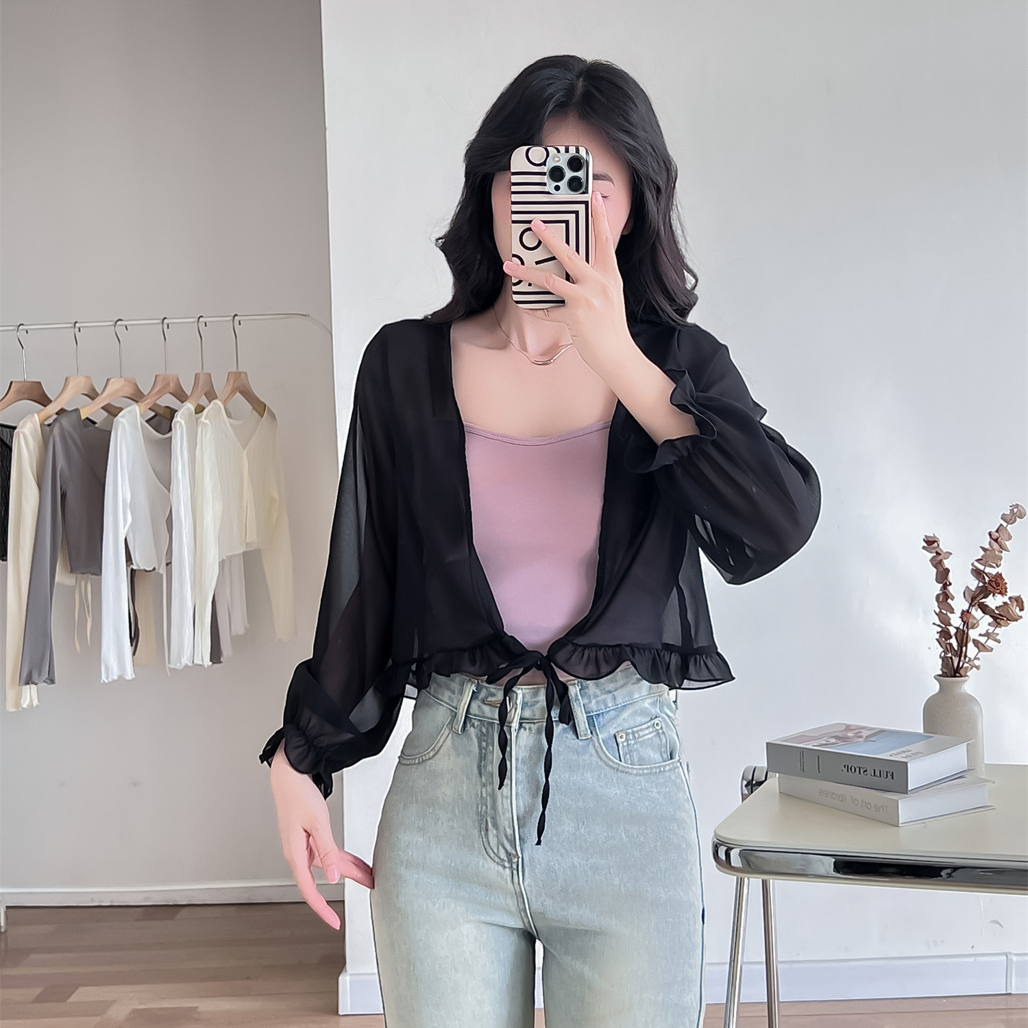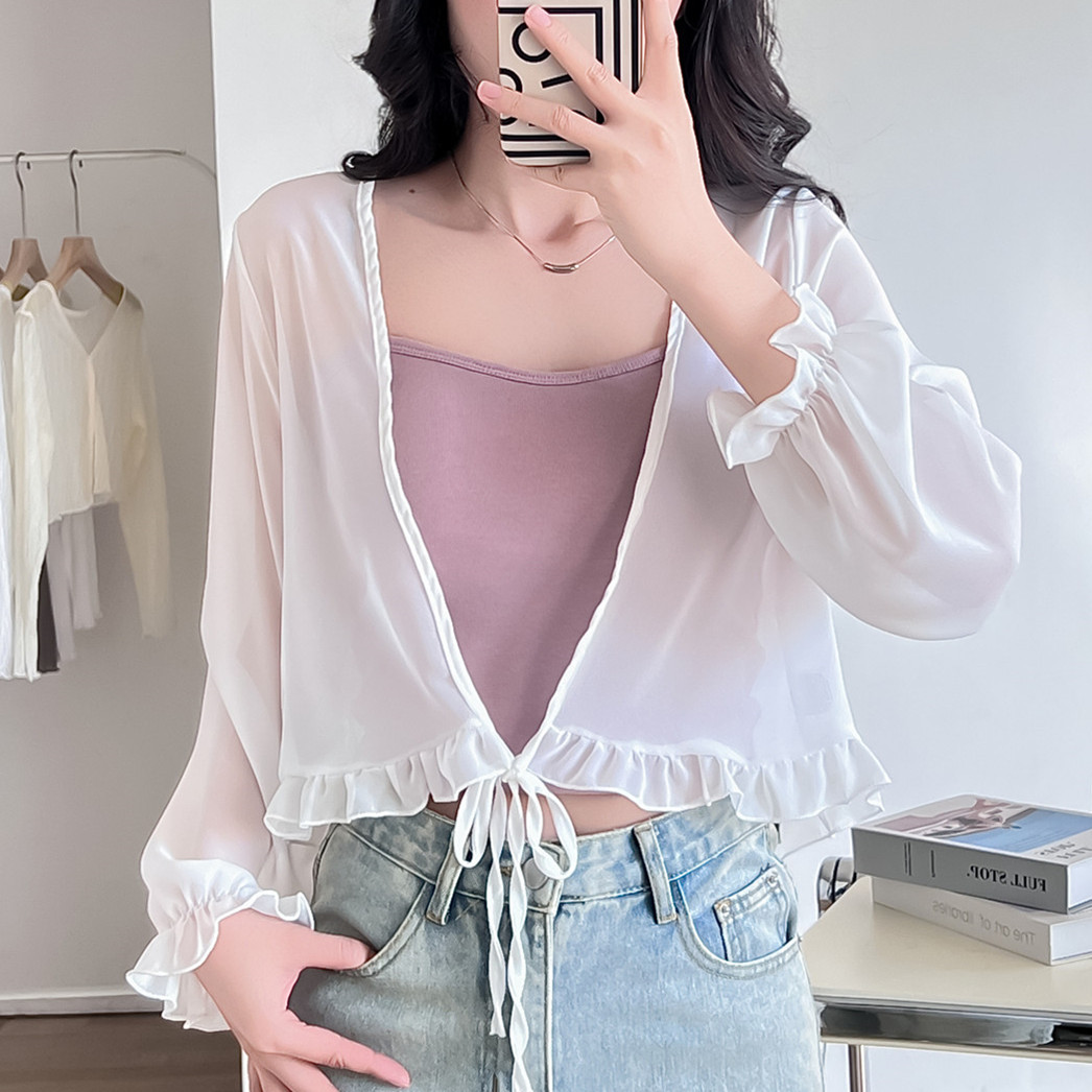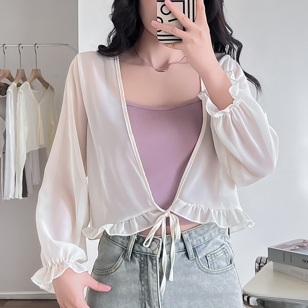 슬링 스커트와 시폰 셔츠 작은 목도리 얇은 코트 카디건 선스크린 최고 여성의 2025 새로운 여름 의상