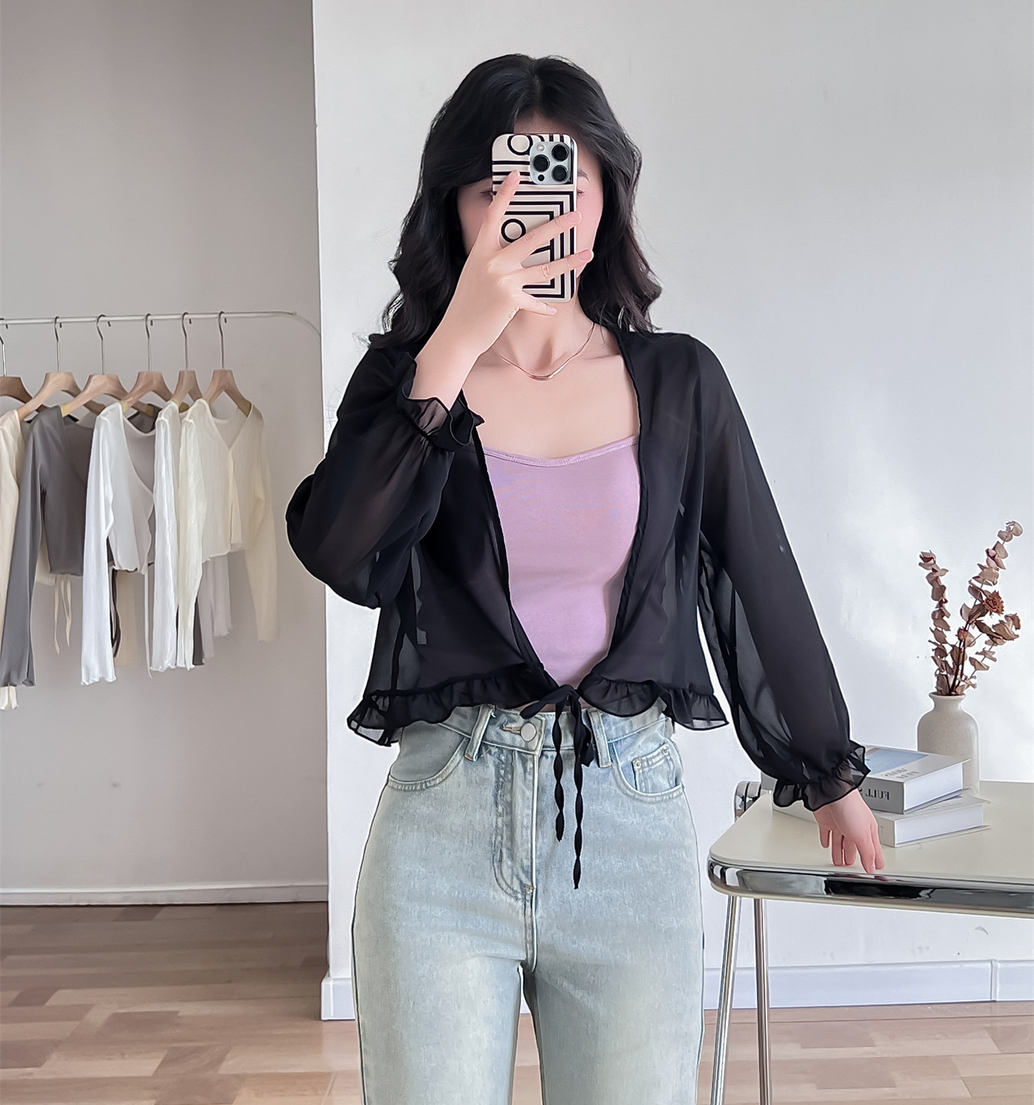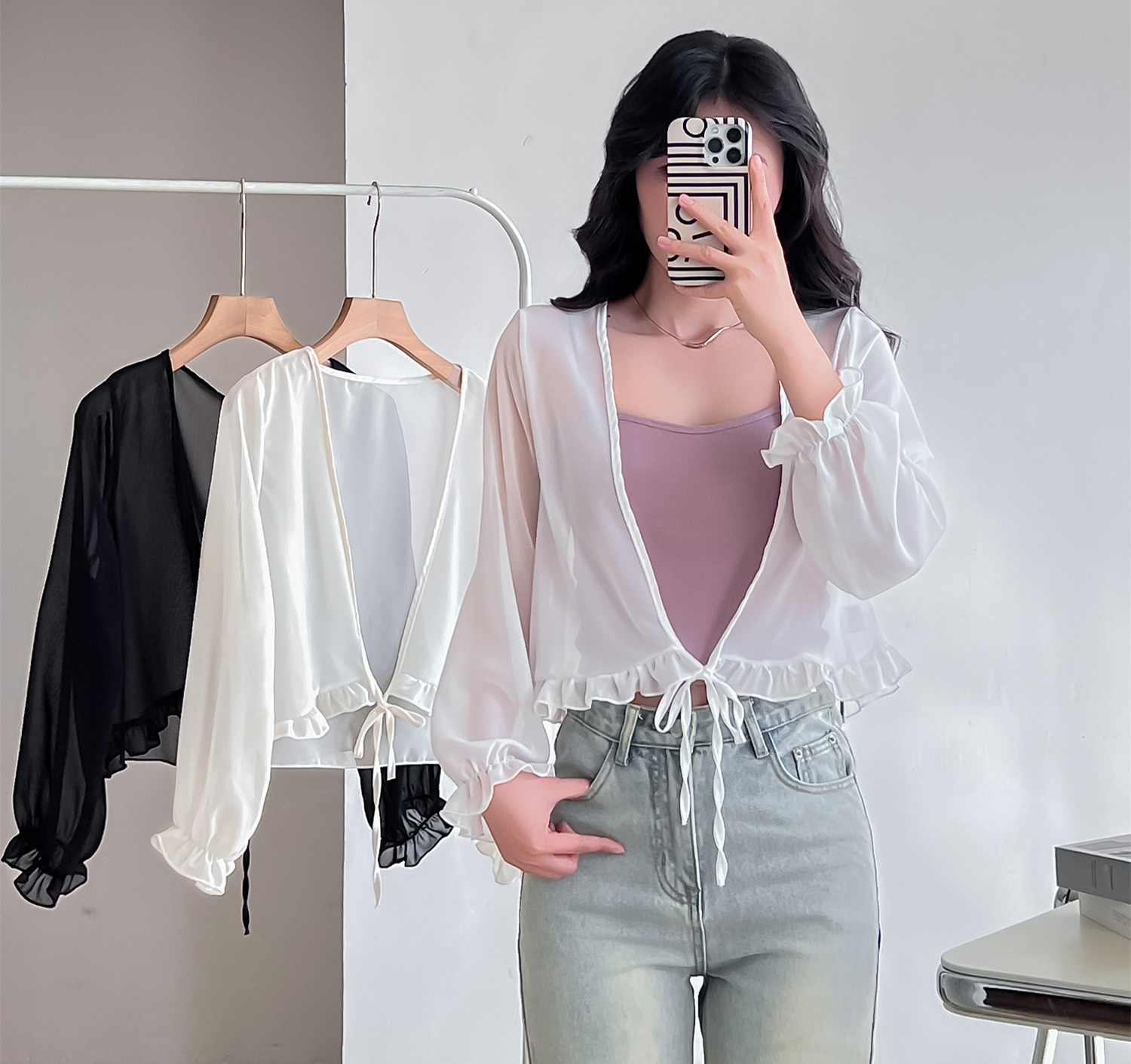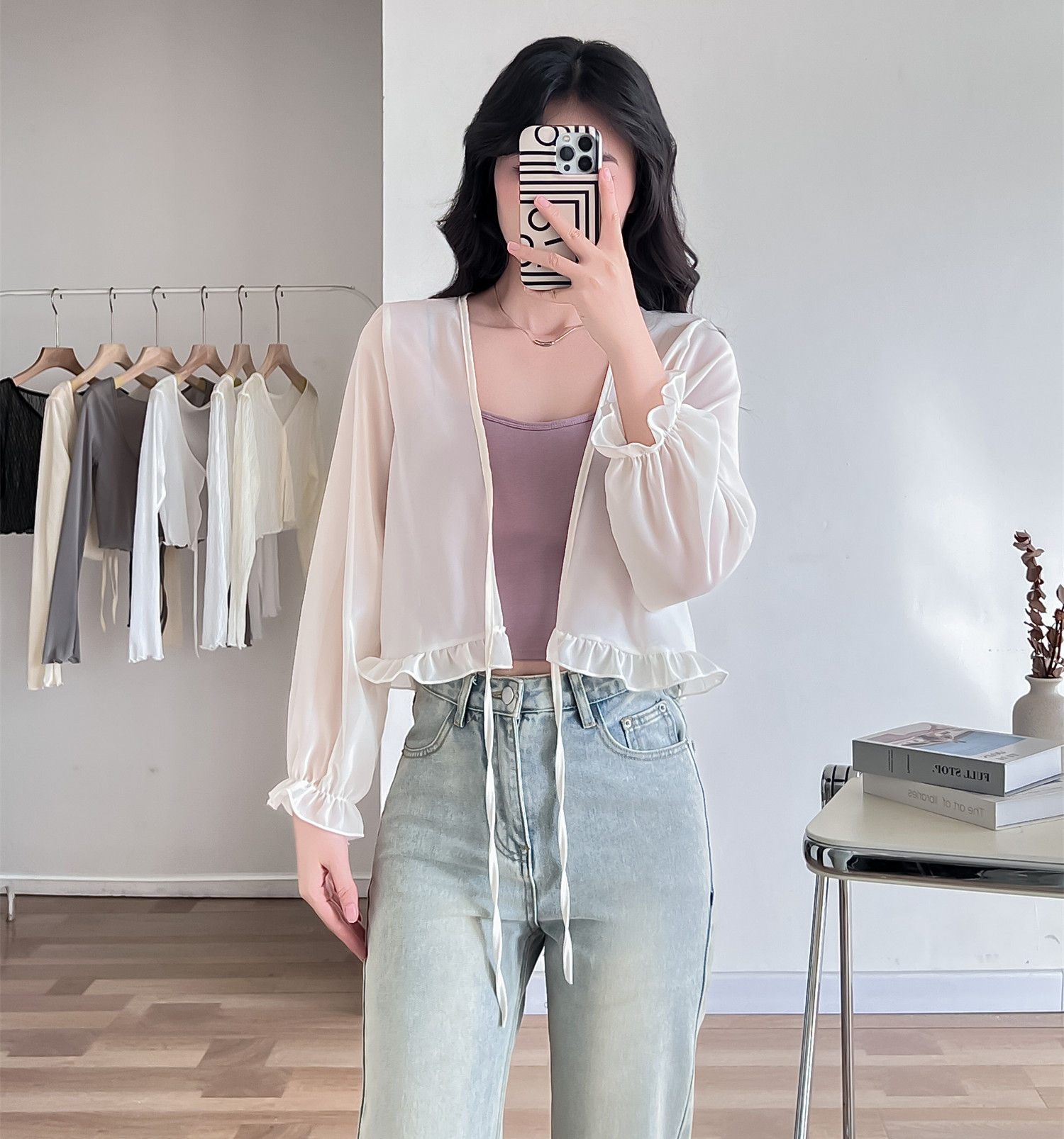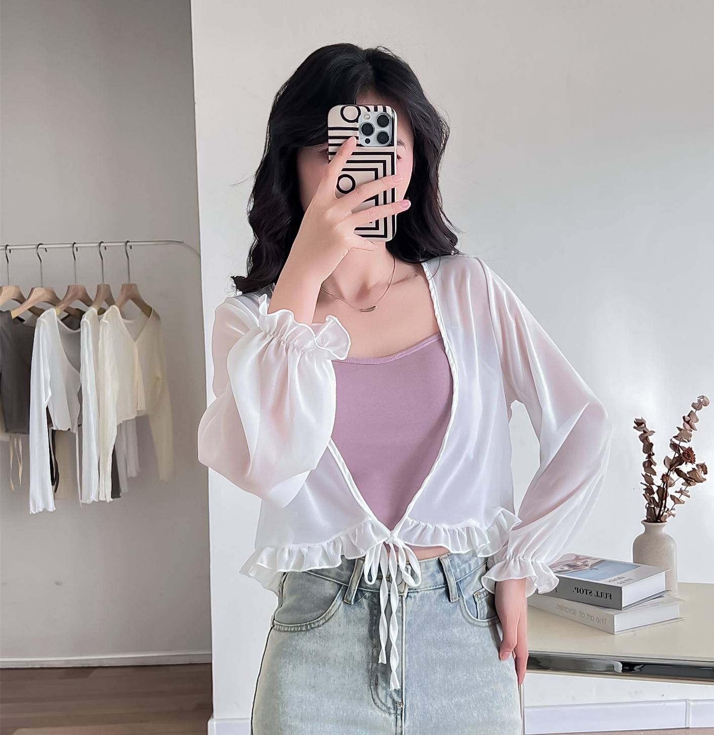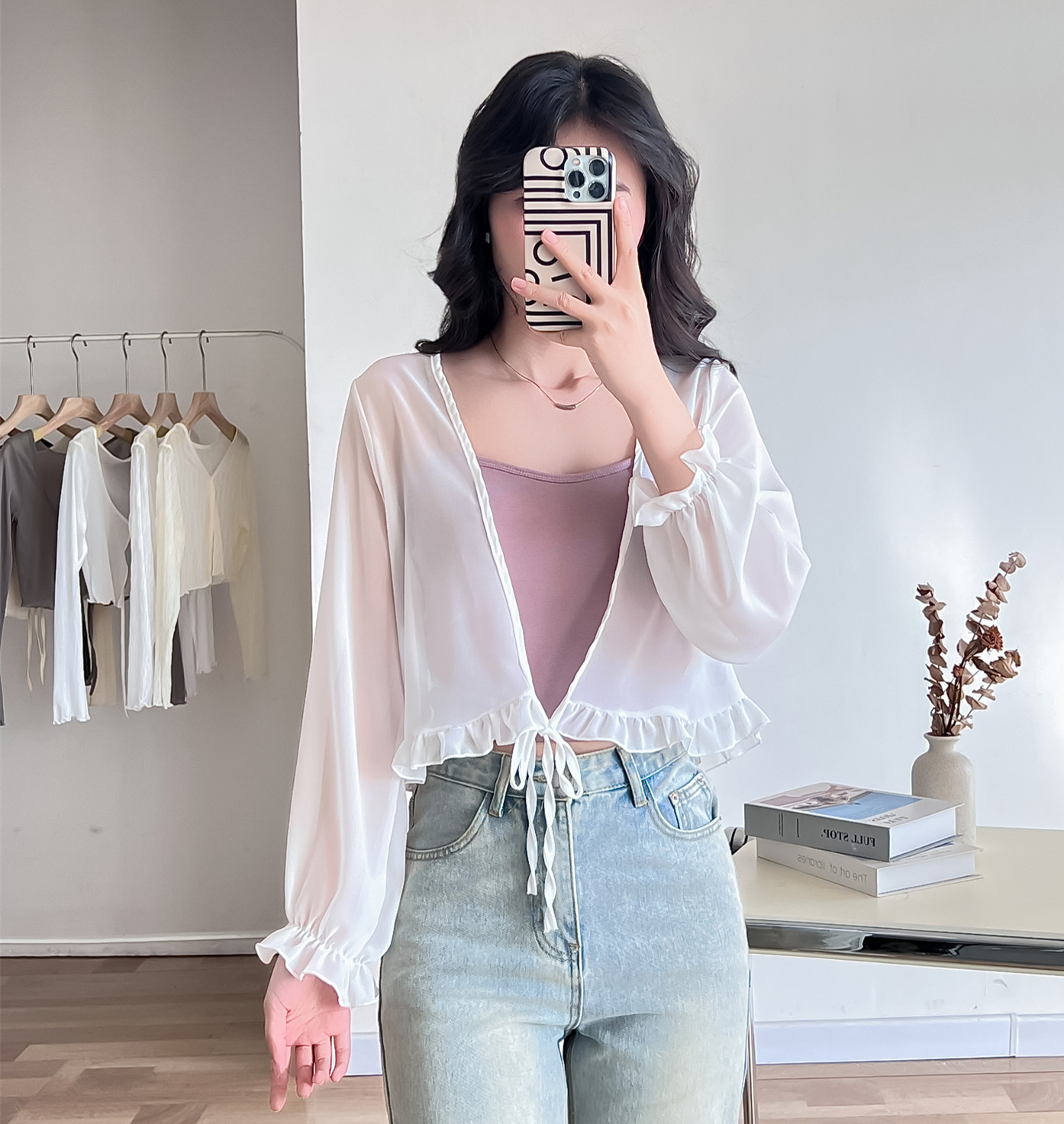 슬링 스커트와 시폰 셔츠 작은 목도리 얇은 코트 카디건 선스크린 최고 여성의 2025 새로운 여름 의상