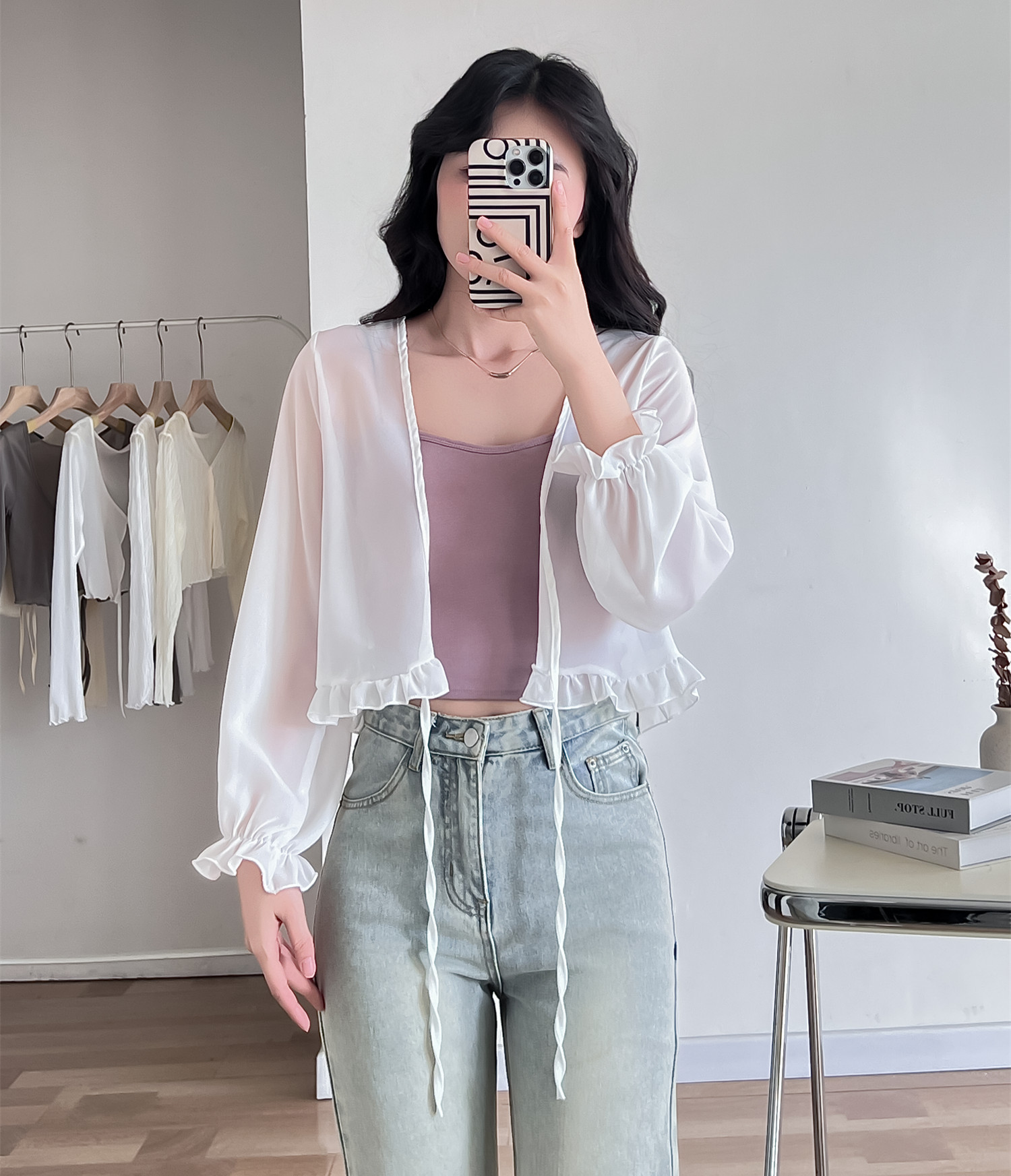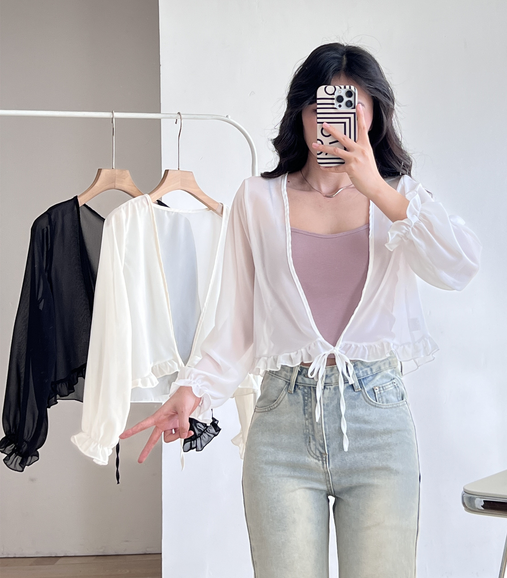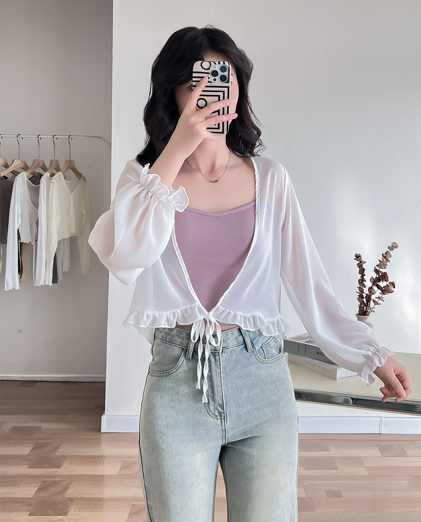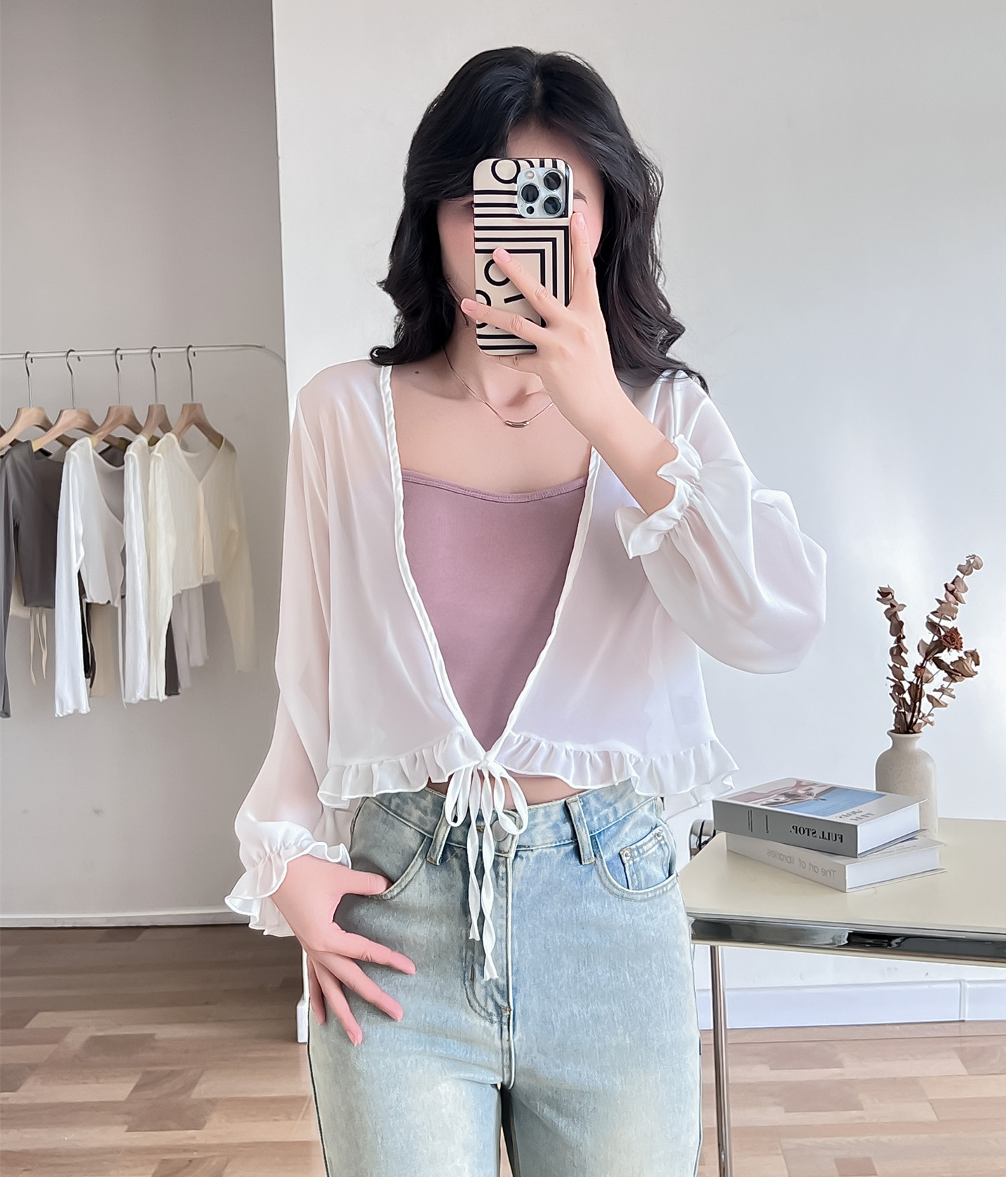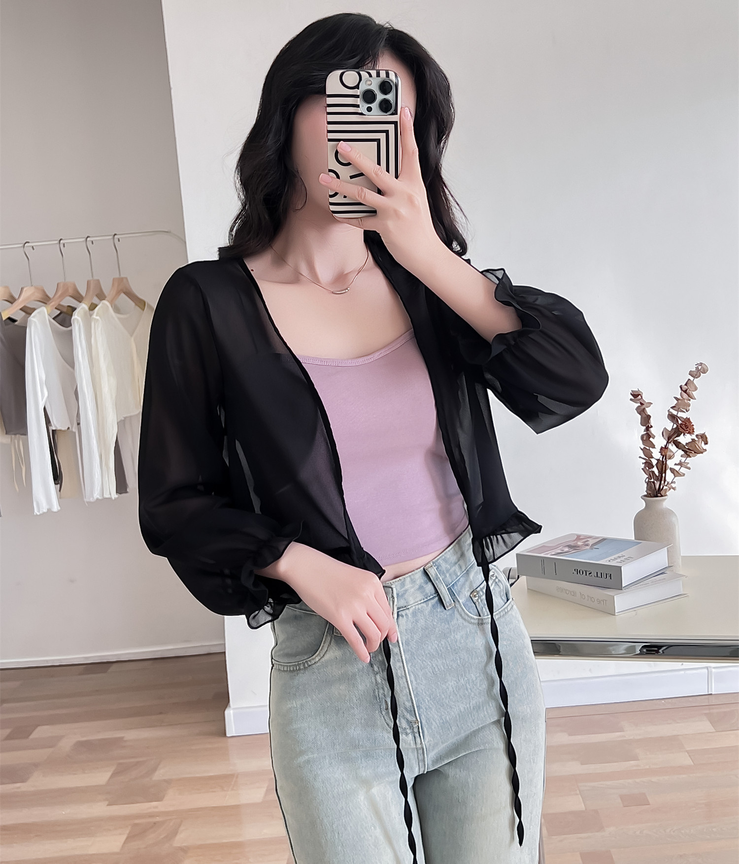 슬링 스커트와 시폰 셔츠 작은 목도리 얇은 코트 카디건 선스크린 최고 여성의 2025 새로운 여름 의상